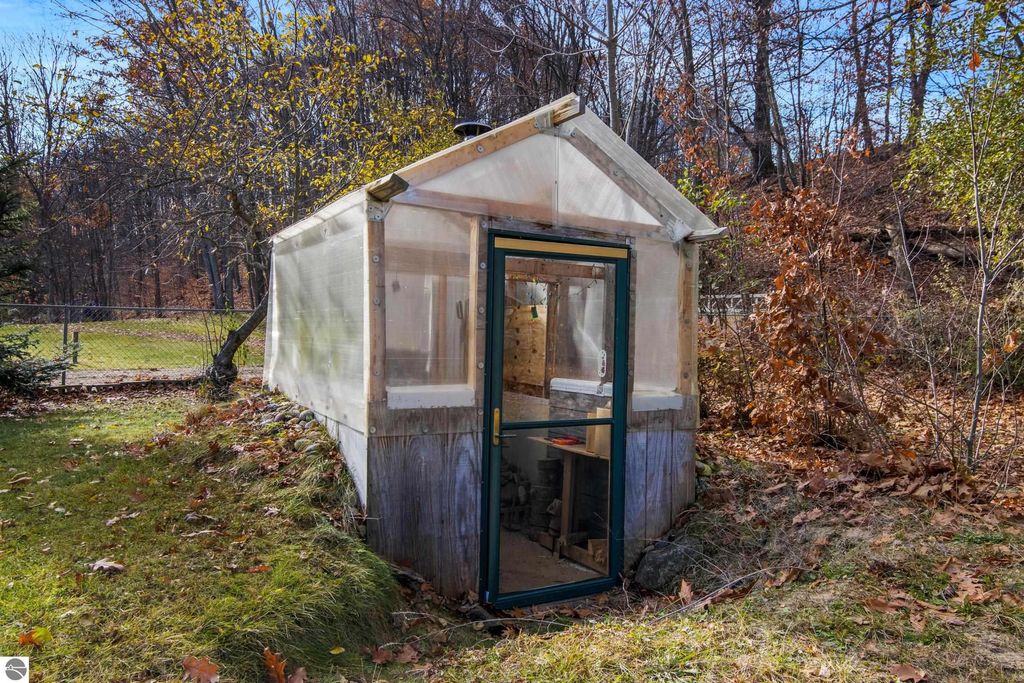 Blooming gardens and a peaceful setting welcome you to this inviting Up North home"”perfect for a weekend retreat or everyday living. From the moment you arrive, there's a sense of comfort and ease. Ideally located between Traverse City and Suttons Bay, this well-cared-for home blends timeless charm with thoughtful maintenance. Oversized main-level windows fill the living spaces with natural light and offer glimpses of the bay, while hardwood floors throughout the main level add warmth and timeless appeal"”creating a welcoming atmosphere from the moment you step inside. The partially finished lower level adds flexible living space for a rec room, hobby area, or future family room, complete with a convenient half bath. An enclosed porch just off the main living area creates a gentle transition between indoors and out"”a cozy spot for morning coffee, rainy-day reading, or watching the seasons change. Outside, the property truly shines. The backyard has been transformed into a peaceful garden sanctuary with flowering and fruit trees, established perennials, and a dedicated garden area. A low-maintenance natural lawn keeps upkeep simple, while a 10x10 heated greenhouse is ready for seasoned gardeners or those inspired to start something new. Even if gardening isn't your passion, the yard is ideal for evening bonfires, yard games, or quiet relaxation. Porch furniture and outdoor furnishings may remain for added convenience. Practical updates provide peace of mind, including a new septic field installed in 2021 and a whole-house generator. Boughey Park beach is just half a mile away, and nearby wineries, breweries, the TART Trail, and all the dining and shopping of Traverse City are moments from your door. Whether you're seeking a peaceful escape, a place to grow, or a home ready for its next chapter, this property is ready to welcome new memories.