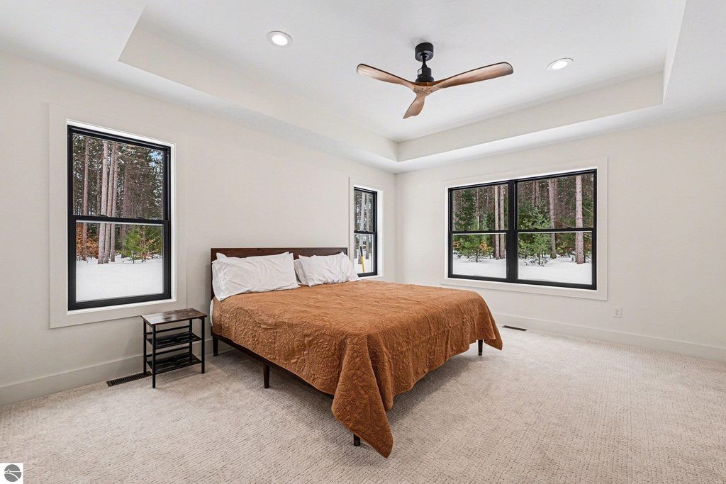 A brand new development on Karnes Road offering large lots with rolling terrain, wooded tree lines, and beautiful country views. 15 minutes from Glen Arbor and in the Glen Lake school district, rare opportunity to purchase a new construction home in this area. This listing is for a to-be-built modern ranch. 1,940 sq ft with 3 bedrooms and 2 full bathrooms on the main level, an unfinished basement, and a two-stall garage. This lot is 5 acres, though this home plan can be built on any of our available lots. We also have additional home plans to choose from. Contact us to learn more. Note: photos are a combination of renders and finished homes by Northworks Builders. Seller is a licensed Realtor in the State of Michigan.