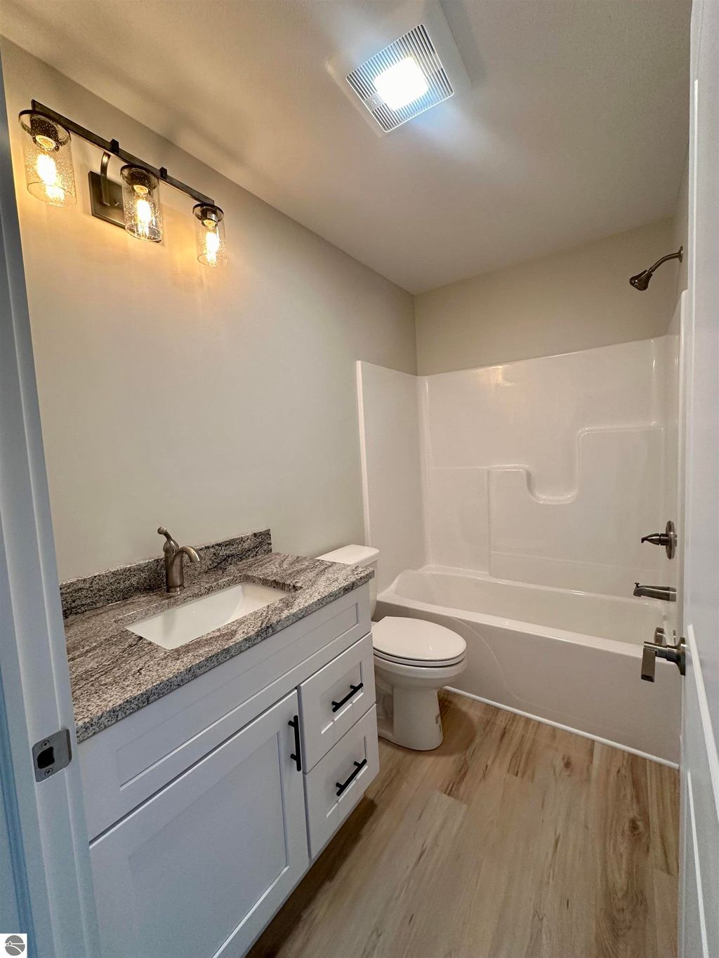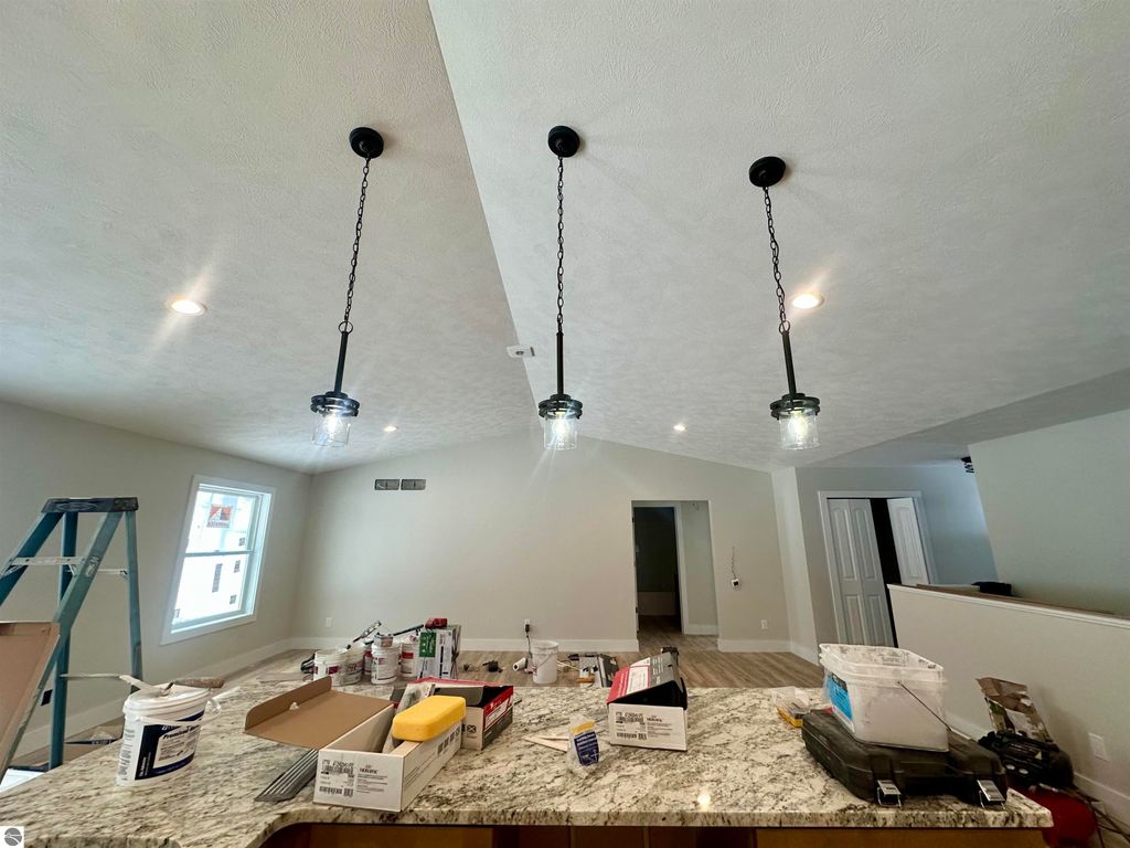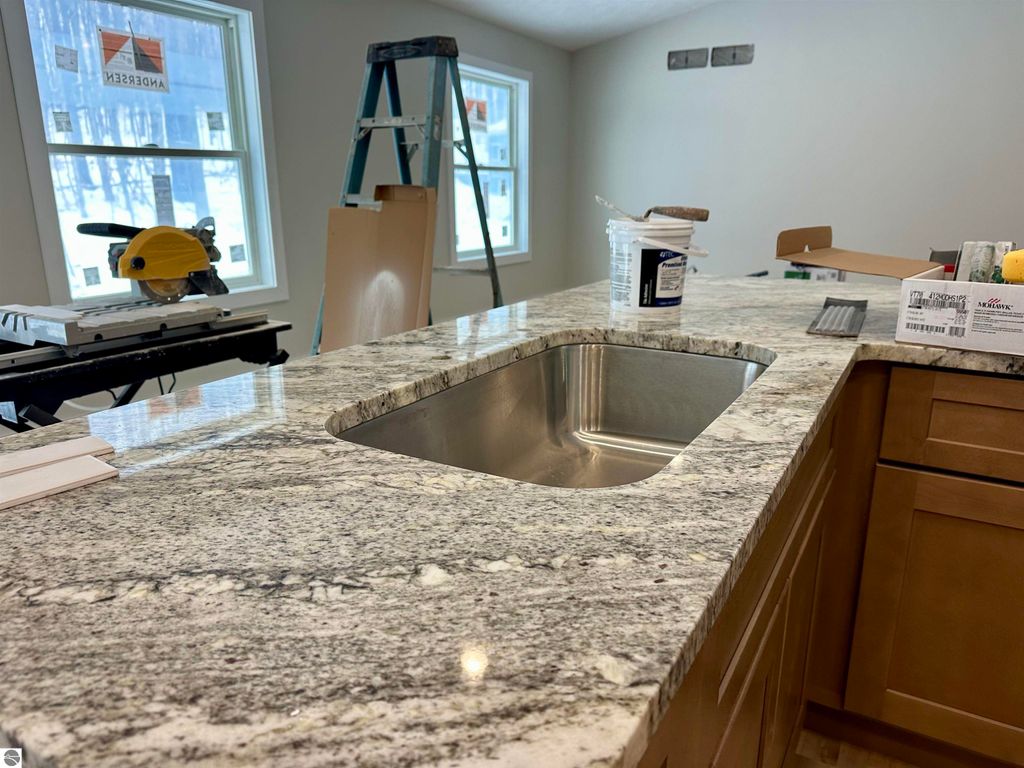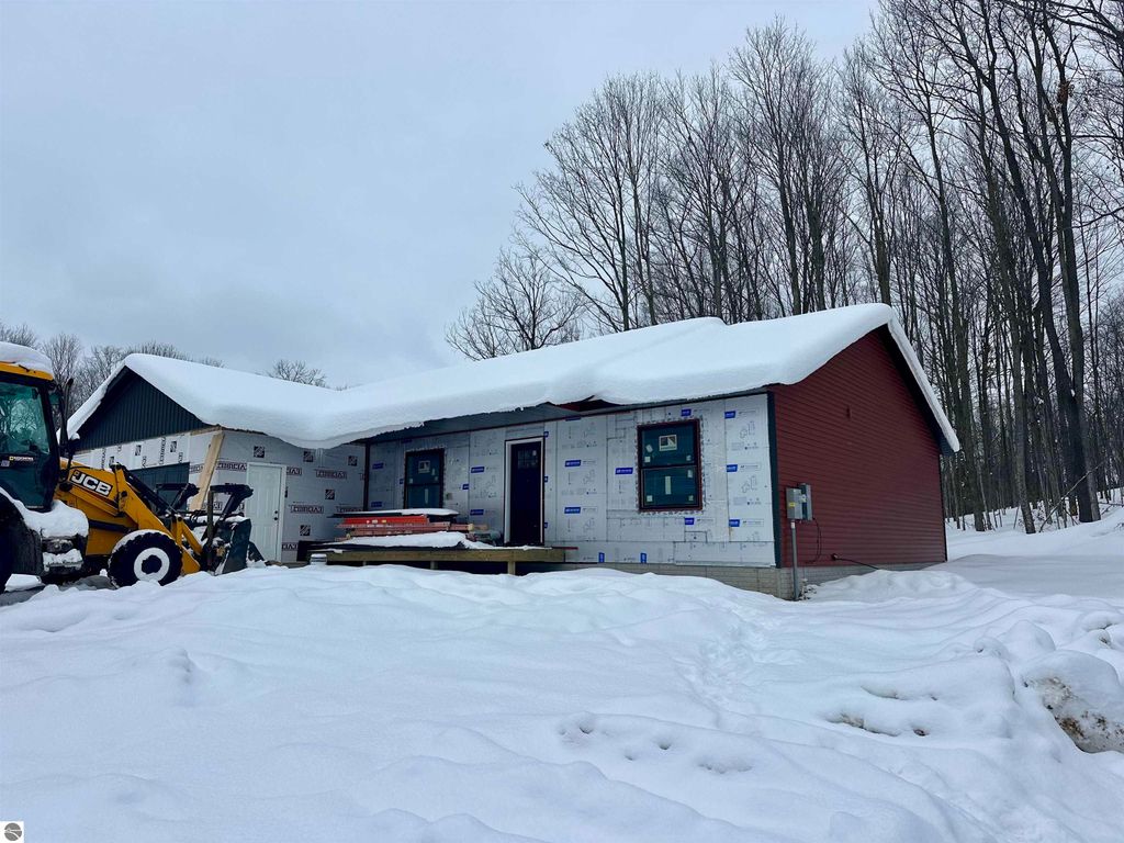 Perfectly nestled among the trees you will find this Brand New 1800 sq ft Ranch with an open floorplan and vaulted ceilings. The home will have burnt sienna siding with black trimmed windows. A quintessential representation of Northern Michigan. This is like a hidden gem behind the Birmley Hills subdivision. Primary suite is on one side of home and 2 bedrooms and a full bath on the other side. This home has it all including central air, city water and sewer, main floor primary suite with walk-in closet with built-ins, double granite vanity, and custom tiled shower. One floor living at its best with main floor laundry! Maintenance free decking, 24 x24 garage, full basement with egress window and plumbing for a third bath. Minutes to shopping, schools, and groceries! Fall in love with the luxury vinyl flooring! The kitchen is a show stopper with soft-close cabinetry in the hue of smoked cashew adorned with the highest grade of Granite. Matte black cabinet pulls will be installed. The lovely tile backsplash sets the modern tone. Large bedrooms and nicely appointed baths. Designer lighting package, dishwasher, microwave, garbage disposal, gutters, irrigation, and hydroseed are all included. This is truly the perfect home package with the benefit of being the first owner and of course the peace of mind of a one year warranty. Dues are only $40 per month to cover roads and snow removal plus liability insurance on all common ground. Fences are allowed from back of home with developer approval. Pictures include a few finished product pictures and will be updated as we progress. You can write an offer now and have 7 days to inspect once home is complete. Most popular floorplan of all! Secure this NOW!