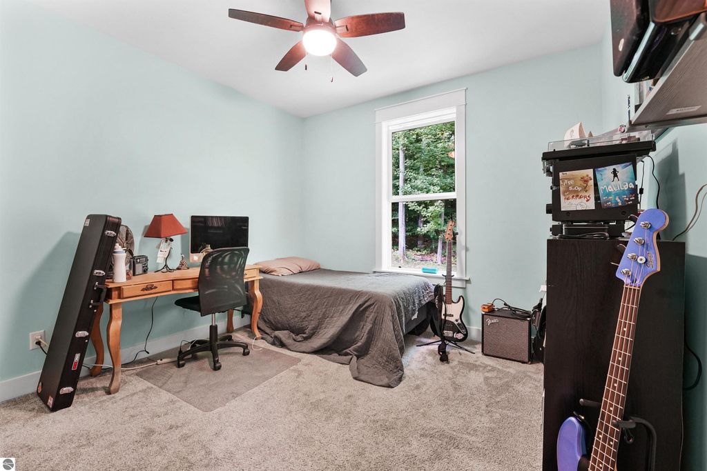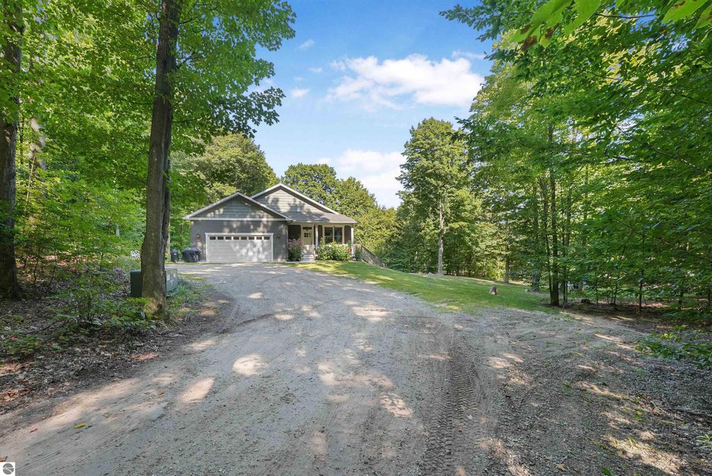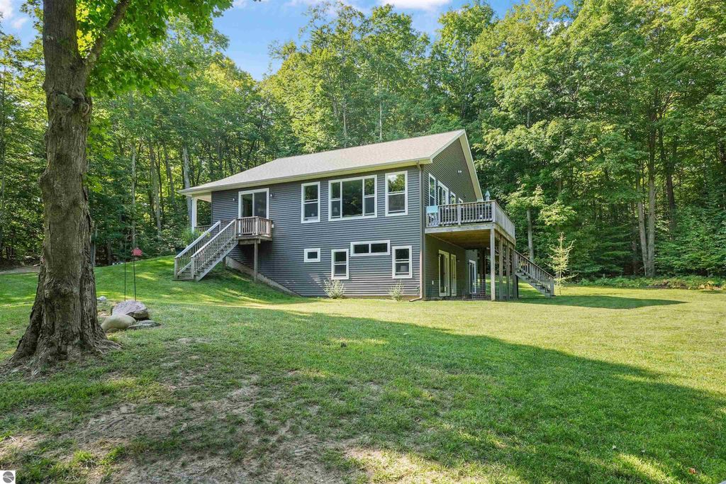 Discover your own slice of Up North living just minutes from Suttons Bay. Built in 2018, this high-end 3-bedroom, 3-bath home features a full open floor plan, lofty ceilings, and abundant natural light. Set on over 5 acres of rolling hardwoods, the property offers privacy, room to roam, and"”most importantly"”future potential. With enough space for at least one additional buildable lot, or even the possibility of creating two separate lots or a duplex site, this setting presents a rare opportunity for both homeowners and investors alike. The home itself includes a walk-out lower level with a fully finished basement, adding flexible living space for entertaining, guests, or a home office. Inside, you'll also find a spacious master suite and modern finishes throughout. Whether you're looking for a year-round residence, a peaceful getaway, or a property with development options, this unique offering combines seclusion with accessibility to all the charm of Leelanau County.