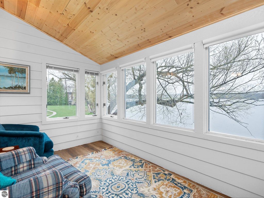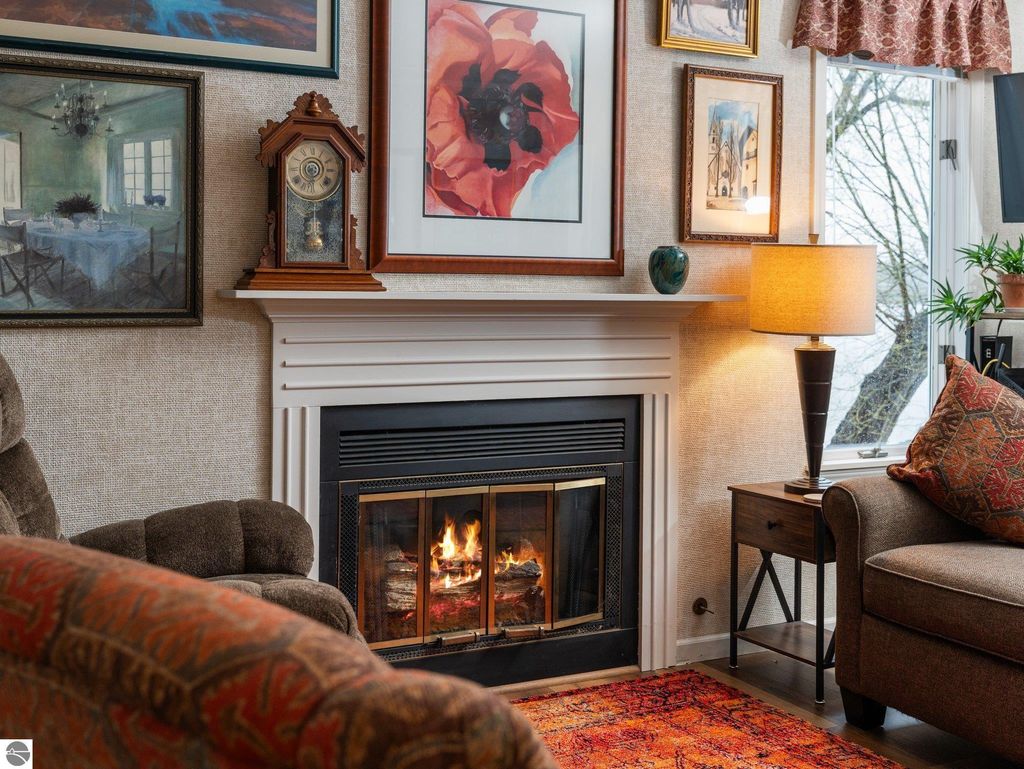 Welcome to 710 Centre Place #26! This recently updated 1 bed/1 bath end unit condo sits next to the wooded edge of Hull Park and offers privacy and direct access to both the Boardman Lake Trail and the TART Trail. Just a short distance from the city library and downtown Traverse City, it's ideally located for both nature and city lovers. Shared access to Boardman Lake adds to the appeal, along with covered parking and a private storage unit. Inside, the space has been thoughtfully upgraded over the past two years. Luxury vinyl plank flooring replaces the original carpet and vinyl, and crown molding adds a polished finish throughout. The sunroom features a new ceiling and custom waffle shades for privacy and sun control, creating an ideal spot to unwind. The kitchen has been opened up and modernized with a new refrigerator, microwave, dishwasher, sleek faucet, and a shiplap ceiling. The bathroom includes a high-profile toilet, updated fixtures, fresh paint, and another shiplap ceiling. In the bedroom, dated built-ins were removed and replaced with clean, modern shiplap. Additional improvements include upgraded lighting in the hallway and dining area, a new thermostat, and recent servicing of both the fireplace and HVAC systems. Whether you're enjoying the fireplace, heading out for a lakeside ride, or simply appreciating the peaceful setting next to the woods and water, this turn-key condo blends convenience, comfort, and style in a prime location.