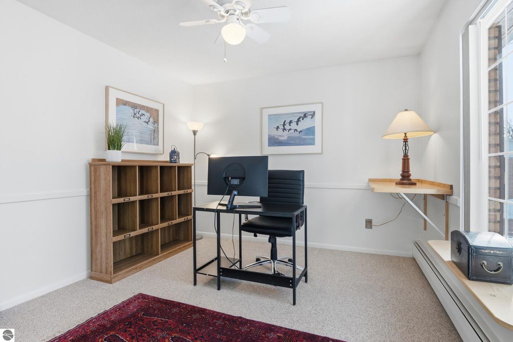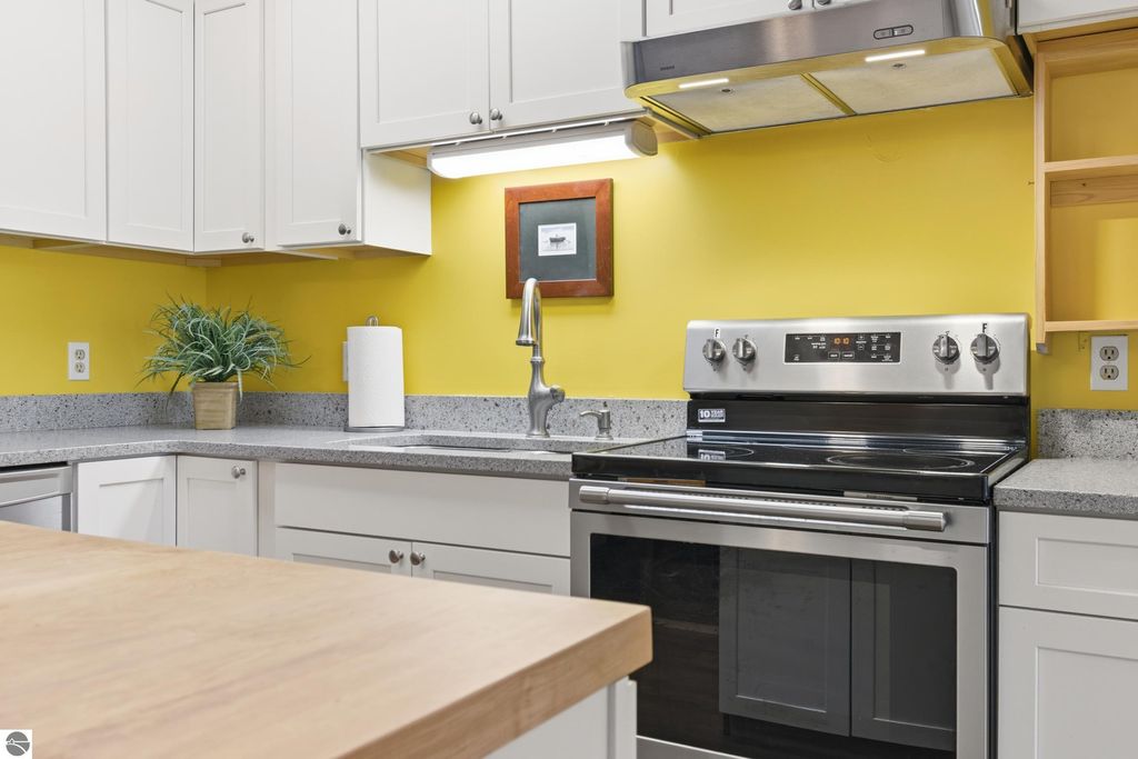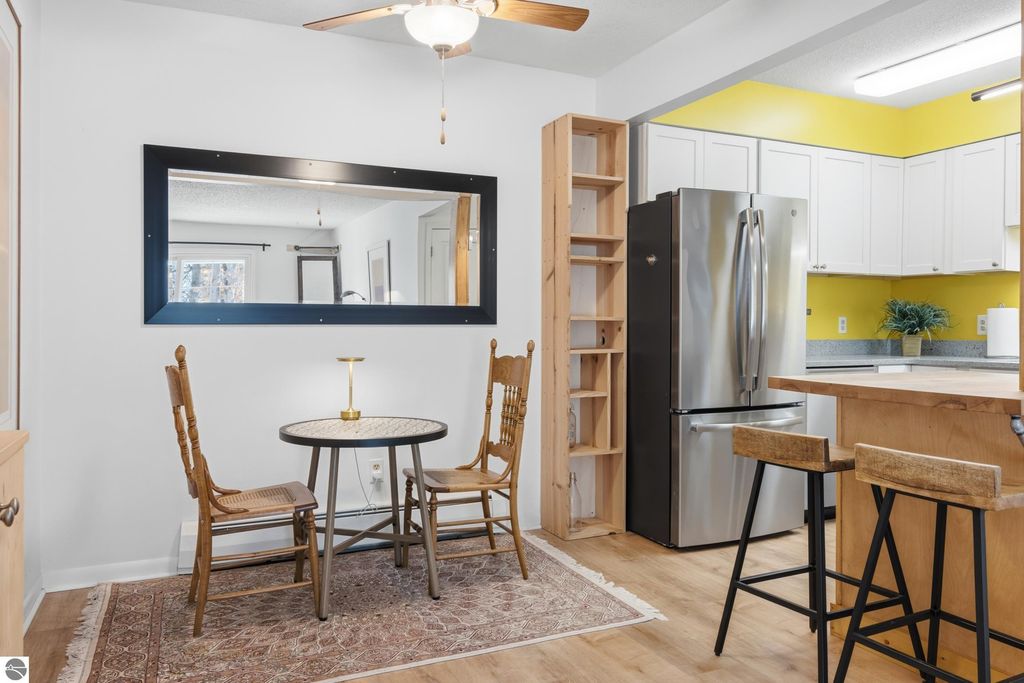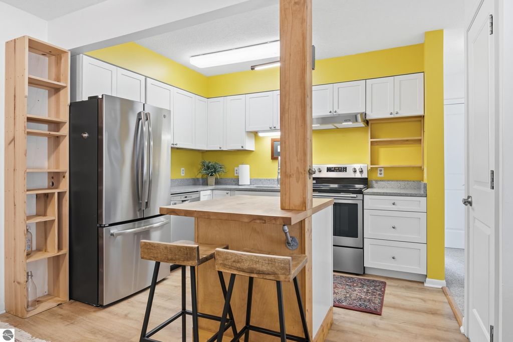 Welcome to 721 Indian Trail, a well-maintained Traverse City condominium offering a thoughtful blend of comfort and modern updates in a convenient in-town location. Interior improvements include updated kitchen cabinetry and countertops (2018), removal of the pantry wall to improve flow (2018), installation of a butcher block (2020), and a newer kitchen hood and refrigerator (2021). The oven/stove and dishwasher were also updated in 2018. Additional updates include a remodeled bathroom (2020), complete interior paint (2019), and unit flooring (2017). A living room wall A/C unit was installed in 2017 for seasonal comfort. Rare in-unit laundry hookups provide added convenience not commonly found in similar units, while community laundry facilities are also available. A dedicated basement storage closet offers additional space for seasonal or personal items. Enjoy outdoor living from your private second-floor balcony. A carport is included, providing year-round covered parking. Rentals, long and short, are very limited and subject to condominium bylaws and association approval. Tom's Grocery is within walking distance, and the Munson Community Center is also nearby. A BATA transit route runs by the front of the condominium, offering convenient public transportation access. East Bay waterfront access is approximately 1 mile away. The TART Trail is a 5-minute walk from the condo. Monthly HOA dues of $320 include gas, water, trash removal, snow removal, and grounds maintenance, adding value and convenience to ownership. The functional layout provides practical living space with easy access to downtown Traverse City, shopping, dining, and Grand Traverse Bay. Whether you're seeking a primary residence, seasonal retreat, or investment opportunity, this updated unit offers convenience and value in a desirable Northern Michigan setting.