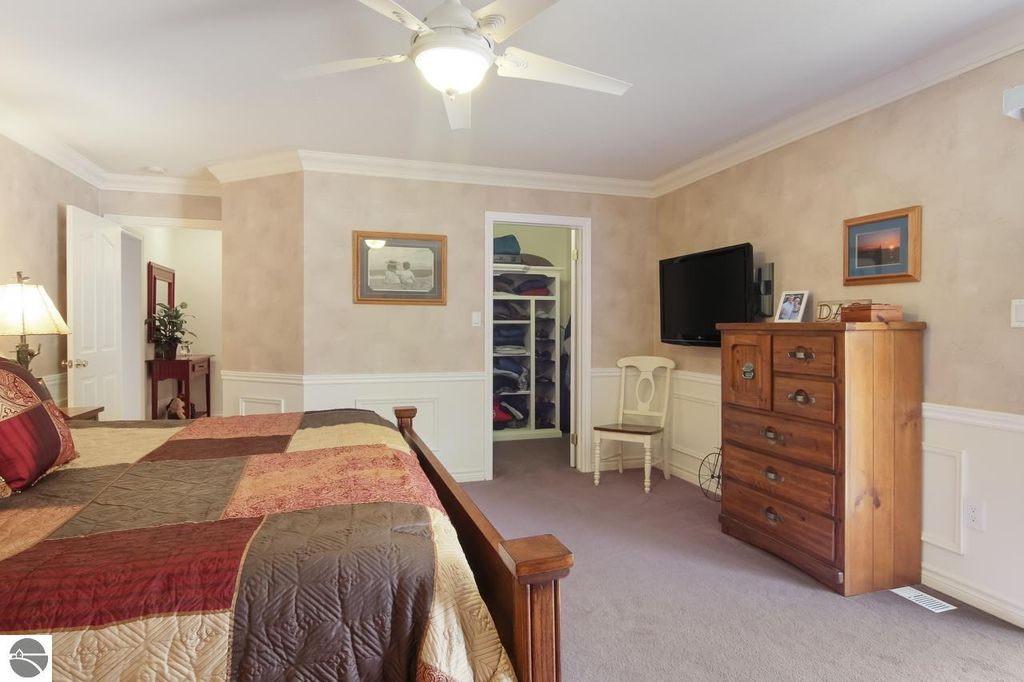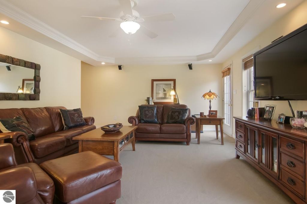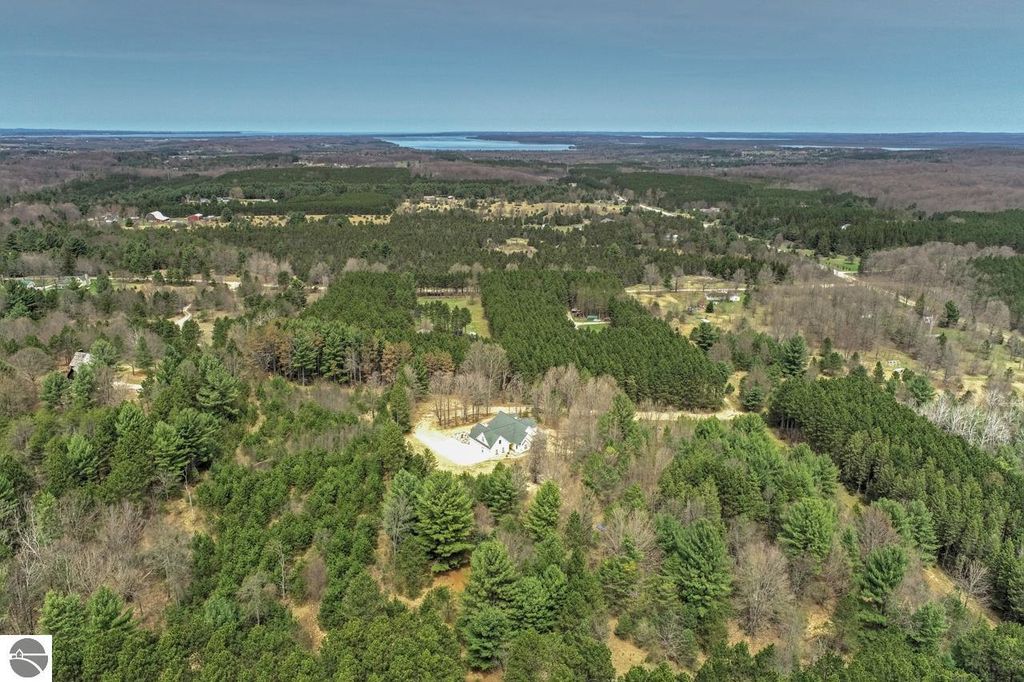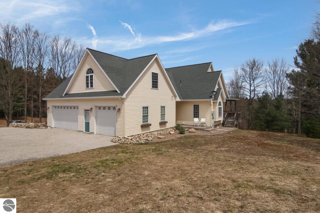 Country living at its finest on 10 beautiful acres adjacent to state land! This meticulously maintained 10-bedroom, 5-bath home offers 5,200 square feet of finished living space across three levels, plus expansive multi-level decking designed to capture sunshine throughout the day. The inviting main floor features a spacious primary suite with ensuite bath and walk-in closet. Enjoy a large eat-in island kitchen with access to a covered deck"”perfect for entertaining. Two separate sitting rooms provide flexible living space, including one highlighted by a stunning fieldstone fireplace. A second bedroom, full bath, laundry room, and welcoming mudroom entry complete the main level. Upstairs, you'll find two generously sized bedrooms with charming dormer windows, a shared sitting area, and a full bath. Above the attached three-car garage are four additional bedrooms and another full bathroom, offering abundant space for guests or multi-generational living. The walk-out lower level includes a self-contained mother-in-law apartment with private entrance. This space offers two large bedrooms (one non-conforming), a full bath, spacious living area with sliding doors to a private deck and hot tub, full kitchen, dining area, laundry and a separate workshop. Additional highlights include an attached three-car garage, RV hookup, and extensive decking on three sides of the home for seamless indoor-outdoor living. The lower portion of the property is flat and ideal for a future barn and paddocks"”perfect for equestrian enthusiasts. Located just six miles from Traverse City Horse Shows, this private setting offers direct access to nearby trails and endless outdoor recreation. A rare opportunity to own a spacious retreat with privacy, versatility, and room to grow!