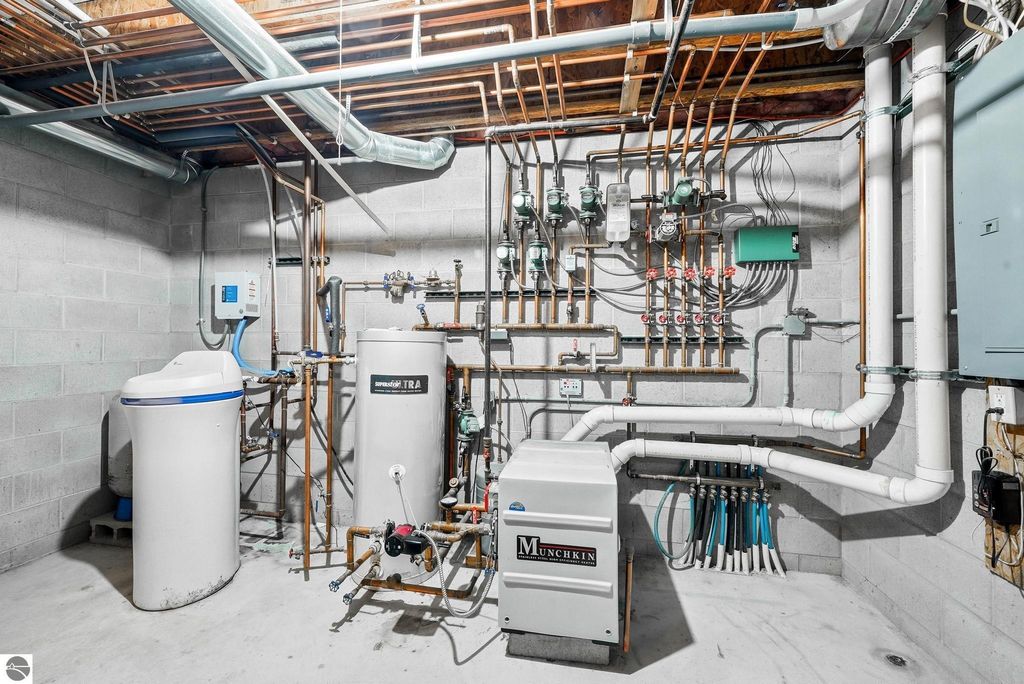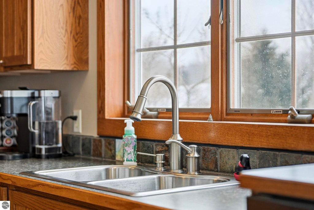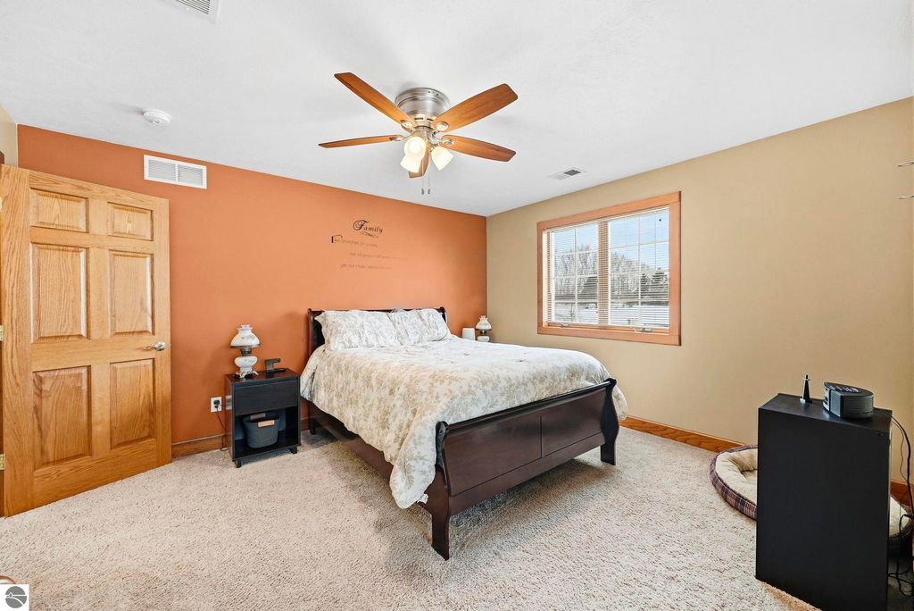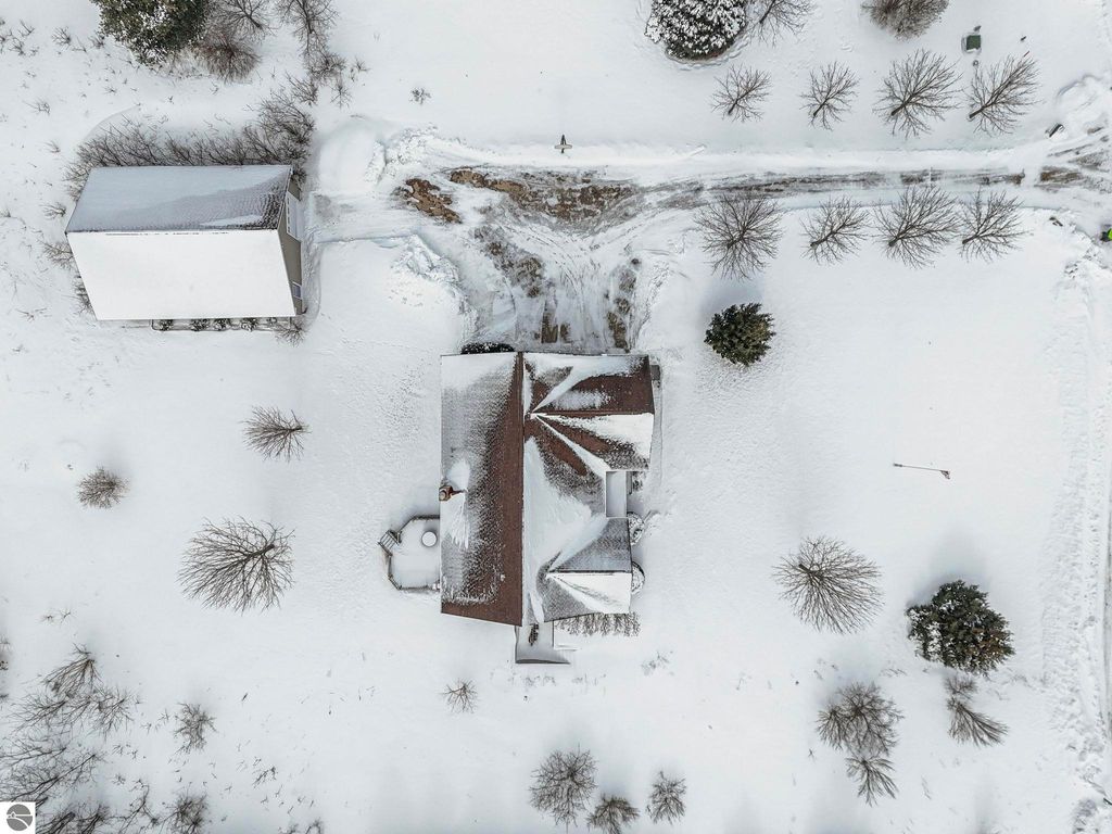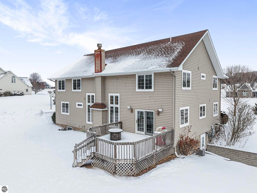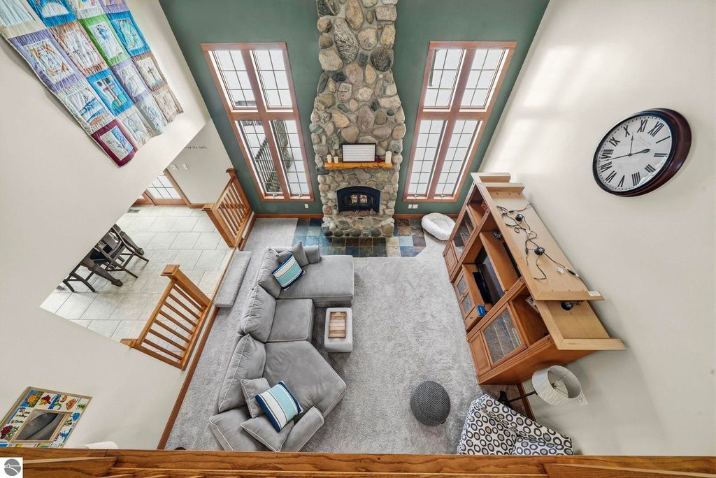 Exceptionally crafted 5 bd 4 bath home just south of Suttons Bay on the beautiful peninsula of Stony Pointe is awaiting it's next family! The main level features a large chef's kitchen opening to the living room anchored by a custom crafted 2 story stone fireplace framed by floor to ceiling windows. 5 bedrooms, 4 bathrooms, with 2 den/office spaces leaves plenty of room for families to grow or to entertain guests. Upper level features a sprawling catwalk to the primary bedroom, a true oasis in and of itself with a custom tiled shower and heated floors throughout. The lower level walks out to the property with a separate entrance and features an oversized wet bar with granite countertops, a bedroom and bathroom with a dual vanity and a dedicated 2nd laundry room that connects to the garage. Additionally the property features a 30x40 detached pole barn with second level storage for all of your vehicle and miscellaneous storage needs. The home sits on a well maintained 2 acre parcel with mature landscaping, invisible pet fencing, underground sprinkler system, covered front porch, and large porch out the back. The Orchards subdivision has county maintained roads with low association fees for a low maintenance lifestyle. Just 4 minutes from Suttons Bay you truly have all of the best parts of the Leelanau lifestyle at your fingertips. From world class restaurants, to pristine sandy beaches, well awarded wineries, to the T.A.R.T bike trail connecting through Traverse City, this home truly has it all.
