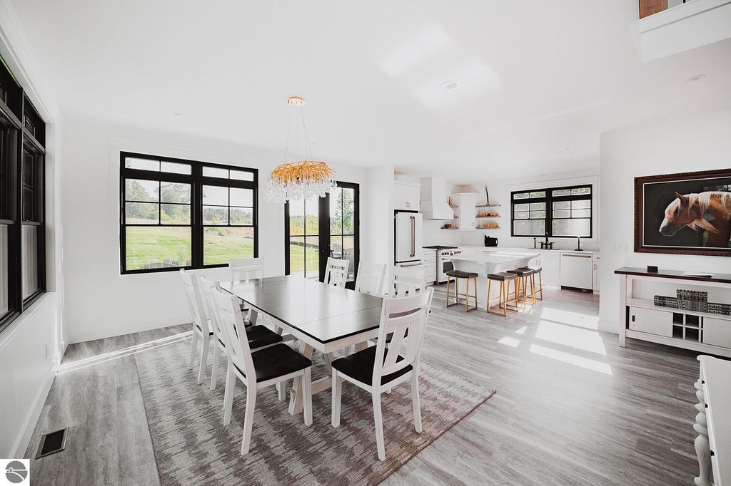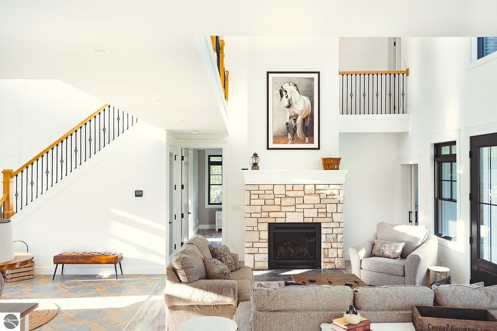 Set on just over 5 private acres in Northern Grand Traverse County's equestrian country, this newly completed home offered furnished/turn key offers a perfect blend of modern comfort, peaceful countryside living, and verifiable income potential, making it an excellent investment or lifestyle property. Designed with a light, airy, and spacious layout, the home features 4 bedrooms and 3 full bathrooms, including a beautiful primary suite with its own fireplace, creating a cozy private retreat. The large kitchen and dining area are ideal for entertaining, while expansive windows bring in natural light and showcase the surrounding countryside and orchard views. Step outside to the outdoor deck seating area, perfect for relaxing or hosting gatherings of both small and large groups while enjoying the quiet rural setting. Located approximately one mile from the Traverse City Horse Shows at Flintfields Horse Park, the property is ideally positioned in the heart of Northern Michigan's renowned equestrian corridor. With its acreage, scenic surroundings, proximity to world-class equestrian events, and documented rental income, this property presents a rare opportunity for both personal enjoyment and strong investment potential.