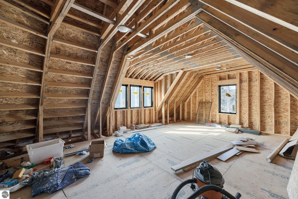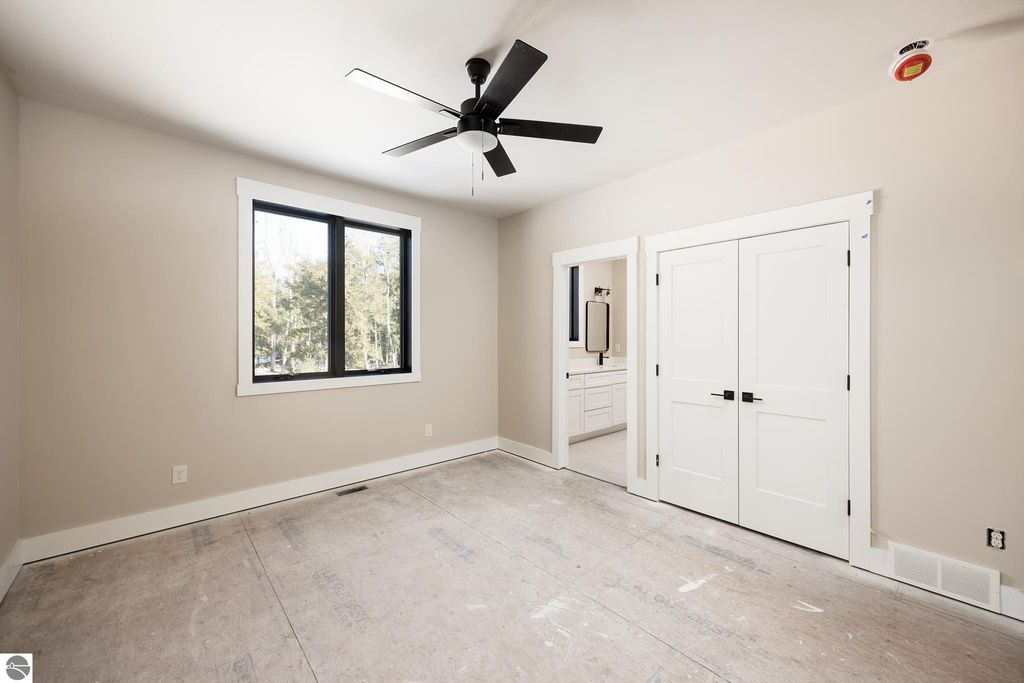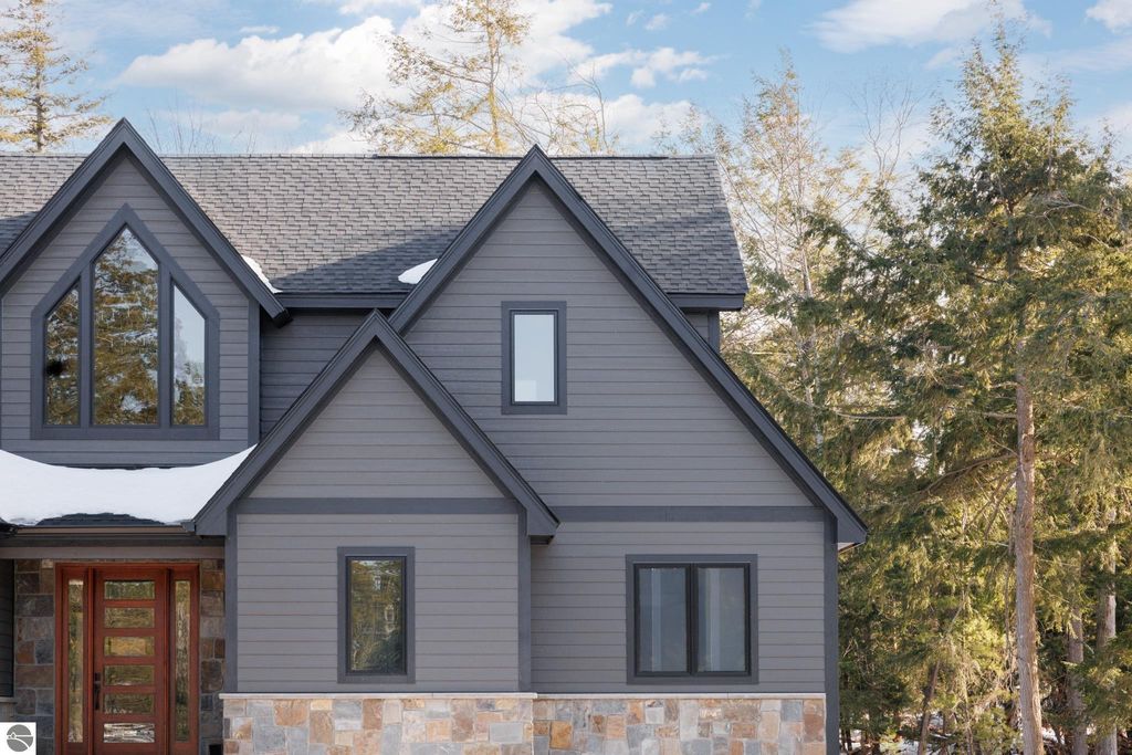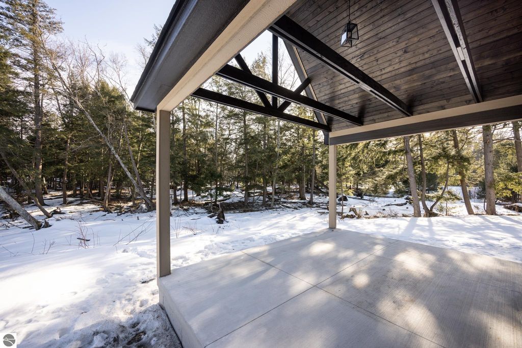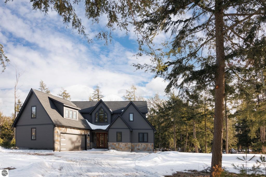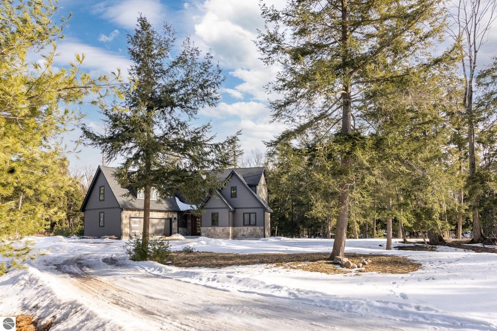 Brand new construction tucked into a beautiful 2.37 acre setting just a short walk from downtown Glen Arbor. This thoughtfully designed home features LP Smart Siding, freshly seeded and graded lawn, and striking modern finishes inside and out. Enjoy 9' ceilings and composite hardwood flooring and Marvin windows that flows through the main living areas, creating a warm and welcoming space. The kitchen shines with custom maple cabinetry, quartz countertops, and a layout perfect for both everyday living and entertaining. All bathrooms offer tile floors, tile showers, and matching quartz counters for a cohesive, upscale feel. The main level boasts a spacious primary suite, plus a convenient laundry and mudroom just off the oversized two-car garage. Upstairs you'll find a charming guest suite, two additional bedrooms, and the cutest Jack-and-Jill bathroom connecting the secondary rooms. With four bedrooms and four full baths (two on each level), there's room for everyone. A 600 sq ft unfinished bonus room above the garage offers endless potential"”home gym, studio, or extra storage.