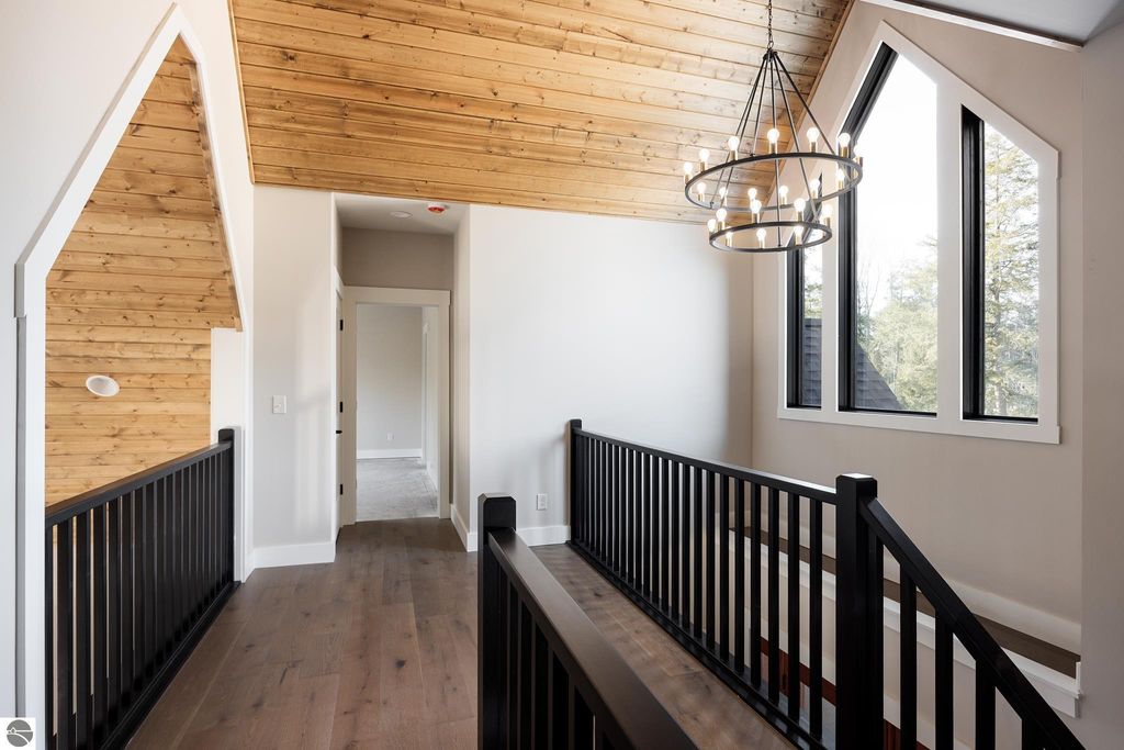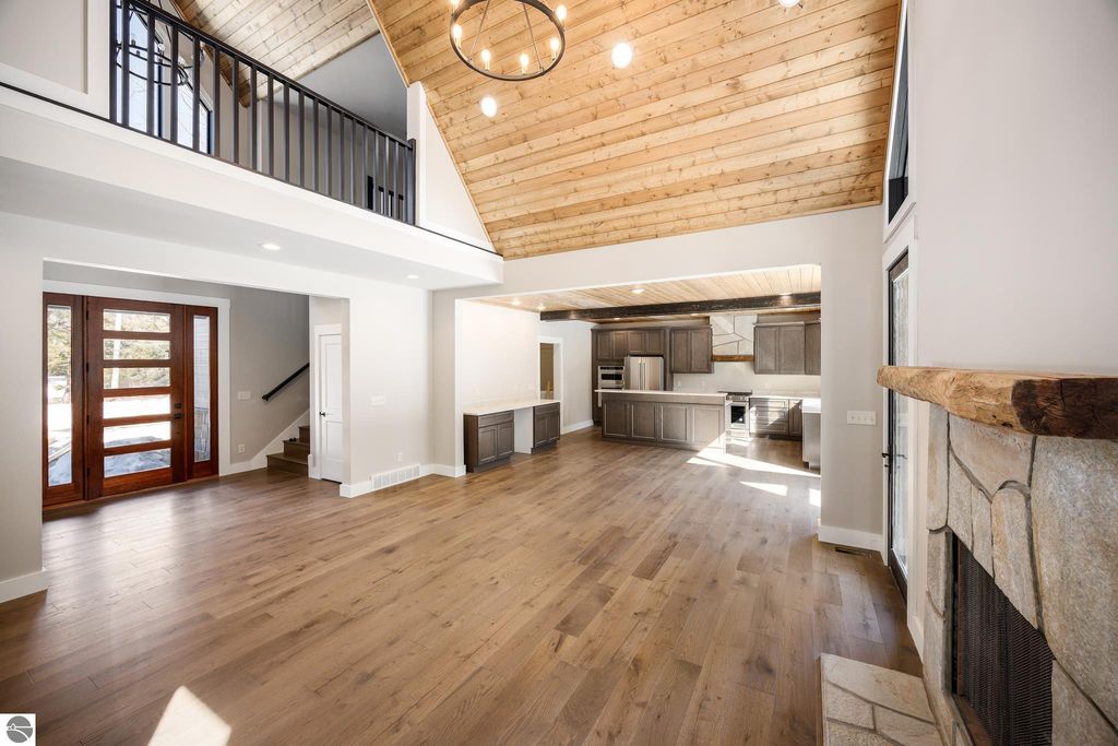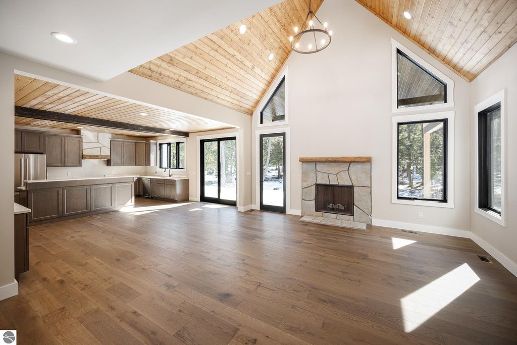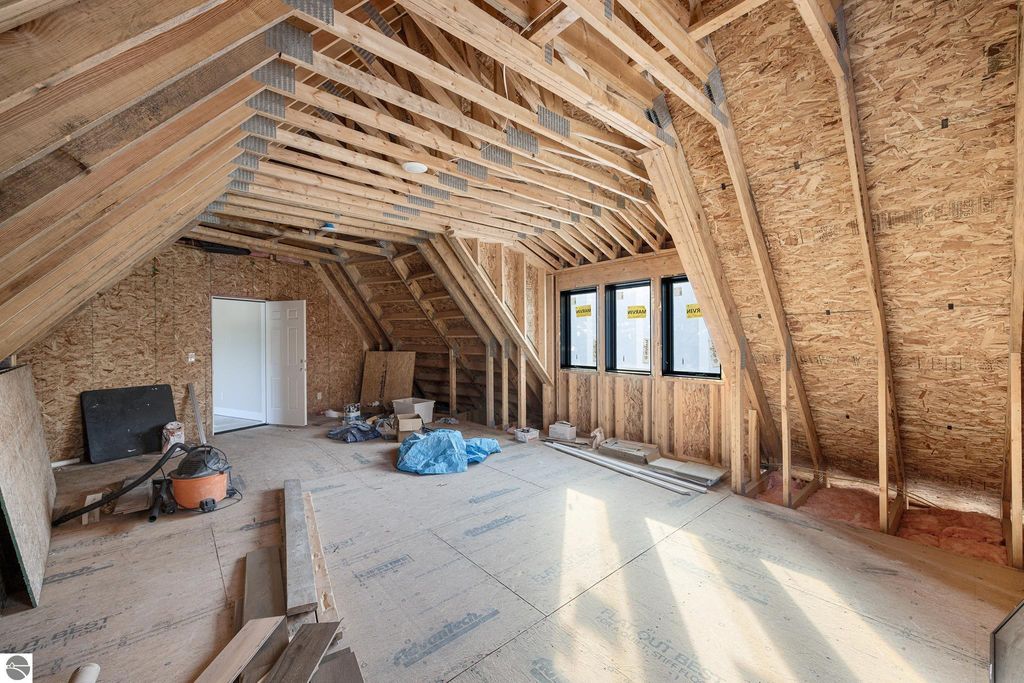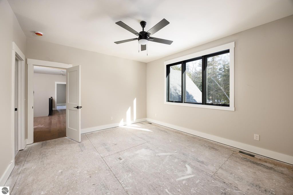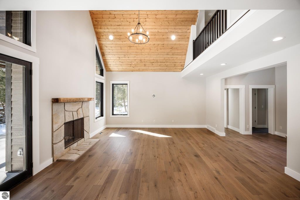 Brand new construction tucked into a beautiful 2.37 acre setting just a short walk from downtown Glen Arbor. This thoughtfully designed home features LP Smart Siding, freshly seeded and graded lawn, and striking modern finishes inside and out. Enjoy 9' ceilings and composite hardwood flooring and Marvin windows that flows through the main living areas, creating a warm and welcoming space. The kitchen shines with custom maple cabinetry, quartz countertops, and a layout perfect for both everyday living and entertaining. All bathrooms offer tile floors, tile showers, and matching quartz counters for a cohesive, upscale feel. The main level boasts a spacious primary suite, plus a convenient laundry and mudroom just off the oversized two-car garage. Upstairs you'll find a charming guest suite, two additional bedrooms, and the cutest Jack-and-Jill bathroom connecting the secondary rooms. With four bedrooms and four full baths (two on each level), there's room for everyone. A 600 sq ft unfinished bonus room above the garage offers endless potential"”home gym, studio, or extra storage.
