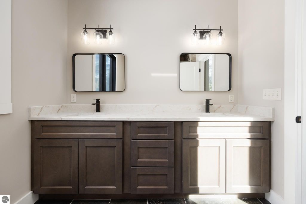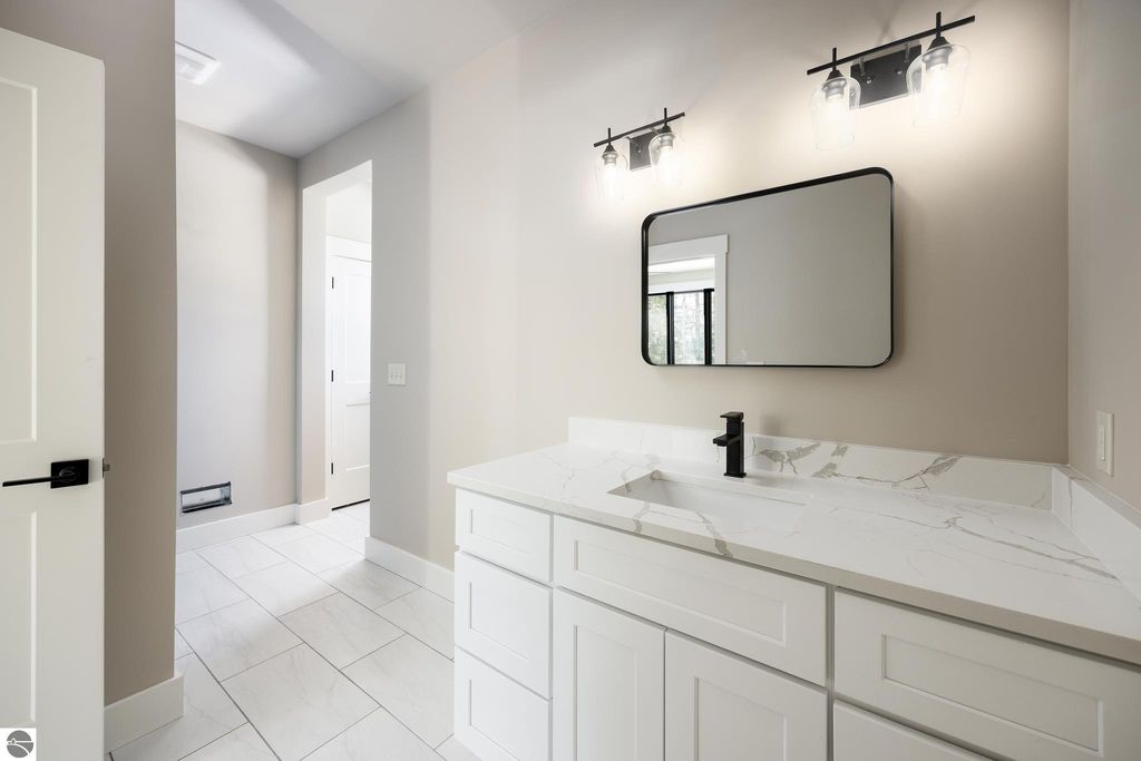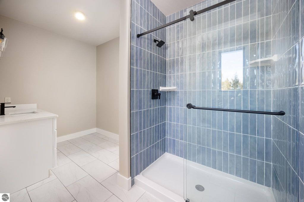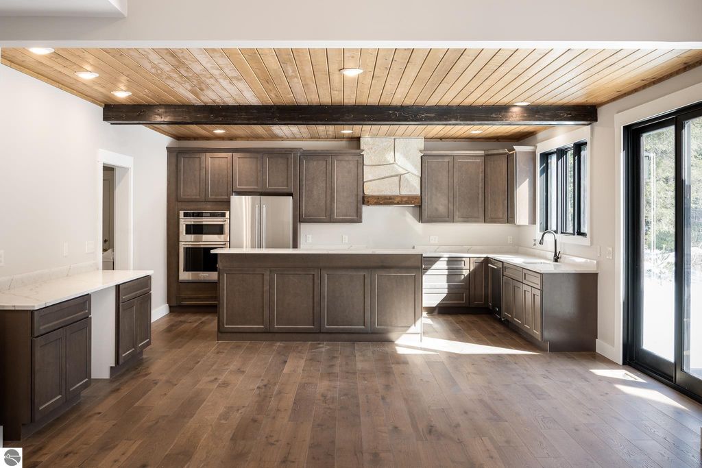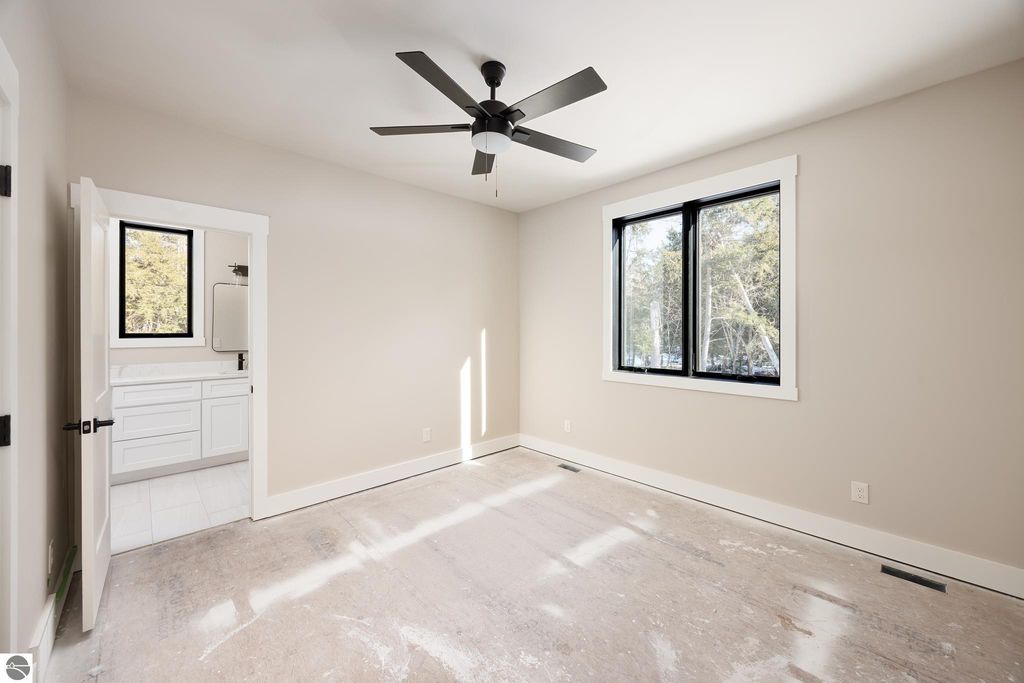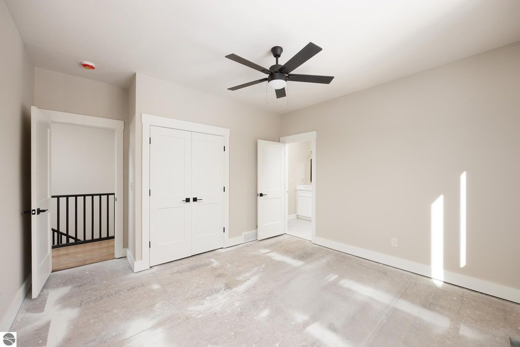Brand new construction tucked into a beautiful 2.37 acre setting just a short walk from downtown Glen Arbor. This thoughtfully designed home features LP Smart Siding, freshly seeded and graded lawn, and striking modern finishes inside and out. Enjoy 9' ceilings and composite hardwood flooring and Marvin windows that flows through the main living areas, creating a warm and welcoming space. The kitchen shines with custom maple cabinetry, quartz countertops, and a layout perfect for both everyday living and entertaining. All bathrooms offer tile floors, tile showers, and matching quartz counters for a cohesive, upscale feel. The main level boasts a spacious primary suite, plus a convenient laundry and mudroom just off the oversized two-car garage. Upstairs you'll find a charming guest suite, two additional bedrooms, and the cutest Jack-and-Jill bathroom connecting the secondary rooms. With four bedrooms and four full baths (two on each level), there's room for everyone. A 600 sq ft unfinished bonus room above the garage offers endless potential"”home gym, studio, or extra storage.
