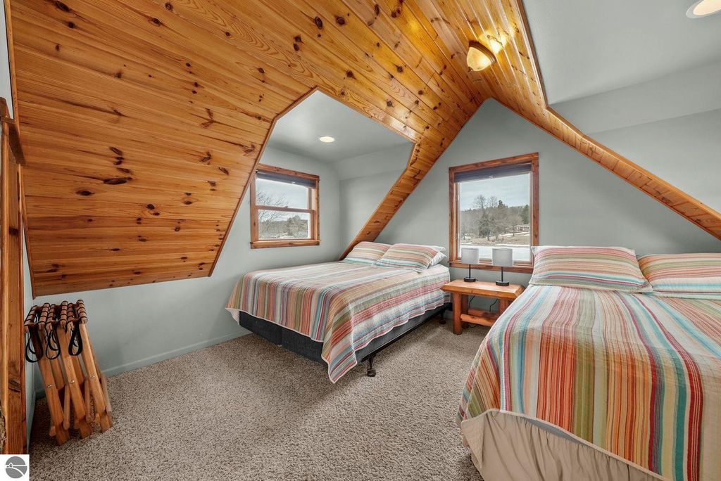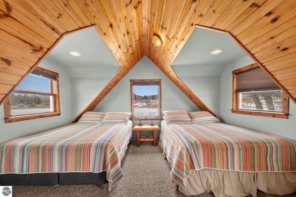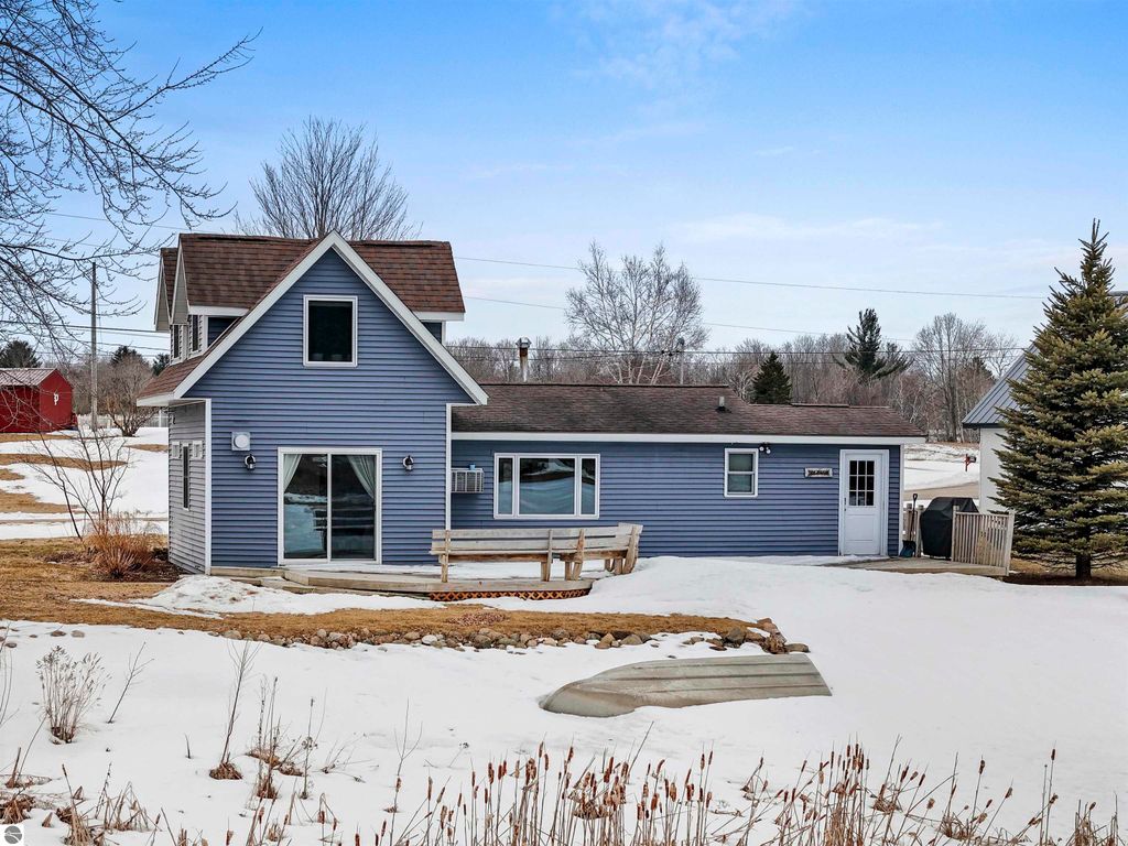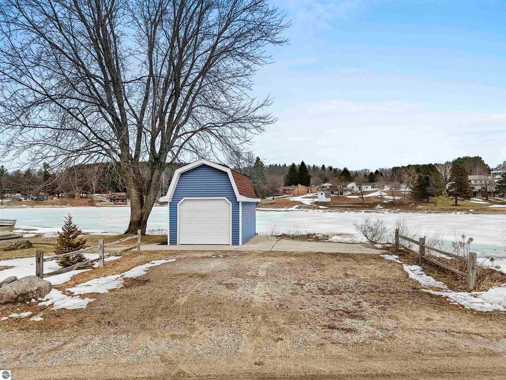 Beautifully remodeled, very good condition, 2 bedroom, 2 bath home, on all-sports Stone Ledge Lake! Approximately 180 Ft private lake frontage! Several of the rooms have gorgeous knotty pine ceilings. There is a bedroom on the main floor, then up to the large loft area where you have room for a few beds, a loveseat, dressers...or whatever you desire! Many windows give you plenty of sunshine on both levels. You'll enjoy the attractive "gas" wood stove in the living area on those chilly winter evenings! Other amenities include an awesome kitchen with lots of cupboards and a snack bar, efficient hot water heat with a nice open floor plan. Go out side to find the awesome lakefront, a sandy beach for swimming & summer fun, your own dock, and of course a deck to sit and enjoy it all!!! Plus a small 1 car garage for your vehicle or for storage and toys! Really lovely home! Move in ready! And just a 10 minute drive to downtown Cadillac for unique shops and eateries. Plus, this home is "rental friendly". Come See!