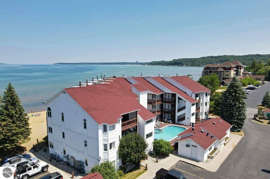 Welcome to this fully furnished, beautifully updated beachfront retreat at The Beach Condominiums"”a turn-key escape on the sandy shores of East Bay. This 3rd-floor end unit offers exceptional privacy, stunning natural light, and some of the best beaches in the Traverse City area. Water lovers will appreciate being just steps away from a convenient public boat launch. Inside, soaring vaulted ceilings and half-moon windows create an airy, sun-filled atmosphere. Enjoy breathtaking bay views from your private balcony, or take advantage of the community's amenities, including a heated pool, hot tub, private sandy beach, and elevator access. Completely renovated from top to bottom in 2021, this condo features a walk-in marble tile shower, new washer & dryer (2024) with transferable warranty, USB outlets, designer lighting, and blackout blinds, updated kitchen with granite countertops, tile backsplash, and a brand-new stainless refrigerator (October 2025). The spacious master suite includes a large private bay window. With a proven track record of strong investment income, this property doubles as both a personal getaway and a smart portfolio addition. Local favorites like Hopscotch Brick Oven & Taproom, McGee's 72, and Grand Traverse Resort & Spa are all close by. You don't want to miss this fantastic waterfront condo!
