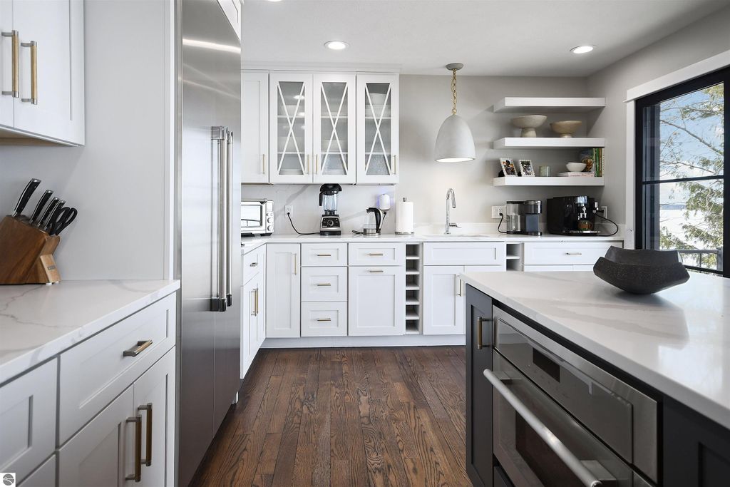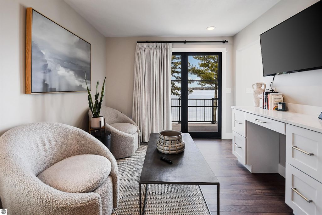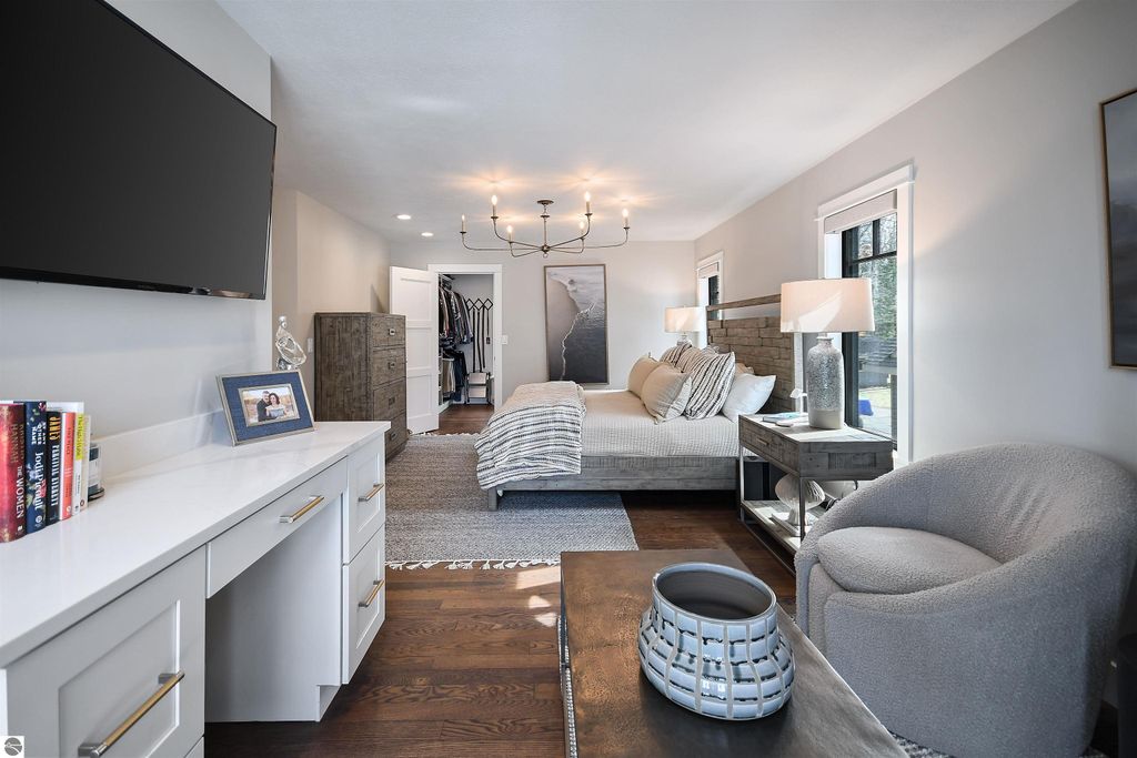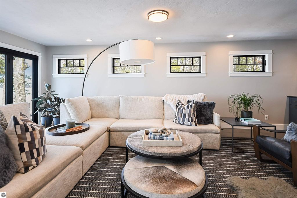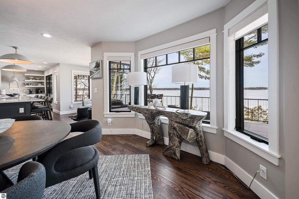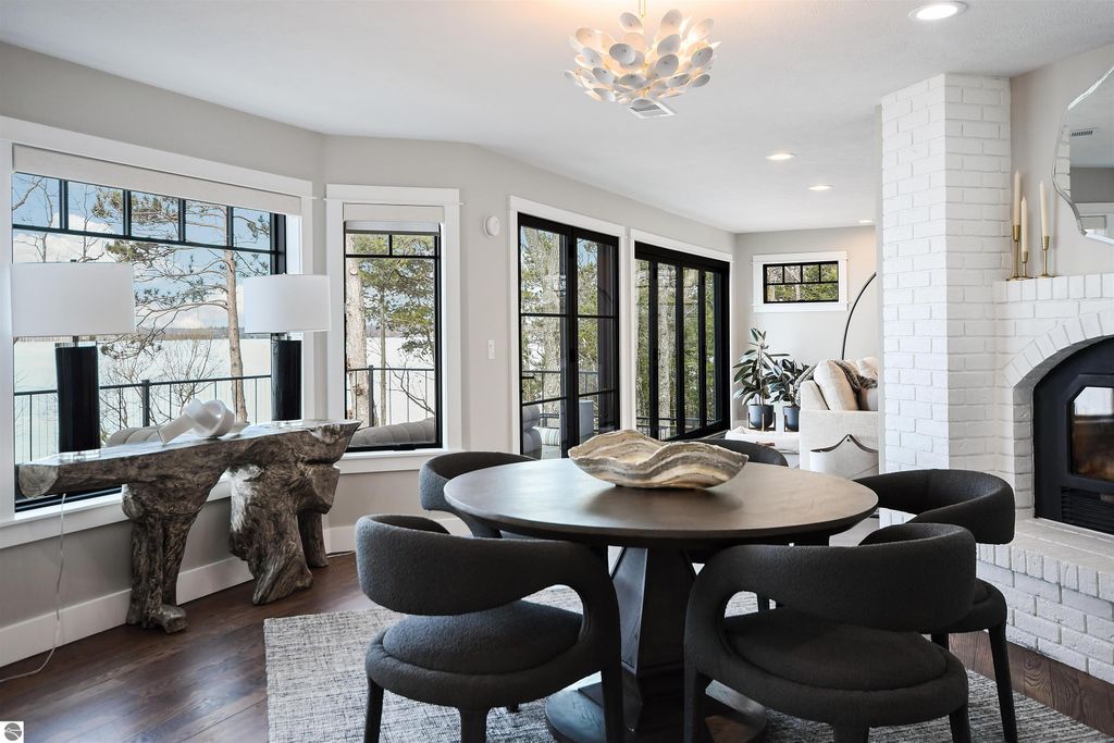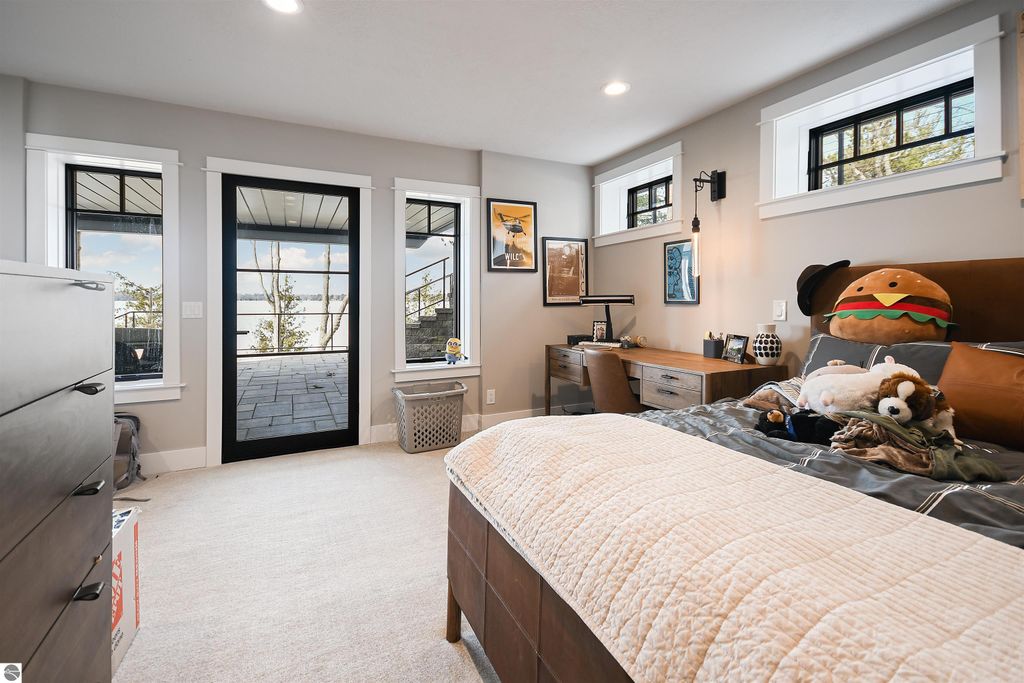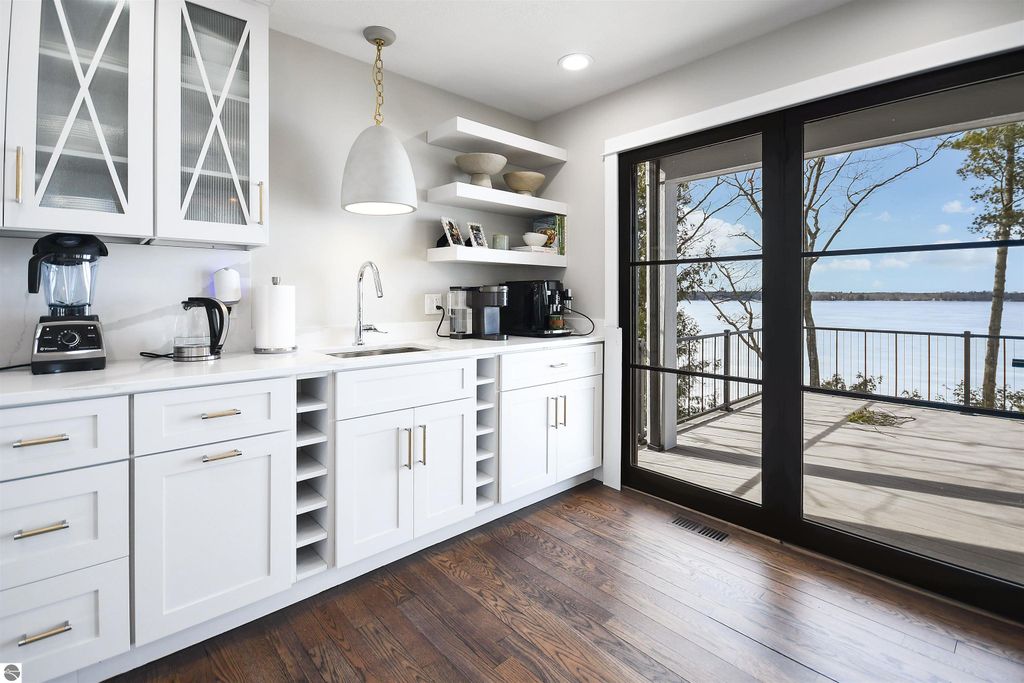 Stunning Green Lake waterfront. This exceptional lakefront property, extensively renovated between 2022-2024, offers breathtaking sunset views and 75' of private sandy beach"”perfect for enjoying Northern Michigan summers. Expansive outdoor living spaces provide multiple areas for entertaining, all set against the beautiful backdrop of Green Lake. Inside, the home showcases a complete top-to-bottom remodel with showroom-quality finishes and a sophisticated neutral palette that creates a bright, modern feel throughout. The centerpiece of the home is a chef's dream kitchen featuring a dramatic island with premium quartz countertops and matching backsplash, paired with high-end Thermador appliances. Nearly every room captures stunning water views, creating a seamless connection between indoor living and the surrounding waterfront setting. The luxurious primary suite offers a spacious walk-in closet, private sitting area with balcony access, and a spa-inspired en suite bath with a deep soaking tub and indulgent steam shower. The fully finished walkout lower level functions beautifully as an in-law or guest suite, complete with its own kitchenette, laundry, and private entrance. Located in the highly sought-after Penn Lock Colony neighborhood, the property enjoys convenient access to Interlochen Center for the Arts just across the lake, the Village of Interlochen, Crystal Mountain Resort, and is only a short drive to downtown Traverse City. Click on virtual tour link for an incredibly realistic view of the interior.