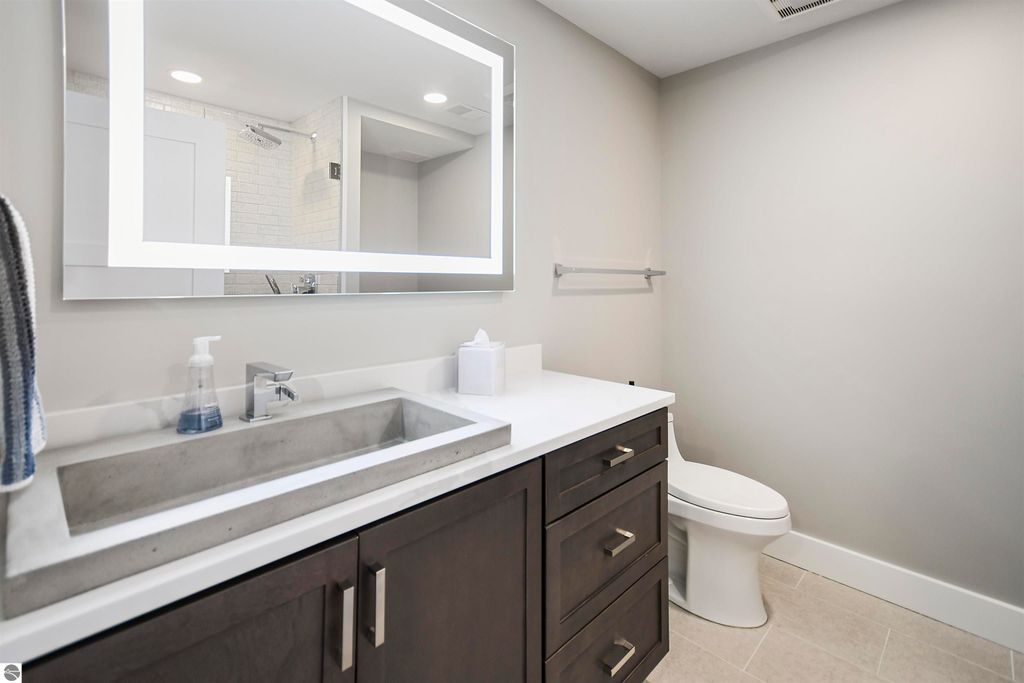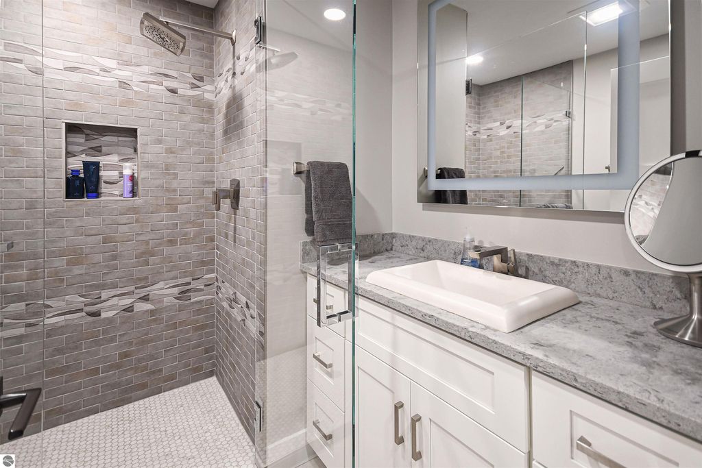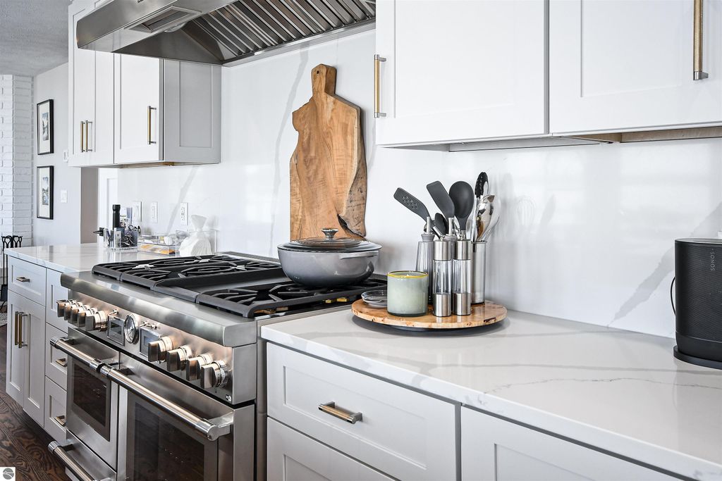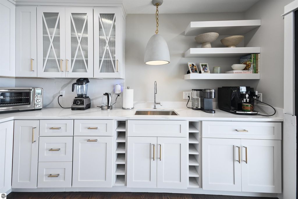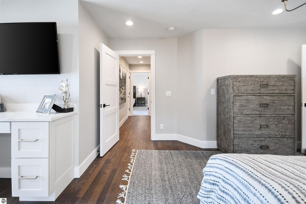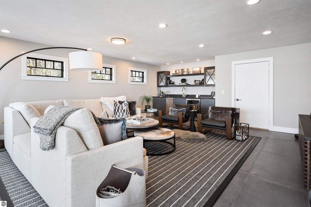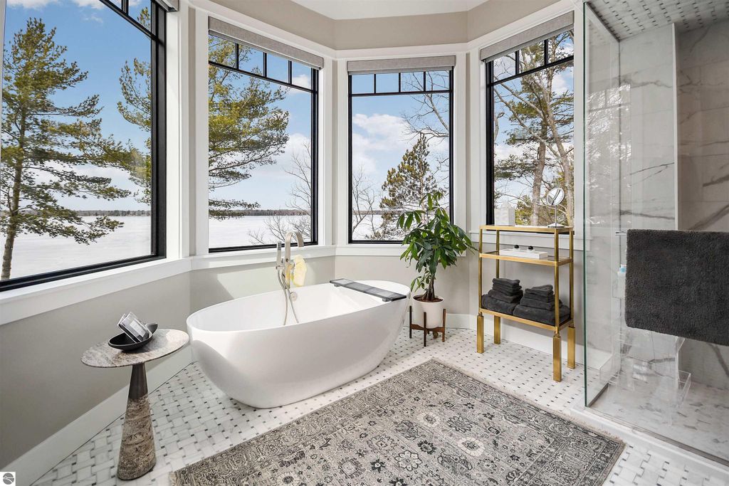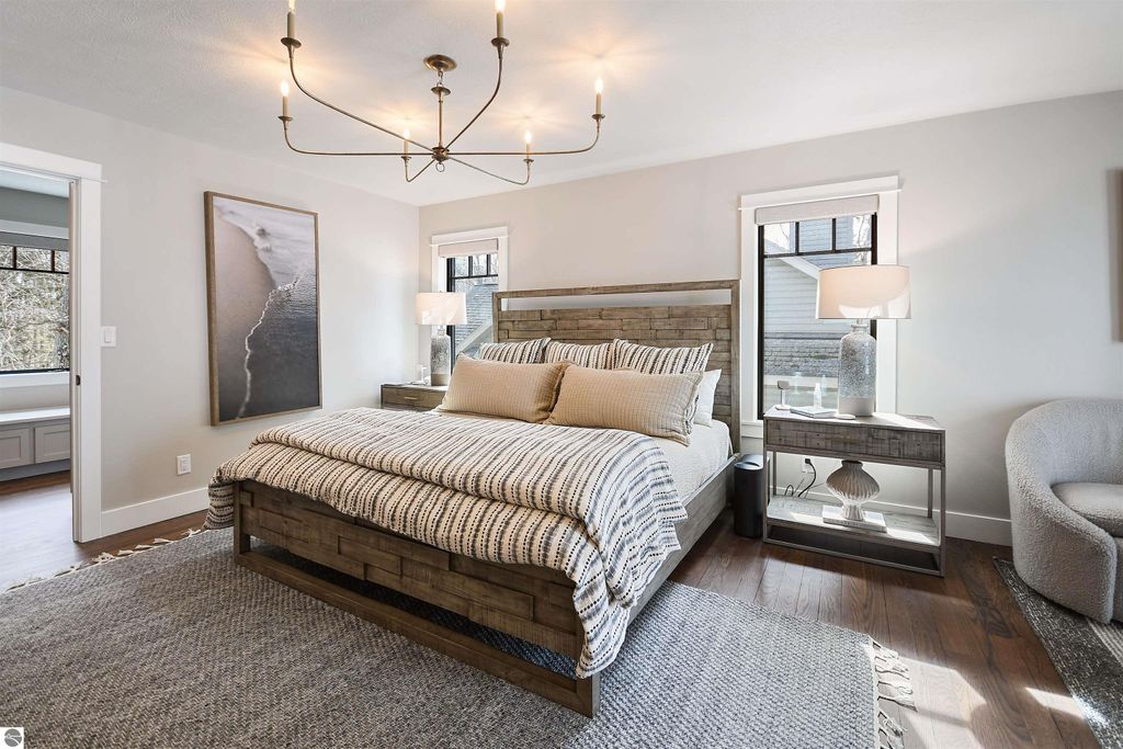 Stunning Green Lake waterfront. This exceptional lakefront property, extensively renovated between 2022-2024, offers breathtaking sunset views and 75' of private sandy beach"”perfect for enjoying Northern Michigan summers. Expansive outdoor living spaces provide multiple areas for entertaining, all set against the beautiful backdrop of Green Lake. Inside, the home showcases a complete top-to-bottom remodel with showroom-quality finishes and a sophisticated neutral palette that creates a bright, modern feel throughout. The centerpiece of the home is a chef's dream kitchen featuring a dramatic island with premium quartz countertops and matching backsplash, paired with high-end Thermador appliances. Nearly every room captures stunning water views, creating a seamless connection between indoor living and the surrounding waterfront setting. The luxurious primary suite offers a spacious walk-in closet, private sitting area with balcony access, and a spa-inspired en suite bath with a deep soaking tub and indulgent steam shower. The fully finished walkout lower level functions beautifully as an in-law or guest suite, complete with its own kitchenette, laundry, and private entrance. Located in the highly sought-after Penn Lock Colony neighborhood, the property enjoys convenient access to Interlochen Center for the Arts just across the lake, the Village of Interlochen, Crystal Mountain Resort, and is only a short drive to downtown Traverse City. Click on virtual tour link for an incredibly realistic view of the interior.