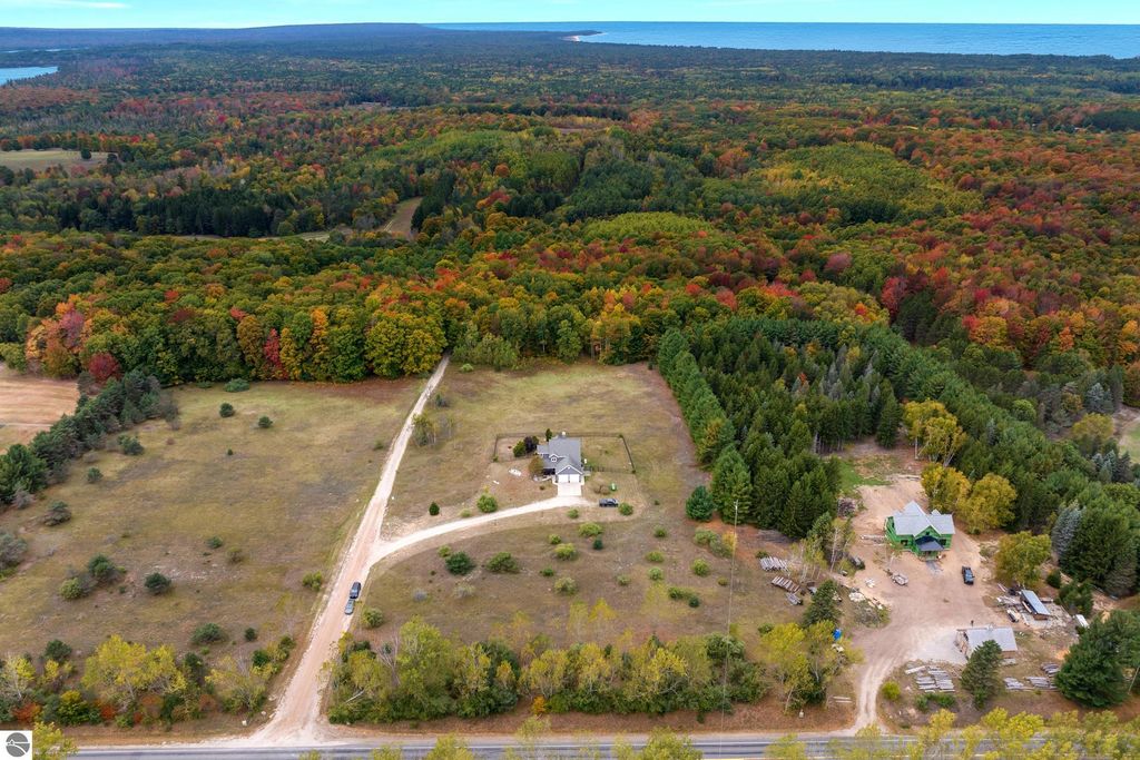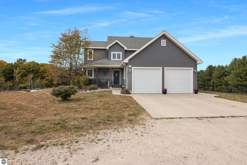Welcome to your private retreat! This 1800 sq. ft. home sits on 10 acres, featuring a mix of open land and woods. The property includes a fenced in portion of the yard, to keep your kiddos, or fur babies safe. Step inside to find a bright and open floor plan with a main floor master suite, and main floor laundry! On the upper level, you will find a second bedroom and bath-including a loft-style 3rd bedroom that adds character and charm. The basement is studded, insulated, and drywalled. It features an egress window for a potential 4th bedroom, and is partially plumbed for an additional bathroom. Just waiting for your final touches to make it complete! Home also comes with a full house Generac generator for peace of mind, and new fiber optic high speed internet with Spectrum. Whether you're looking for a peaceful year-round residence, or a weekend getaway, this property offers space, with an unbeatable location, just South of Empire, close to Sleeping Bear Dunes National Lakeshore, beautiful beaches, scenic trails, shopping and dining!!