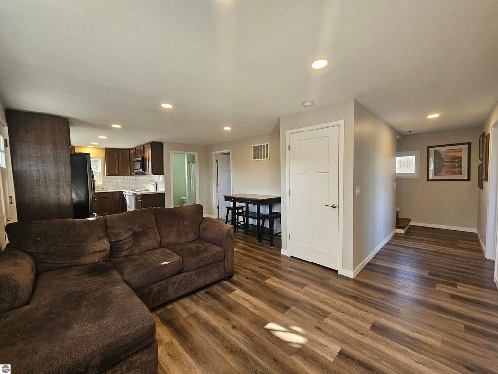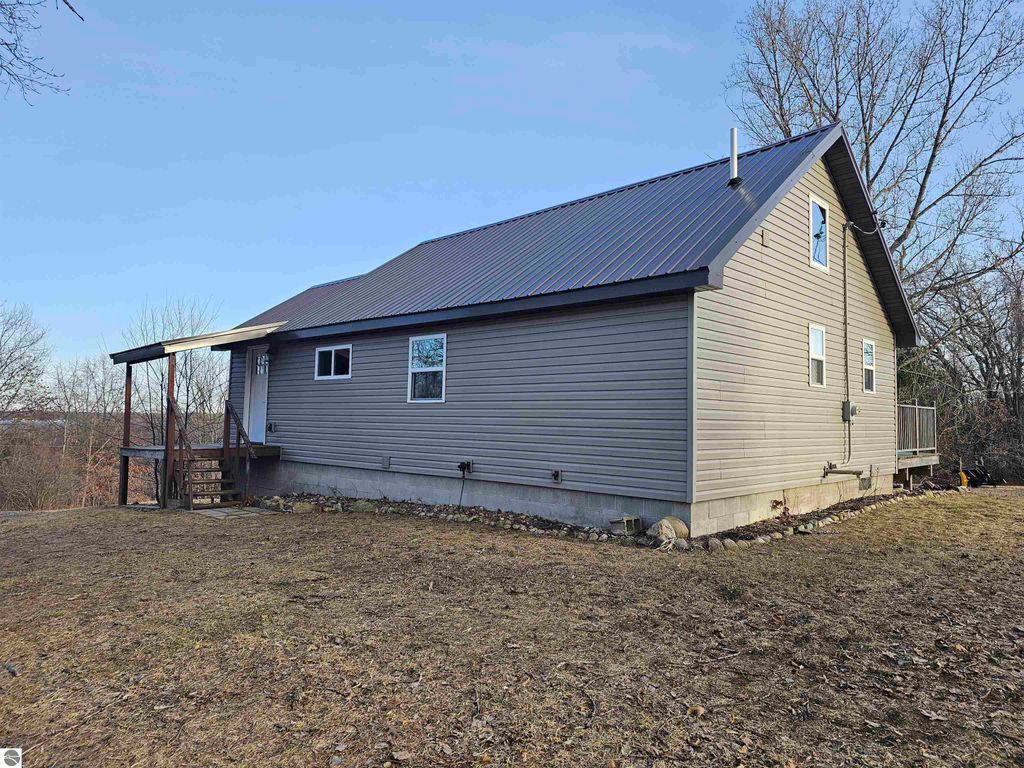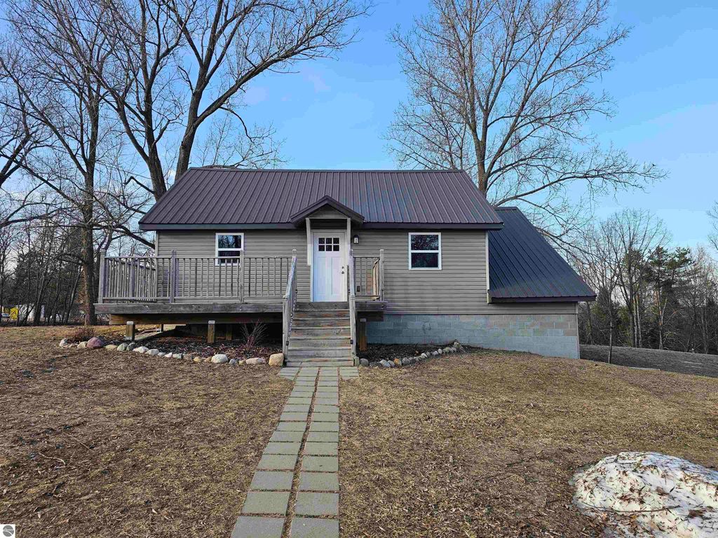 Charming home nestled on 4 lots atop a little hill with views of Crooked Lake. This 3-bedroom, 2-bath home has been remodeled inside and out. Home features a beautiful newer kitchen, family room, office, and all appliances are included. The walkout basement is finished, featuring a family room, laundry room, office, and full bathroom. Close to Crooked Lake, which has a new public beach, pickleball courts, playground, and boat launch. This home is also conveniently located between Lake City, Manton, and Cadillac. This is a must-see.