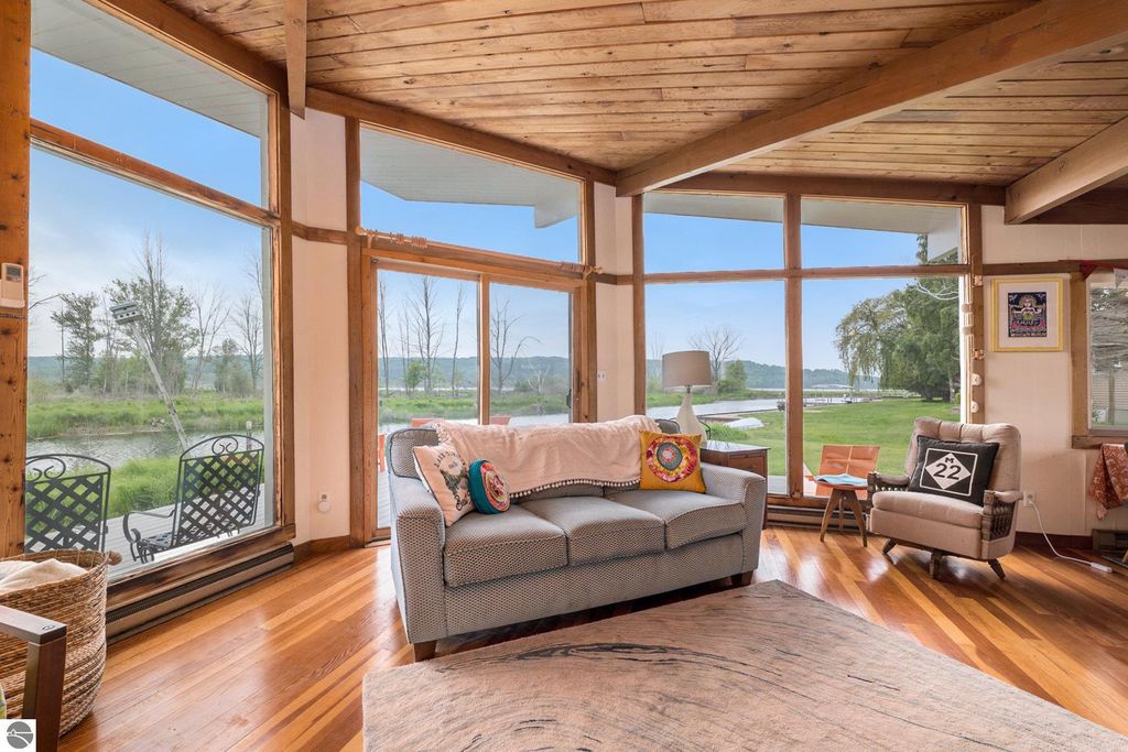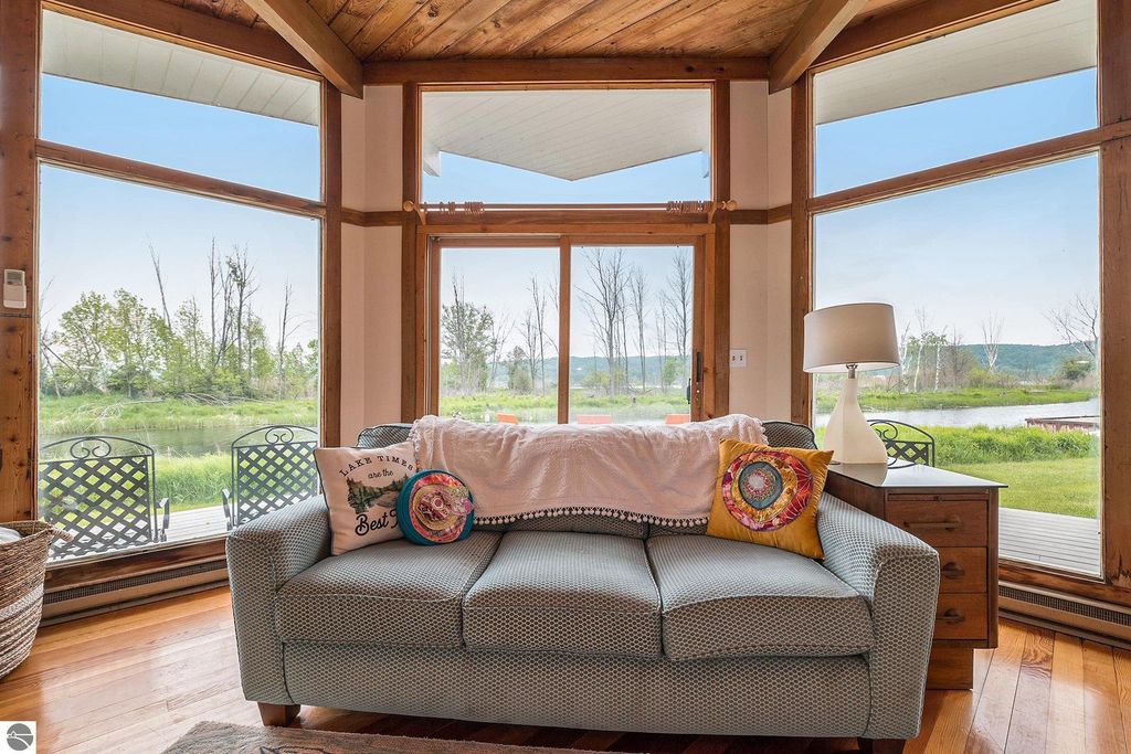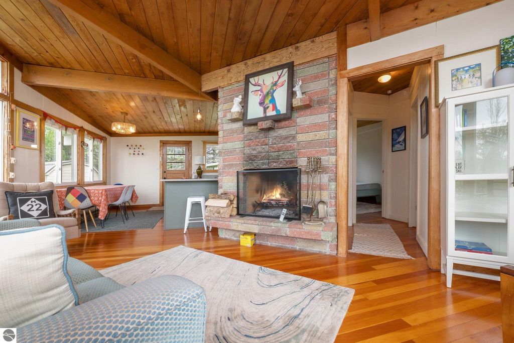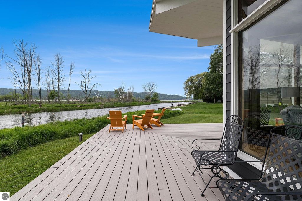Enjoy life on the water with approximately 103 feet of frontage on the Arcadia Lake canal and direct access to the blue-green waters of Lake Michigan. This inviting home captures both sunrise views toward the Arcadia Marsh and M-22 bridge and sunset views toward the Arcadia pier and Lake Michigan. Inside, you will find warm wood ceilings, expansive windows, and a bright open living space that brings the outdoors in. The updated kitchen, comfortable bedrooms, and spacious deck create the perfect setting for relaxing, entertaining, and enjoying Northern Michigan waterfront living. Option to install a permanent dock may exist. Ideally located near Camp Arcadia, Arcadia Marsh Nature Preserve, Arcadia Bluffs, Crystal Mountain, and world-class fishing, hiking, and four-season recreation, this is a great opportunity to enjoy the Arcadia lifestyle.