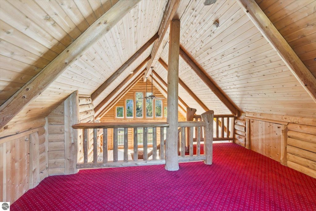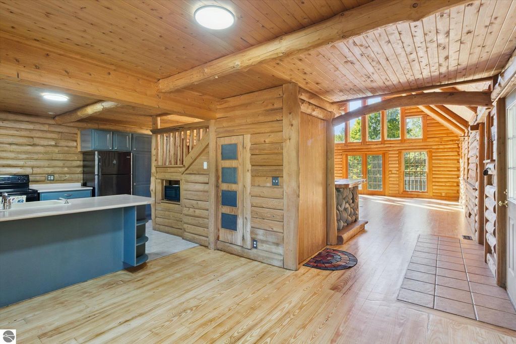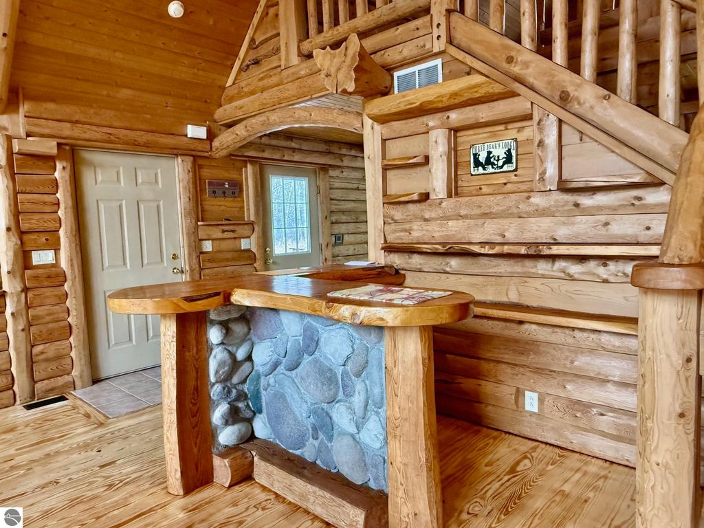 Secluded waterfront setting for this stunning 2 bedroom, 2 bath log home built in 2003. Property offers timeless warmth and character in a serene natural setting. Inside, you'll be welcomed by rich wood accents and rustic charm throughout, capturing the true essence of a classic ''Up North'' retreat. Home sits on 20.10 acres, the property features private Clam River frontage, adding both scenic beauty and peaceful ambiance to the landscape. Step outside onto one of the spacious decks"”perfect for relaxing, entertaining, or simply enjoying the ever-changing views and abundant wildlife. Each season brings its own breathtaking backdrop. A pole barn is included, providing ample space for storing recreational equipment, tools, or outdoor gear. Whether you're seeking a quiet getaway, a year-round residence, or a prime hunting location, this property offers a rare combination of privacy, natural beauty, and endless possibilities. Fenced yard and attached garage. Fireplace is currently not operational.