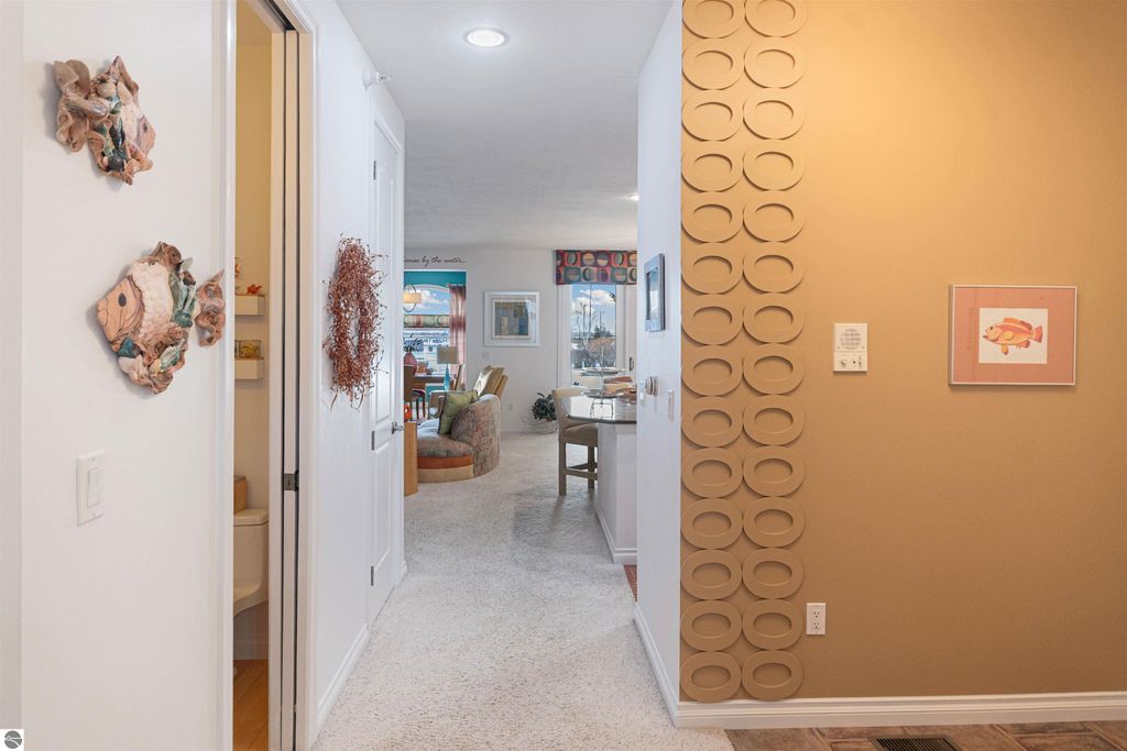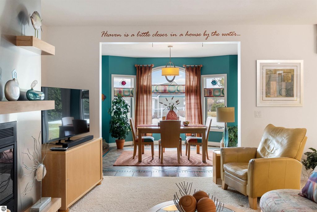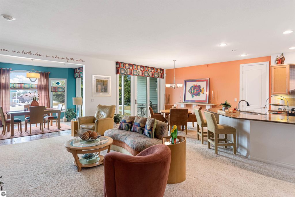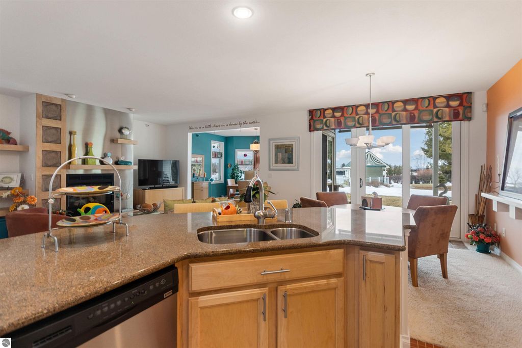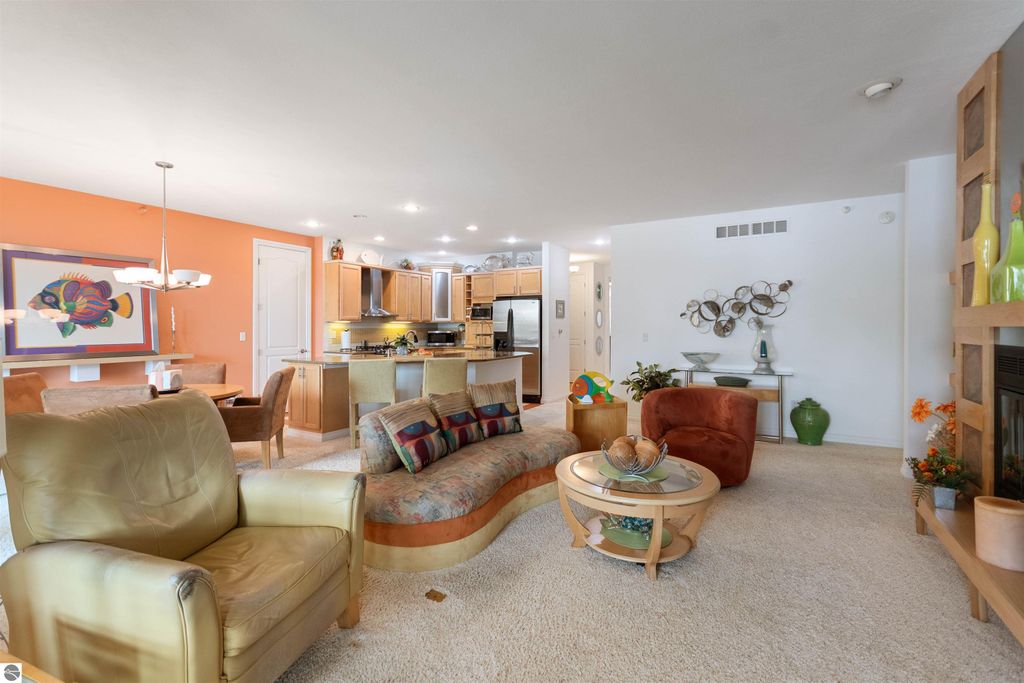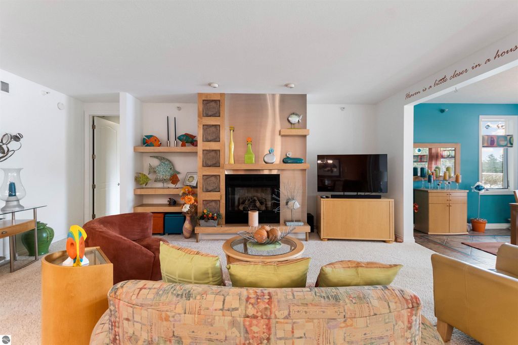 Fabulous Elk River waterfront condo living with beautifully appointed first floor unit located in the quaint waterside Village of Elk Rapids! This immaculate, turn-key condominium features a wonderful open floor plan with tasteful décor and thoughtful upgrades throughout. The inviting living room showcases a custom-designed fireplace, creating a warm and welcoming focal point for the space. The kitchen is equipped with Kenmore Elite appliances and a customized counter-height island that offers both functionality and comfortable seating for gathering and entertaining. The spacious primary bedroom offers peaceful water views along with direct access to the private patio, a large walk-in closet, and a spacious private bath. With its thoughtful layout and first-floor convenience, this home offers comfortable and easy waterfront living. Just steps from the in-ground pool and your private boat slip with direct access to Elk Lake, Torch Lake, and the entire Chain of Lakes, making boating, kayaking, and paddleboarding effortless. Located near the charming shops, restaurants, and beaches of downtown Elk Rapids, this is a wonderful opportunity to enjoy Northern Michigan waterfront living. Click on virtual tour link for an incredibly realistic view of the interior!