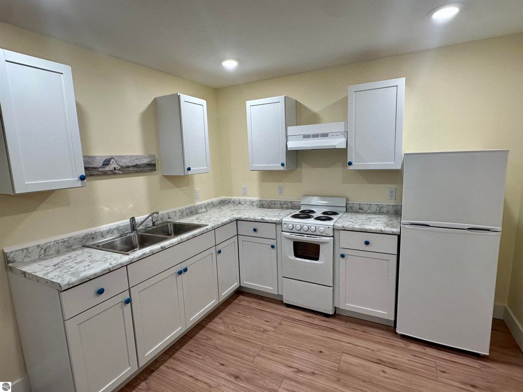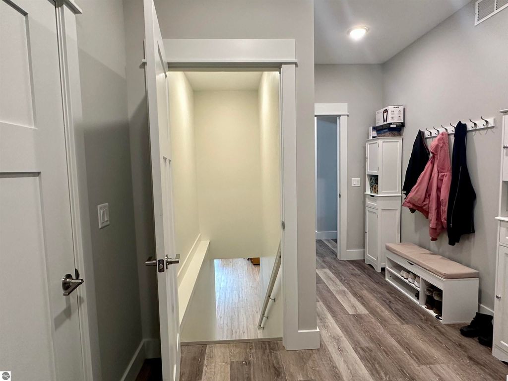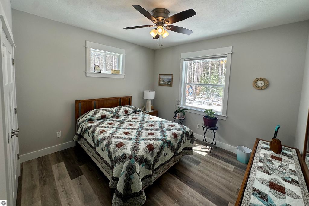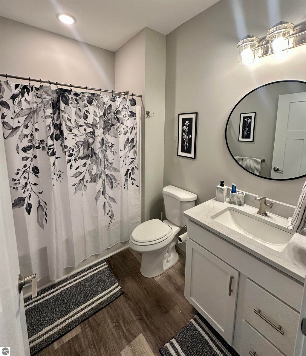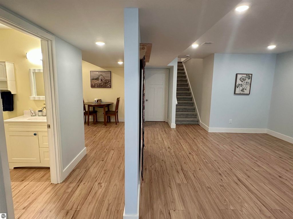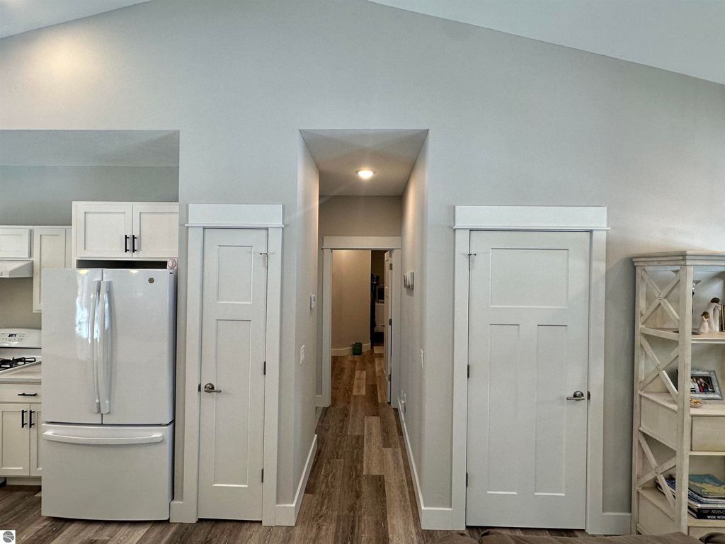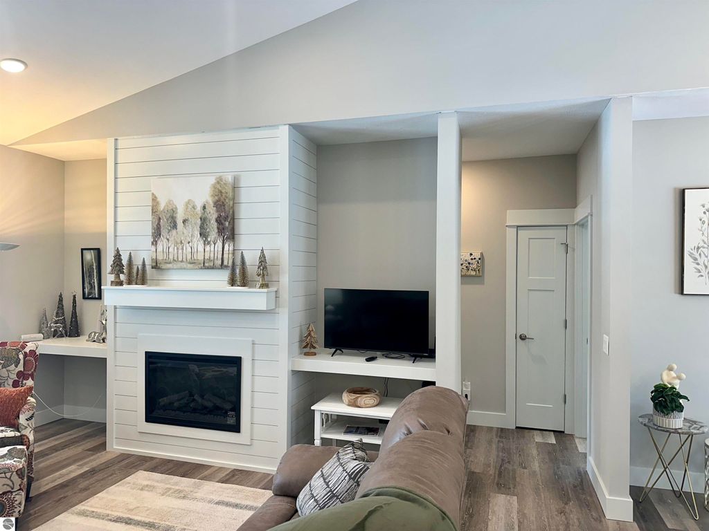 Stunning newer construction ranch built in 2023 featuring a fully finished lower level with full in-law suite completed in 2025, offering four bedrooms, three bathrooms, and just under 3,000 finished square feet of thoughtfully designed living space. The main floor showcases an open-concept layout with vaulted ceilings and abundant natural light, highlighted by a quartz kitchen and large island providing additional storage and gathering space. The private primary suite is situated on its own side of the home and features tray ceilings, a spacious walk-in closet, and a luxurious bathroom with double vanity and a tiled walk-in shower. Two additional bedrooms, a full bathroom, and convenient main-floor laundry complete the main level. The finished lower level expands the home with a massive family room flowing into a full second kitchen, along with a spacious fourth bedroom with walk-in closet and an oversized bathroom, creating ideal space for extended guests or multi-generational living. Situated on just under an acre and surrounded by mature hardwoods in a newer neighborhood with a shared path leading to a natural area, the property also features natural gas, a finished attached three-car garage, and a 12' x 20' composite deck with awning. Located just minutes from the Gilbert Park boat launch and only 20 minutes from Traverse City.