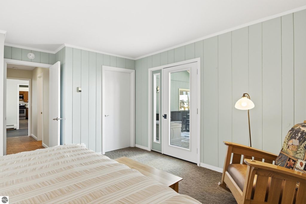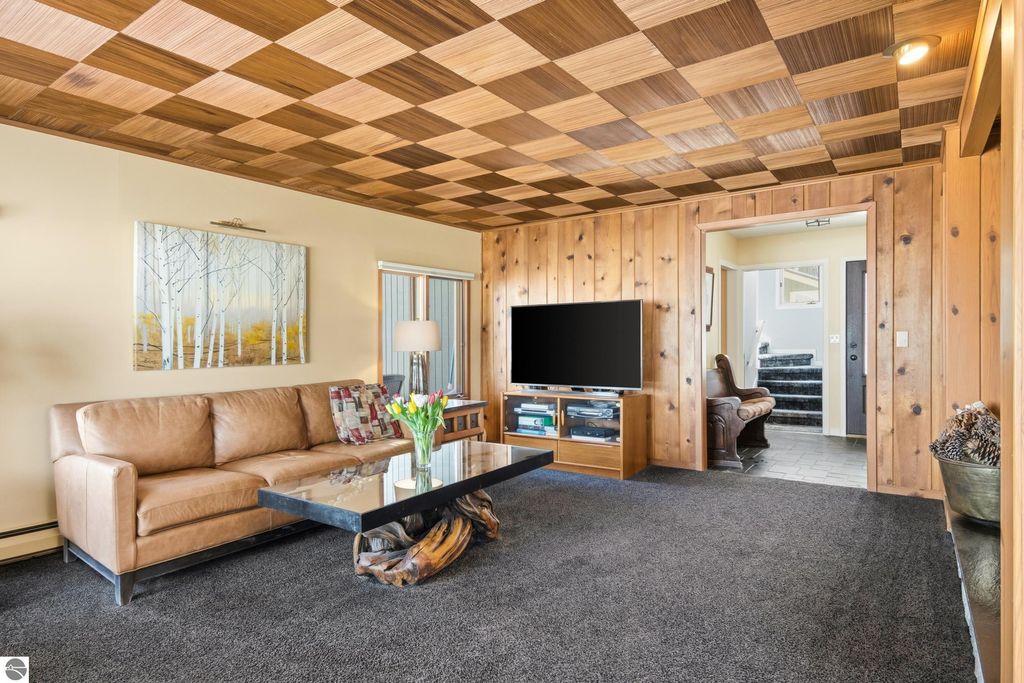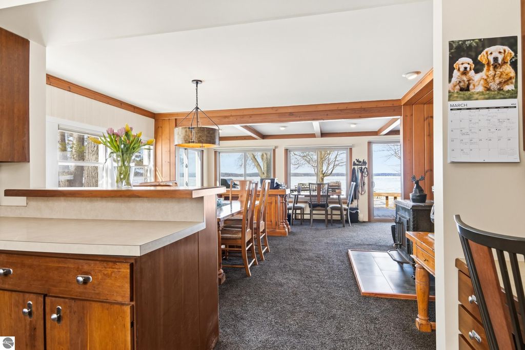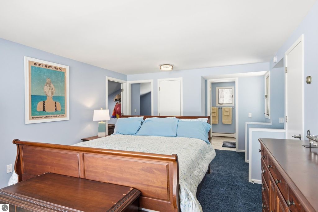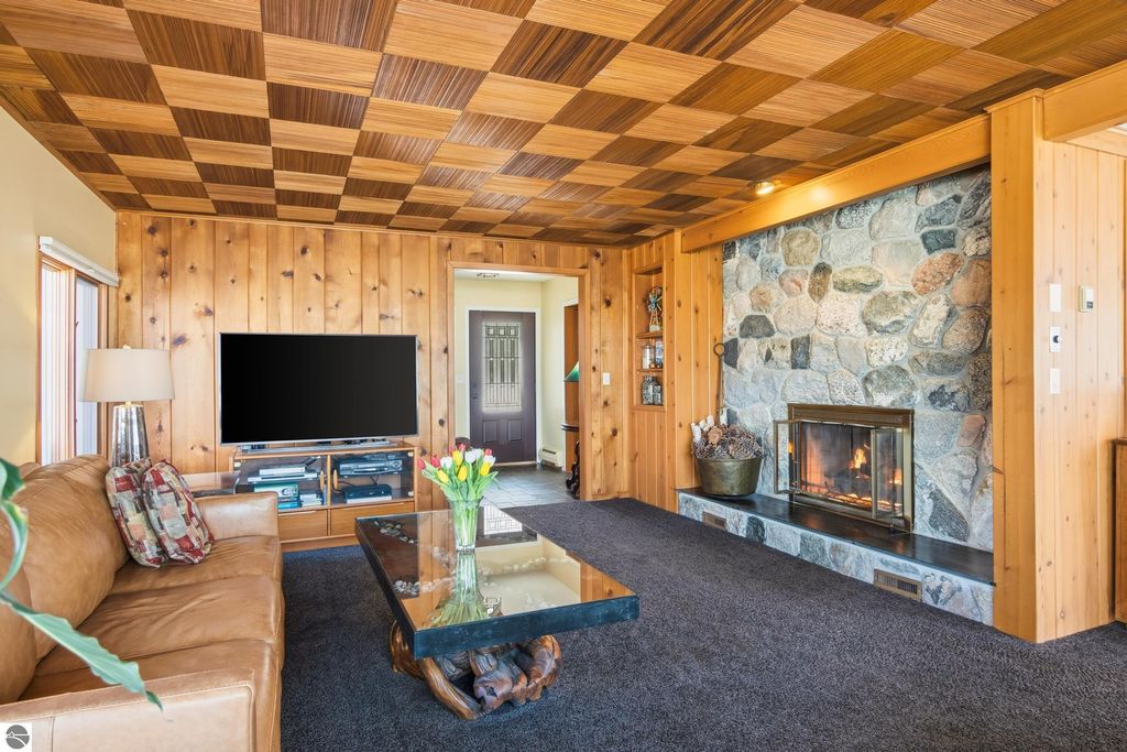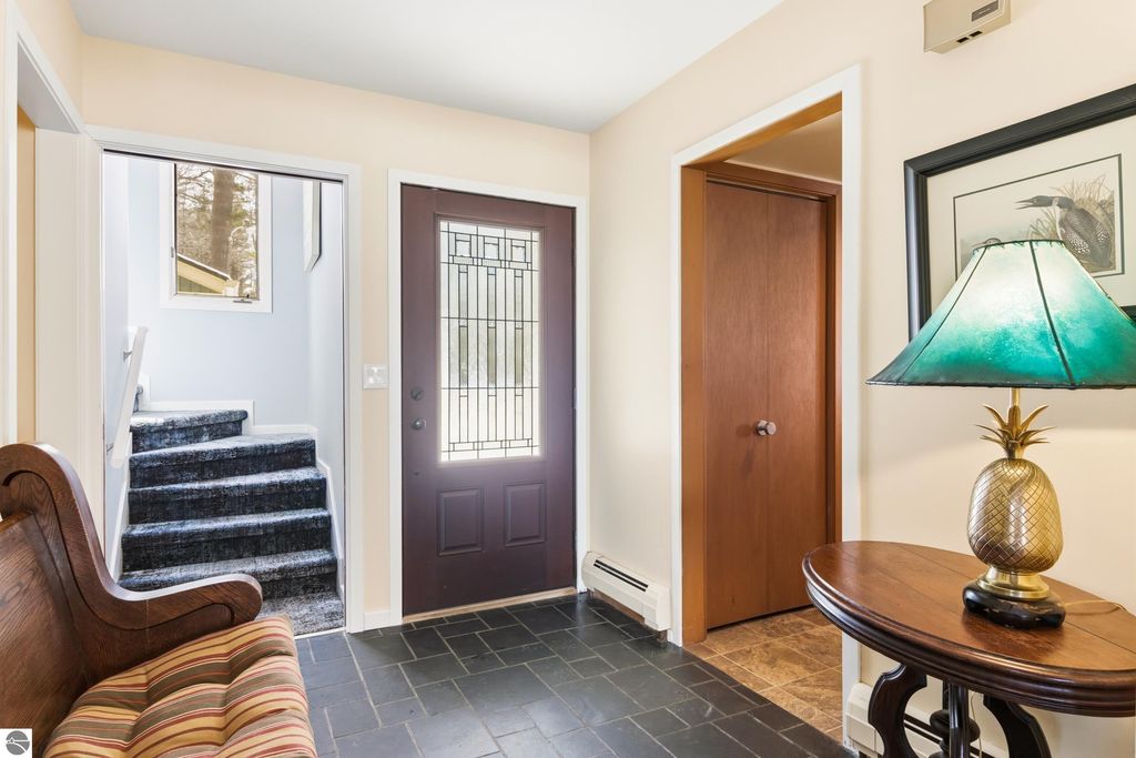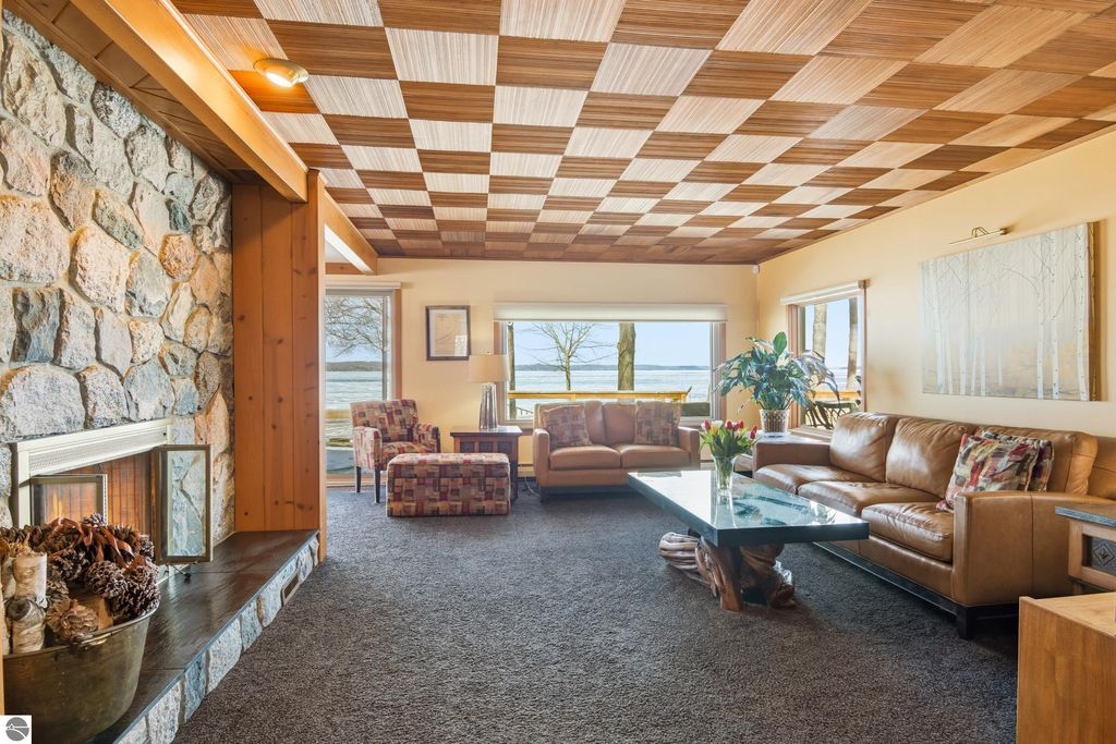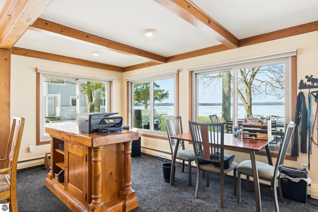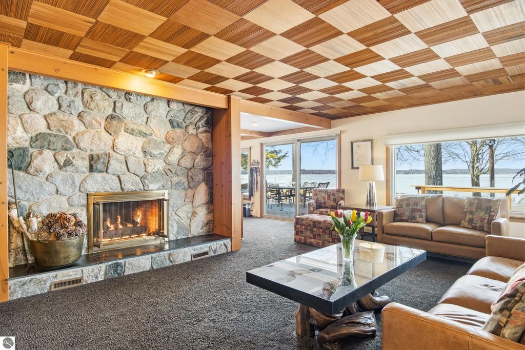 ONE OF THE BEST BEACHES ON TORCH LAKE with 103' of sandy frontage just came on the market! As you enter the spacious foyer you will be impressed with the lake views. The inviting living room is enhanced by a gorgeous stone fireplace, picturesque windows facing your private frontage and unique cedar ceiling. The kitchen features efficient use of space, plentiful cabinetry and large pantry. The dining area offers plenty of natural light and a woodstove with brick surround. The spacious main floor primary bedroom with access to the deck and an ensuite bath. A slider leads you to the large deck and the hot tub will be your place to relax and rejuvenate while listening to the waves lap the shoreline. Upstairs discover a spacious bedroom suite with bath, office/den and lots of storage. Your family and friends will appreciate having their own space in the two bedroom, two full baths separate guest house. The large wrap around deck will be the gathering place where you can enjoy expansive lake views, dining alfresco and end your evening admiring the gorgeous sunset views. Other highlights include a main floor laundry with abundant cabinetry; a steam shower; a workout room; peace of mind with a main floor Generac Generator; underground sprinklers will keep your lawn lush and green; and an oversized 2-car attached garage. The nicely landscaped and wooded setting plus private shared acreage across the street for added privacy and seclusion. Get ready to experience the "lake life" where the turquoise blue Torch Lake water will be your playground. When you are ready to head out on the lake you will find waterfront dining; waterside communities to explore; boating, fishing; sailing and so much more. Four seasons of fun in Northern Michigan are waiting to welcome you with warm smiles and open arms.
