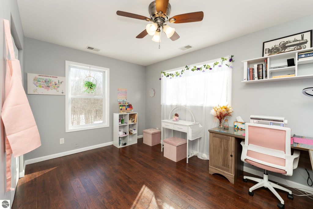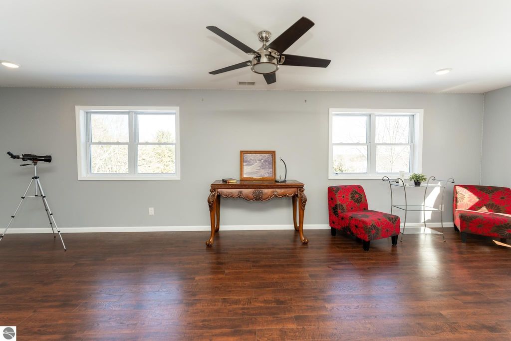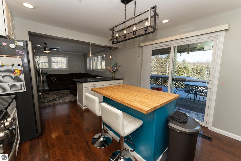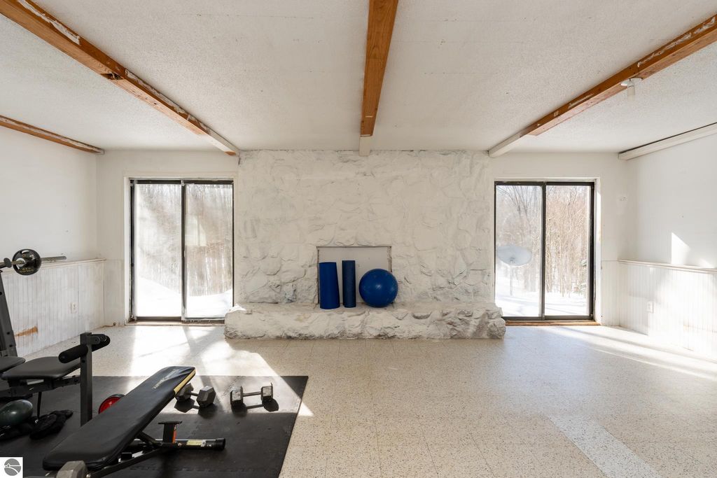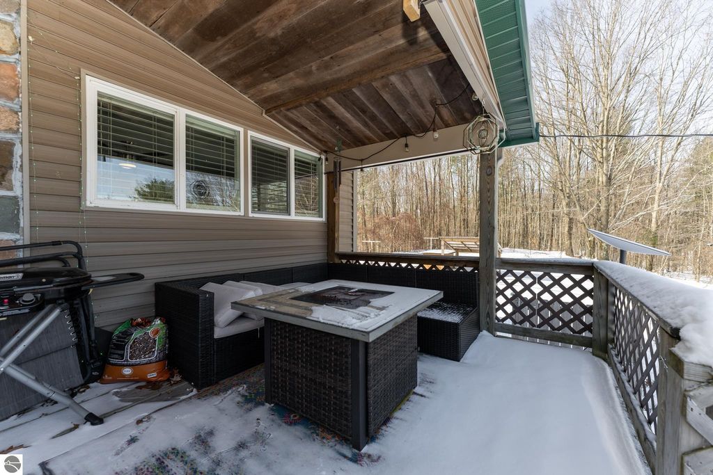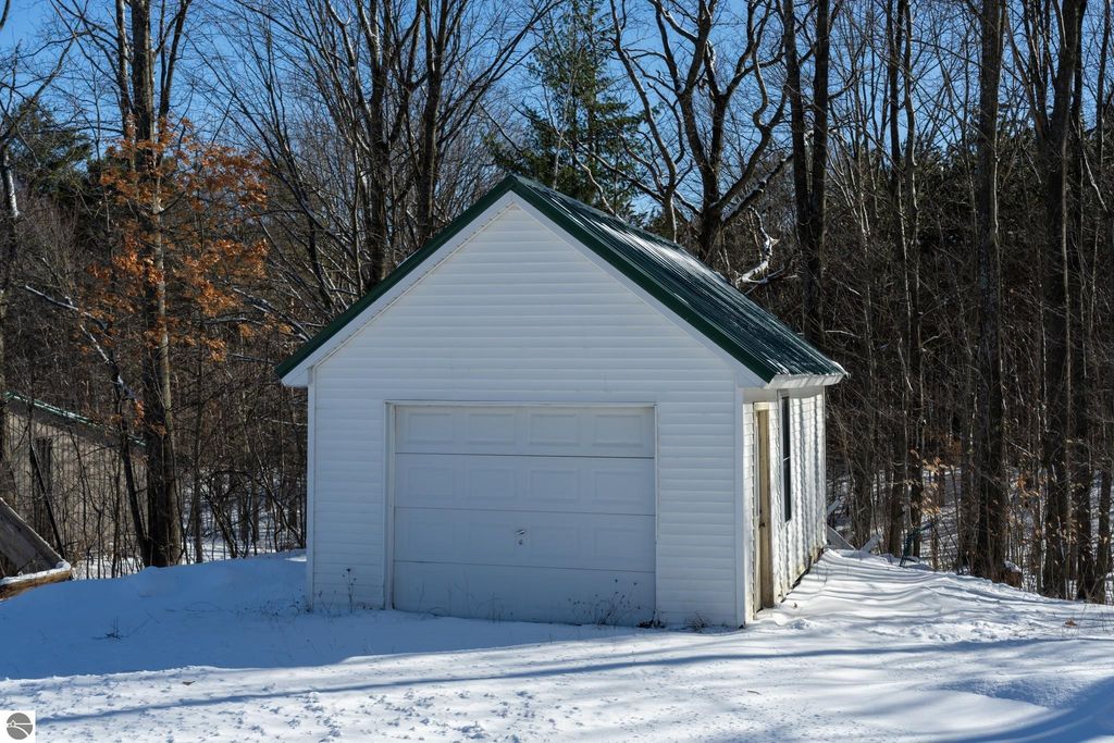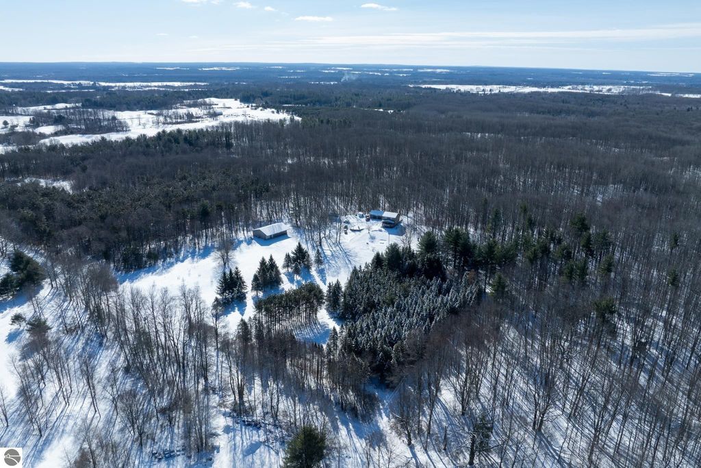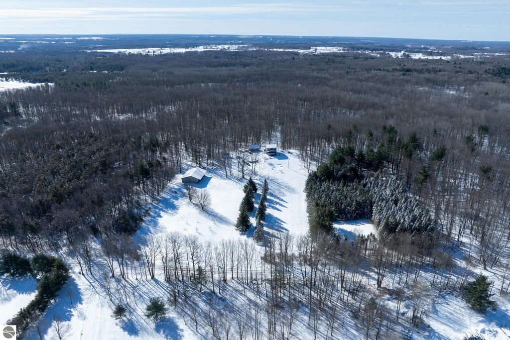 20 wooded acres. Fully renovated home. 64x40 heated pole building. This renovated 3-bedroom, 3-bath home offers over 2,600 total sq ft and sits on 20 beautiful wooded acres just minutes from Evart and US-10 , offering privacy, space and a property that truly has it all. The home was fully renovated in 2018, including plumbing, electrical, mechanicals, insulation, windows, siding, metal roof, appliances, on-demand hot water, front loading washer and dryer, new well, and a standby generator for peace of mind. The kitchen features quartz countertops, GE Profile Black Slate appliances, a butcher block top island, and direct access to the large front deck, perfect for morning coffee or evening gatherings. The main floor also includes a living room with electric fireplace insert, primary bedroom, a full tile bathroom, and a spacious 7x12 walk-in closet. Upstairs you'll find two additional bedrooms, a second full bath, and a large family room. The walkout lower daylight level offers nearly 1,000 sq ft ready to finish space, a third bathroom, and a wood-burning fireplace with two sliders leading to the expansive rear deck, ideal for entertaining or relaxing while watching wildlife in your backyard. Outside, the property continues to impress with an insulated 2½-car detached garage with bar and workbench and a massive 64x40 pole building featuring spray foam insulation, steel interior and exterior, two 200-amp service panels, forced-air heating and cooling, half bath, water, drain field, and 10-ft overhang with concrete approach. With room to hunt, space for a workshop, and even fruit trees including apples, peaches, and pears, this property offers the opportunity to enjoy country living while still being close to town. If you've been searching for a property with acreage to hunt, a shop, and a move-in ready home, this one is worth seeing in person.