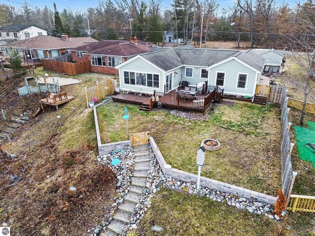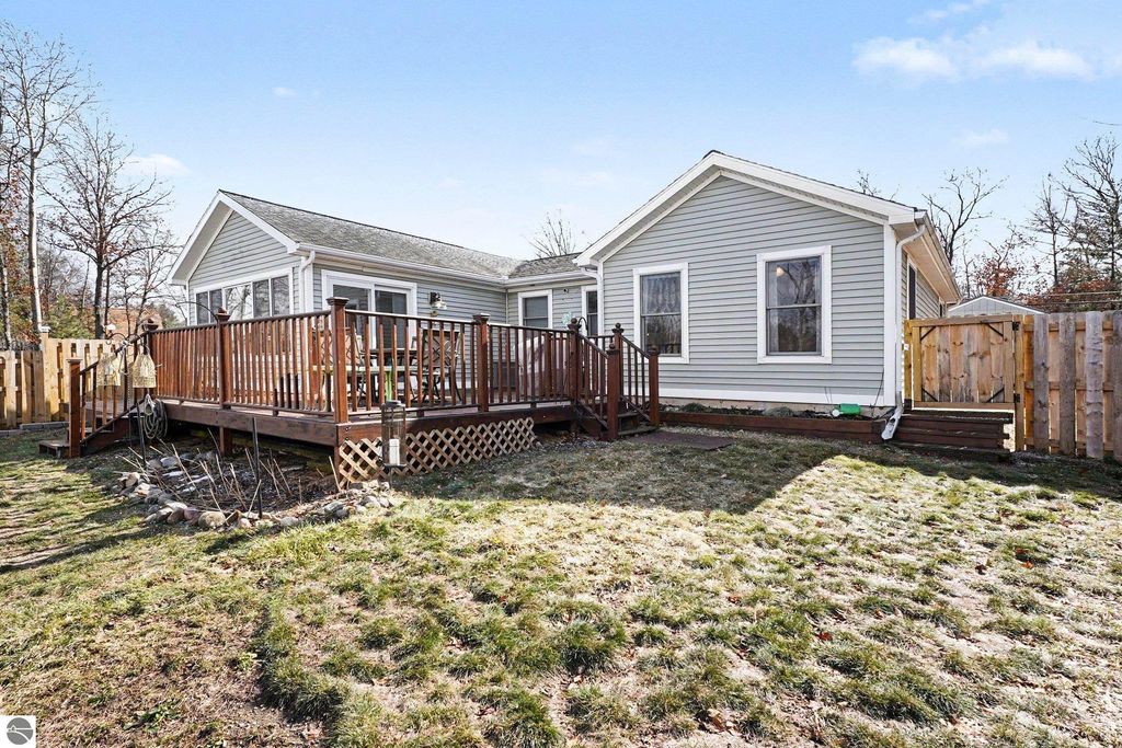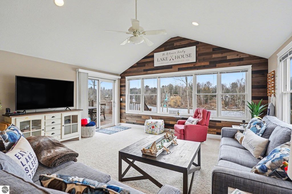 Don't miss out on this beautiful waterfront home on Forest Lake! The home features a thoughtful floor plan with lake views from multiple rooms, a spacious living room with vaulted ceilings, a primary suite, and a main-floor laundry room. The open kitchen is equipped with an island, Corian counters, double Jenn-Air ovens, and a beverage cooler, while the dining area includes a wet bar and recessed lighted niches. The outdoor entertaining space is extended by a spacious deck and campfire area overlooking the lake. In 2002, the home was stripped down to 4 walls, an addition was made, and new plumbing, electrical, and HVAC systems were installed. Updates within the last 6 years include a steel seawall, retaining walls, a dock, a 10x16 shed, and more. Some of the furniture is available for sale to the homebuyer. Forest Lake community amenities include a clubhouse, beach, pavilion, campground, parks, and security. Plus, state land and the Rifle River are nearby.