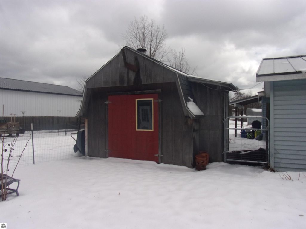 Step into country comfort with this cozy 2 bedroom 1 1/2 bathroom home on 1.55 acres bursting with life; mature apple, cherry, and pear trees and a grapevine that promises a backyard harvest. Gorgeous laminate floors installed in 2023, along with a sturdy new metal roof and efficient furnace. The kitchen shines with updated appliances (new refrigerator in 2022 and dishwasher in 2026) and a new septic field and tank were put in in 2024. The garage is cleverly split, half workshop and half vehicle bay, along with a chicken coop right out back with sheds for all your garden tools! Fenced along the rear boarder for privacy, this move-in ready home blends rustic charm with modern updates!!