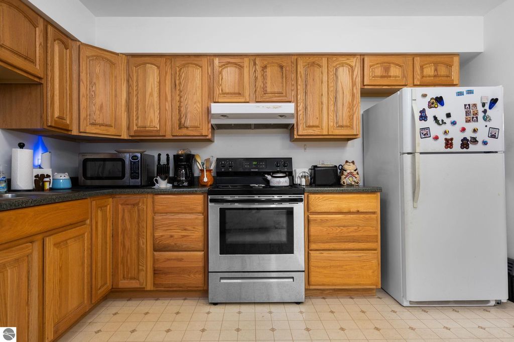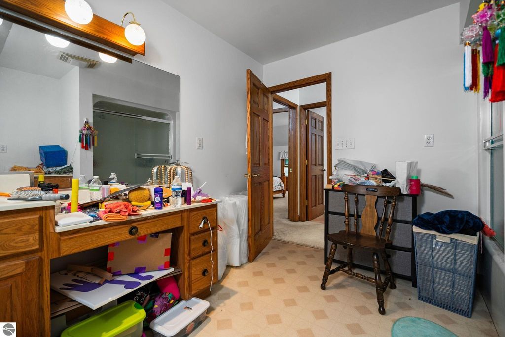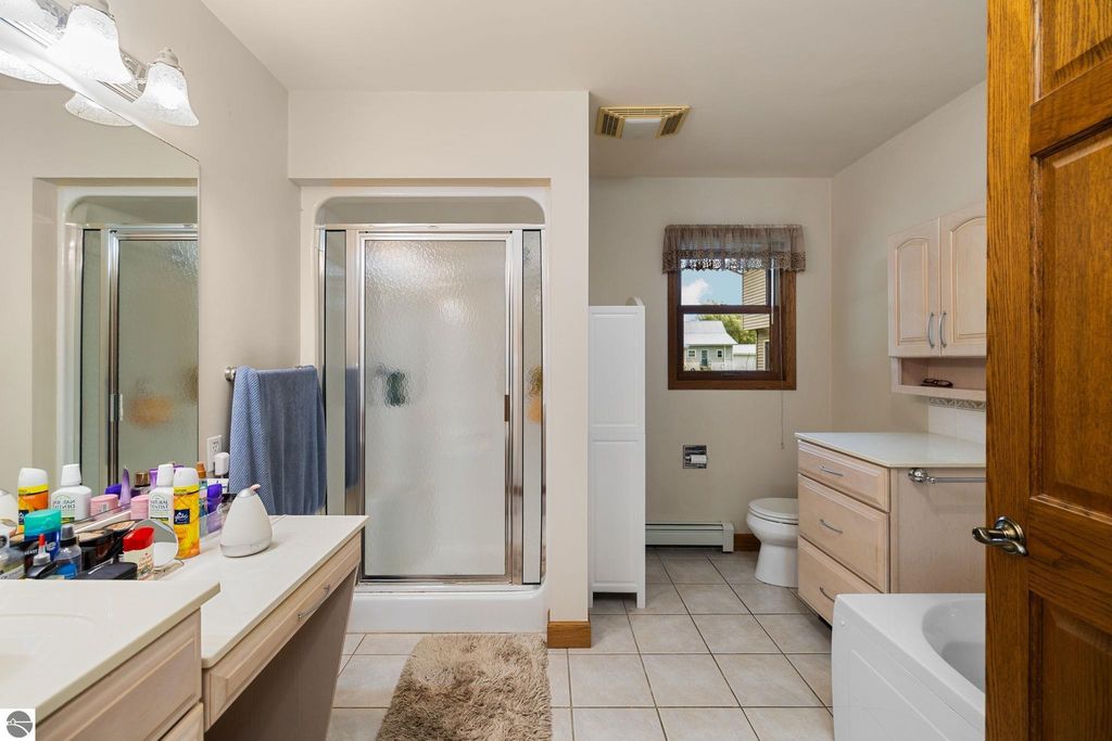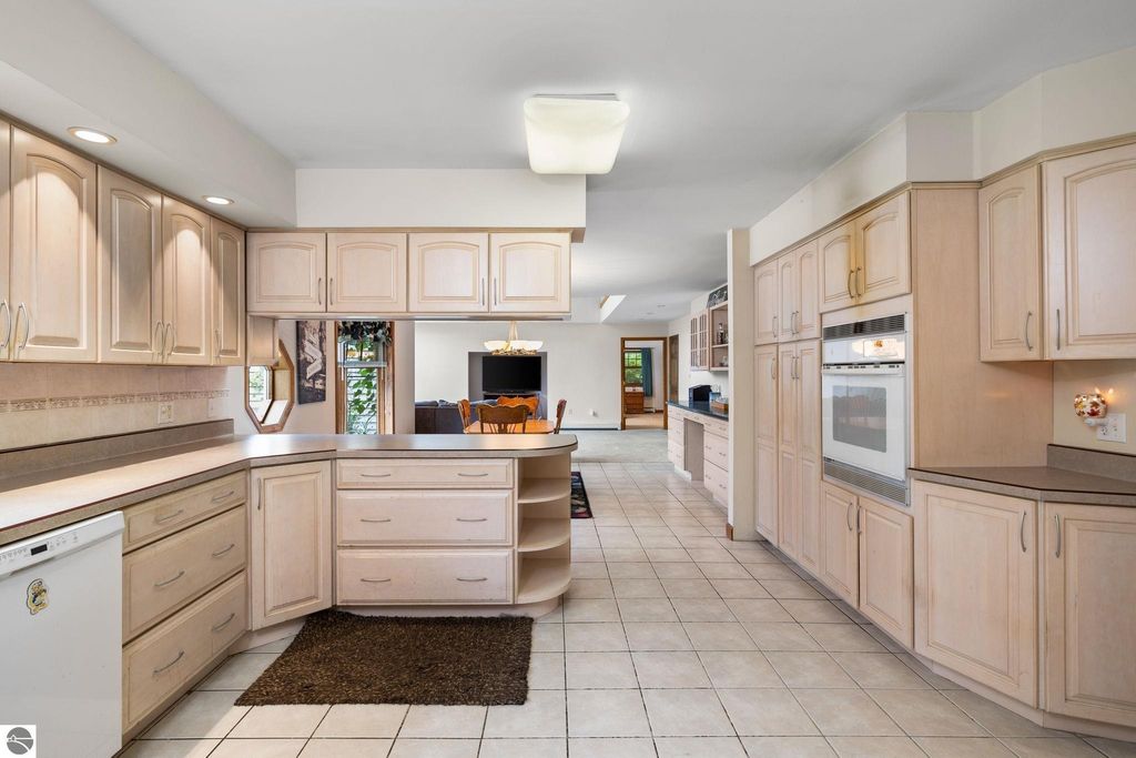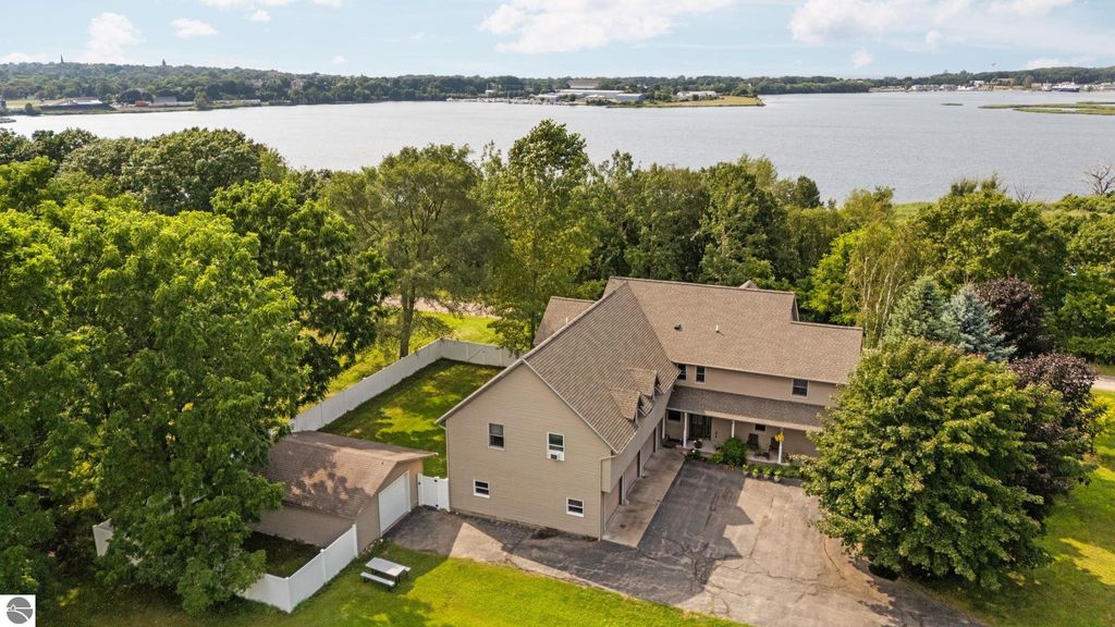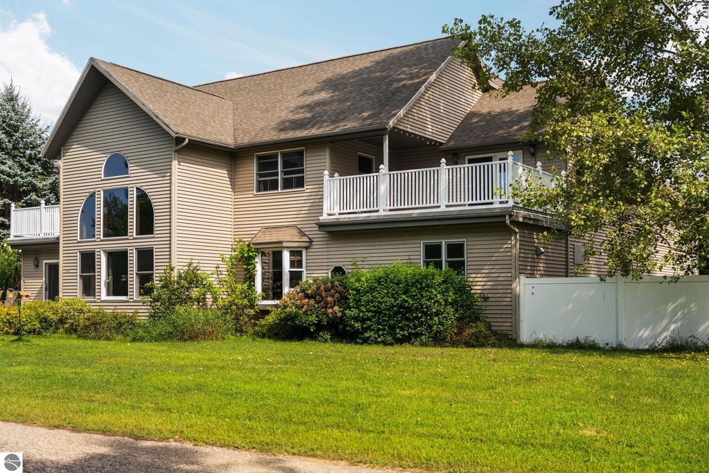 Welcome to your dream home. This stunning residence offers the perfect blend of comfort, style and functionality. Featuring 3 generously sized bedrooms and 3 bathrooms. Each bedroom in Main house has an attached bathroom to bedroom. Primary Bedroom has walk-in closet and full bath with separate tub and shower. Bedroom on Upper level has its own Private Balcony. Gourmet kitchen is a chef's delight with built in oven, and counter space for all of your culinary creativity. Coffee bar area, dining area with bay window over looking front yard. Spacious area flow seamlessly to make entertaining a breeze. This home is ideal for both the everyday living, entertaining guests, Air BNB, or rental possibilities. This home has a Mother-in-Law Suite with entrances from the garage or the 2nd story hallway, an Oak Kitchen, formal living room with private balcony, 2 full baths and laundry room, large bedrooms, and a very large 2nd living space. Home has a full basement, with large entertaining area with 135" projector screen, projector and surround sound for all your movie desires, pool table and poker table. There is a bonus room in basement with egress window they have used for guests. This home has solid wood doors, and ample storage space throughout the home. Home also boasts a 3 car attached heated garage, 20x24 detached garage, large fenced in area off back for privacy or pets, mature trees, asphalt driveway, underground sprinkler system, wildlife galore, and all this and it's even sitting overlooking Manistee Lake. Trees have grown across the street where you can't see the lake only in the Fall, Winter and early Spring months. Brand new roof in July 2025 with transferable warranty!!!