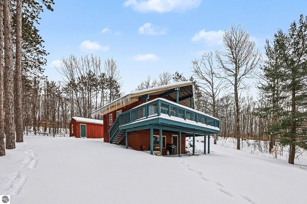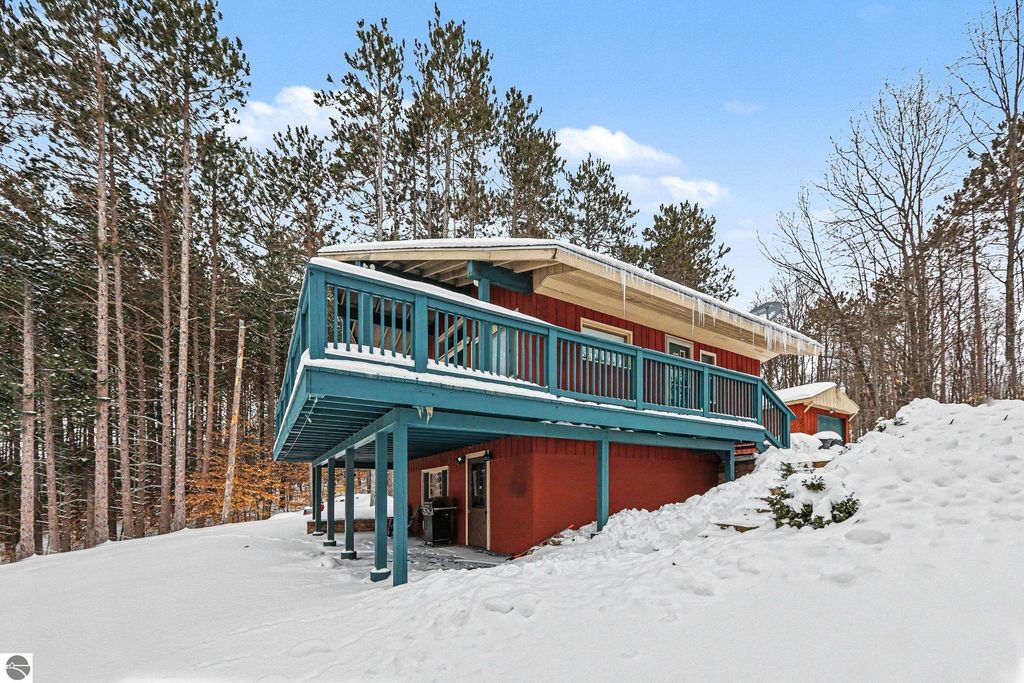 Welcome to The Red Cabin Retreat! A peaceful Northern Michigan getaway set on nearly 2 private, wooded acres. This charming 3 bedroom, 2 bath home offers the perfect blend of seclusion, comfort, and year-round recreation. Inside, you'll find inviting living spaces with a spacious living room, cozy seating, smart TVs, and a fully equipped kitchen ideal for gathering. Flexible sleeping arrangements, including bunk rooms and a private primary suite, make it perfect for hosting family, friends, or guests. Enjoy the outdoors from the expansive upper deck with serene woodland views or unwind around the fire pit on the walkout patio. Conveniently located just minutes from Schuss Mountain, Shanty Creek Resort's championship golf courses, and the pristine waters of Torch Lake and Lake Bellaire, this property offers four-season appeal with skiing, golfing, boating, and trails nearby. Ideal as a primary home, vacation retreat, or short-term rental investment. The Red Cabin Retreat delivers the ultimate Up North lifestyle.