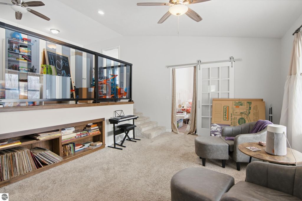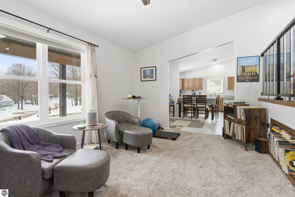 There's something about this setting that just feels different"”a bit more simple and relaxed. At the end of a quiet cul-de-sac sits this custom-built home designed for space, comfort, and everyday living. Step inside and you're greeted by an open, connected feel, highlighted by a unique upper-level living area overlooking the main floor. It adds just the right amount of character while keeping the home bright and functional. The kitchen is built to handle it all, with plenty of counter space and abundant cabinetry"”ready for everyday meals and entertaining. A main floor office gives you flexibility for work or hobbies, while the primary suite offers a comfortable retreat with a walk-in closet with built-in shelving and a private bath with a soaking tub and shower. Two additional bedrooms are connected by a Jack and Jill bathroom--a setup that just makes sense. The lower level is set up for real life, with a spacious entry from the garage and back door, half bath, laundry area, utility room, and finished den that can easily flex as a second living space, playroom, or home gym. Outside is where the recent improvements really shine. A newly poured concrete patio with stairs off the back door creates a natural spot to relax or host summer gatherings. You'll also find a spacious yard with a children's playscape, lavender beds, two large garden areas, and Concord grapevines that produced their first harvest this past summer. Additional features include two cold storage rooms with roll-up doors and a generator-ready setup for added peace of mind. When it comes to location, you get a balance of convenience and the outdoors"”just 30 minutes to the south side of Traverse City and 20 minutes to Cadillac, with hundreds of acres of nearby U.S. Forest land for hunting, exploring, and adventure. And just a short drive drive into Mesick for everyday essentials. It's a home that's been well cared for, improved in all the right ways, and ready for the next owner to make new memories.