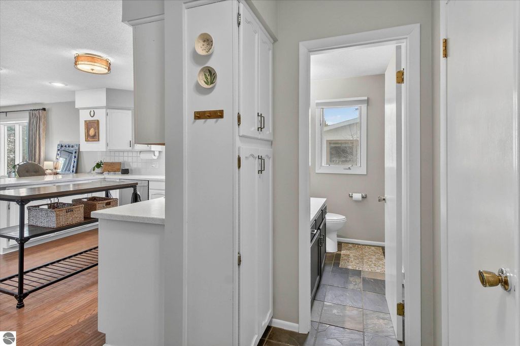 Welcome to this beautifully updated home in one of Alma's most desirable, family-friendly neighborhoods"”just steps from Alma College and the Fred Meijer Heartland Trail. Offering almost 3300 total finished square feet of thoughtfully designed living space, this home combines comfort, style, and everyday functionality. A private courtyard entry surrounded by lush hosta creates a warm and inviting first impression. Inside, you'll find a bright, open-concept layout with vaulted ceilings in the living room, abundant natural light, and beautiful hardwood floors throughout the main level. The gas fireplace adds a cozy focal point, perfect for relaxing or entertaining. The kitchen is well-appointed with newer stainless-steel appliances, including a double oven and gas stove, along with durable Corian solid surface countertops. Custom Hunter Douglas window treatments throughout the home add a refined, finished touch. The primary suite features a walk-in closet and a private bath, while additional bathrooms include slate tile finishes and a beautifully tiled walk-in shower. The partially finished basement offers flexible space with luxury vinyl tile. Enjoy outdoor living on the spacious deck overlooking a nicely sized yard, complete with a shed for additional storage. The exterior, deck, and shed have all been recently painted, enhancing curb appeal and peace of mind. Additional highlights include a newer furnace and water heater, central air conditioning, newer washer and dryer, gutter guards, and a large two-car garage with extra storage and a workbench. Move-in ready and meticulously maintained, this home offers the perfect balance of location, updates, and livable space! Don't miss your opportunity to make it yours.