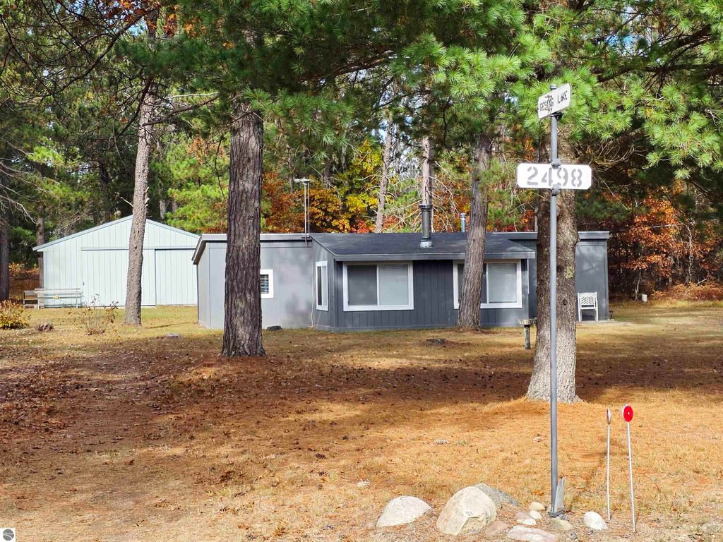 CABIN WITH 60.5 ACRES WITH STATE LAND ON 2 SIDES. POLE BARN 30 x 40 with electric. Hunters take delight in the trails throughout the property and 6-7 deer blinds, 1 tree stand and a ground blind Newly renovated cabin with fresh paint and new floor covering. 1 bedroom, 1 bath offers open kitchen, dining and living area plus a family room that can accomadate extra guest for sleeping quarters with a walkout patio door. L.P. Gas Payne Wall Furnace and a wood stove in the Family Room. Campfire pit in front yard.. 3 new vinyl windows in the Family Room. Seller has a new mini split they are planning on installing. Snowmobile and ATV trails closeby. Close to I-27 and I-75 for easy access and 10 minutes from Grayling downtown.