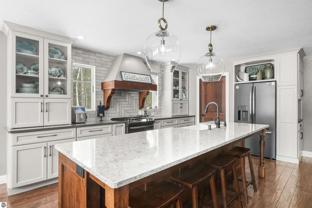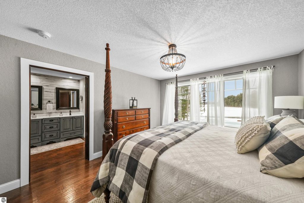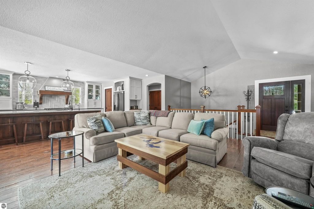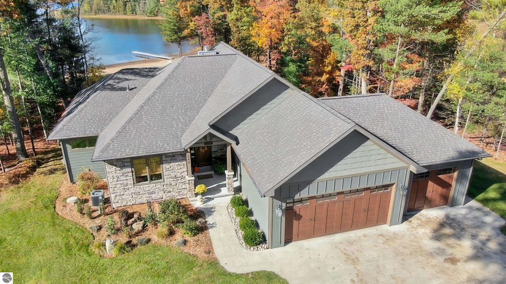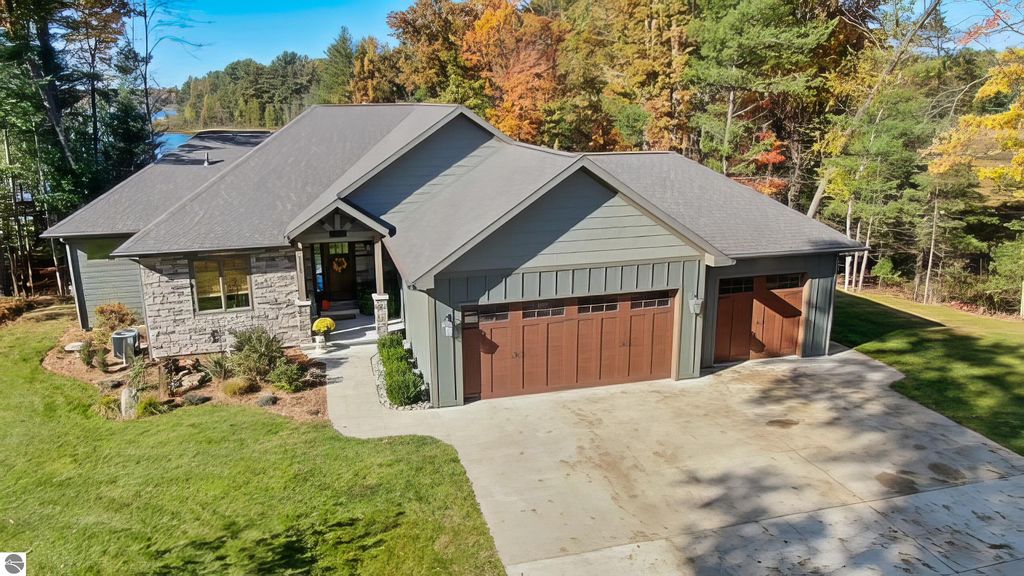 Pure Michigan at its most refined"”set along the crystal-clear shores of Lake Missaukee, this 3768 sq ft-2018 Custom-Built 5-bedroom, 3-bath Lakefront Estate offers 110 feet of private frontage with breathtaking, unobstructed panoramic views in a serene, secluded up-north setting. Meticulously crafted with exceptional attention to detail, the home showcases rich hickory hardwood flooring, quartz surfaces, and exquisite custom cabinetry by a skilled local cabinet maker"”seamlessly carried throughout the kitchen, foyer, and on-suite spa-inspired primary bath. Walls of 9-foot windows with casements fill the home with natural light while perfectly framing the lake. The open-concept living space, anchored by a gas fireplace, offers a refined yet inviting setting. The upper level serves as a private sanctuary, featuring a luxurious primary suite with its own laundry, along with a secondary bedroom or office and full bath. The lower-level functions as a private guest retreat"”offering three bedrooms, a full bath, full kitchen, spacious living area, separate laundry, and ample storage"”with walk-out access to the sandy shoreline. Built for comfort and efficiency, the home includes a high-efficiency 100,000 BTU 90% natural gas furnace with central air, heated concrete basement floors, on-demand hot water, water softener, and a 5-inch sewer drain. Flush ceilings and above-drywall venting enhance space and clean design. The ~1,000 sq ft insulated garage accommodates three vehicles plus recreational storage. A rare feature"”the north side of the property allows direct drive access to the water's edge, complete with power for a lift or shoreline lighting. **Important: This can be a full time residence or a short term rental. No restrictions on this property. Enjoy Lake Missaukee"”one of Michigan's 25 largest inland lakes"”known for its vibrant all-sports lifestyle. Just minutes from Lake City with easy boat or car access to dining and shopping.