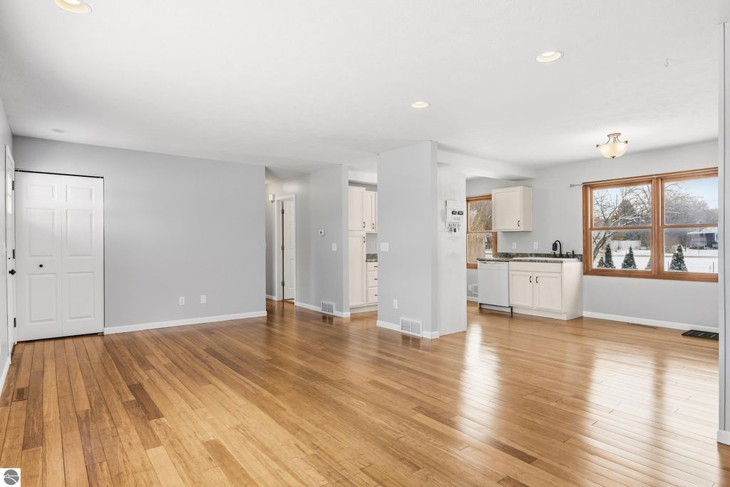 Located just 15 minutes from downtown Traverse City, with easy access to nearby beaches, parks, trails, and beautiful inland lakes, and only 8 miles from Interlochen Arts Academy. The open-concept main living area features beautiful hardwood floors throughout the living room, kitchen, and dining space, with plenty of windows allowing natural light to put in, creating a bright and welcoming atmosphere. Major updates within the last 10 years or less include the roof, furnace, central air, kitchen cabinets, appliances, and sink, hardwood flooring, bathroom vanity, and tub, offering buyers the benefit of many important updates already completed. Additional improvements include three new doors (front door and both garage entry doors), an added egress window to the larger basement bedroom, and a septic riser for easier maintenance. Outside, enjoy a great-sized backyard perfect for kids and fur babies to run and play. With its great location, numerous updates, and bright open layout- this home is ready for its next owner. Schedule your showing today!
