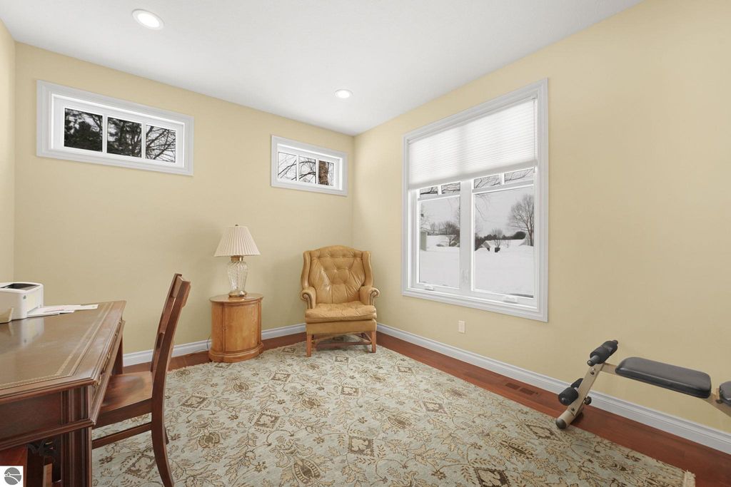 A rare opportunity to own a beautifully maintained condo in the private setting of Wildwood Meadows on Old Mission Peninsula. Off of Center Road next to the 62-acre Pelizzari Natural preserve with well-marked trails for hiking, snowshoeing, and jogging, plus benches to relax and enjoy the peaceful setting. This well appointed 3-bedroom, 3-bath home offers an ideal blend of comfort and location. Filled with natural light, the main level features a spacious master suite with double vanity, walk-in shower and generous storage. A second main floor bedroom is currently a home office but offers the flexibility to be a good space for guests as well. The lower level has bright lights with lots of windows with views of beautiful landscaping. Another bedroom and bath plus a huge family room for entertaining and abundant storage. Enjoy the peaceful living in this beautiful development while just being minutes from downtown Traverse City and waterfront.