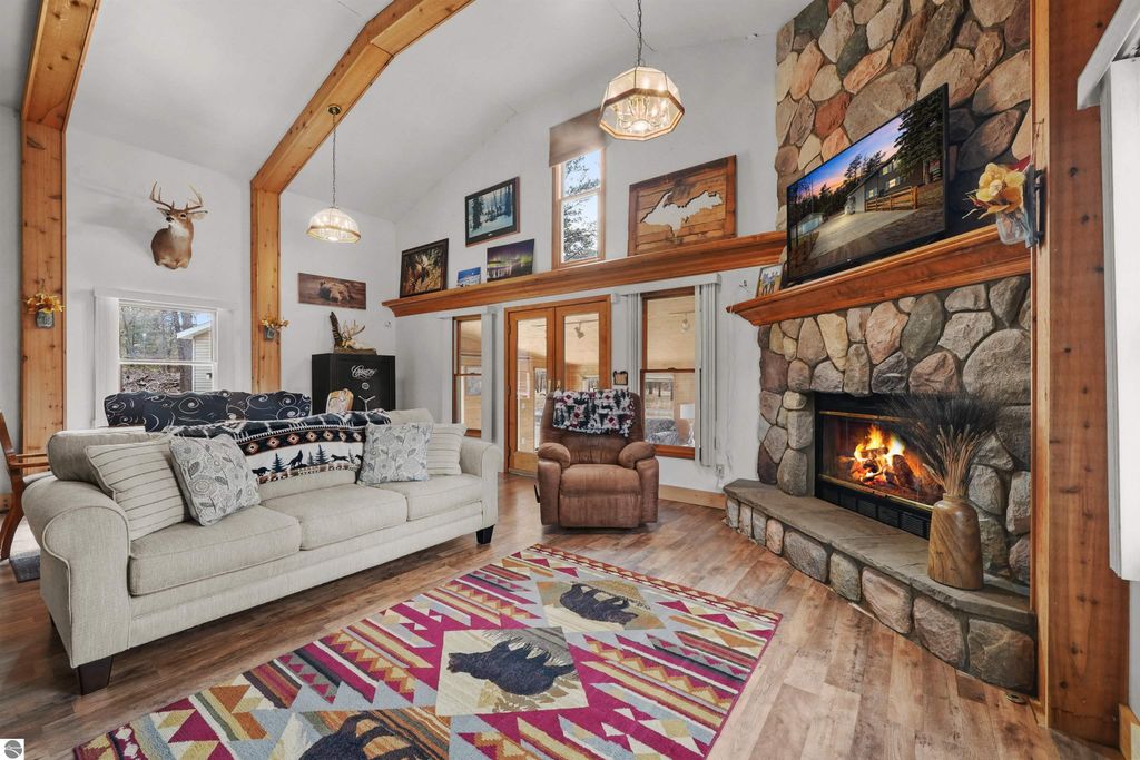 Tucked away on a private road in a peaceful country setting, this charming 2-bedroom, 1-bath home sits on nearly 3 acres and offers the perfect Up North escape. Inside, you'll find a cozy living room with a fieldstone gas fireplace and a 4-season knotty pine room"”perfect for enjoying the surroundings year-round. The home also features central air and an on-demand generator for added comfort and peace of mind. Outside, a 24x24 insulated garage heated with a pellet stove provides great year-round workspace or storage. Outdoor enthusiasts will love the easy access to ORV and snowmobile trails, along with thousands of acres of state land just across the road for endless recreation.