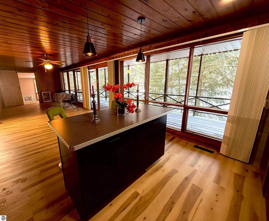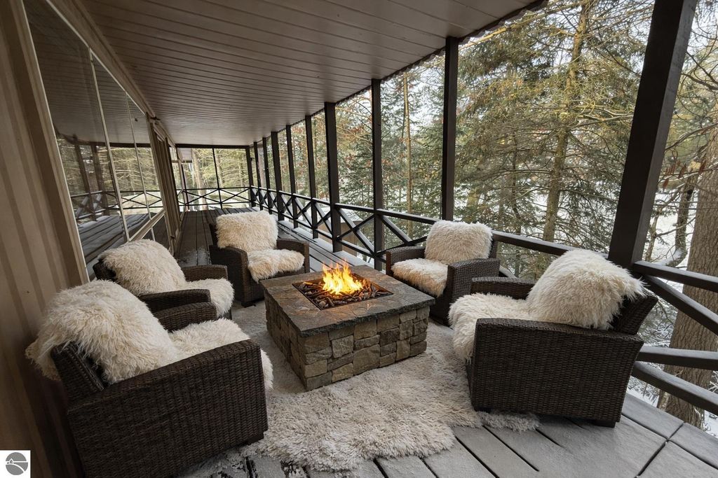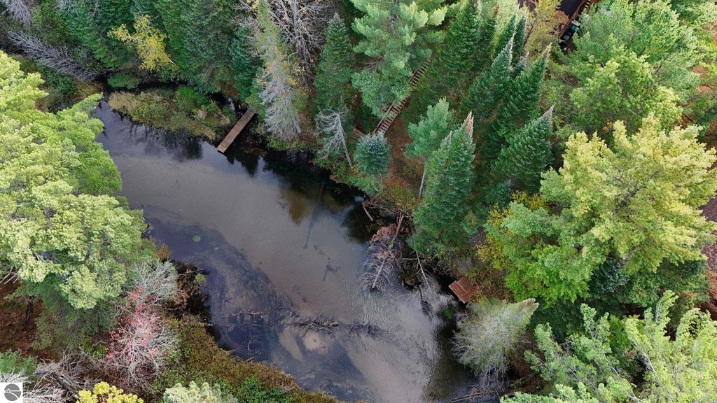 Direct-private frontage and turnkey home, thoughtfully improved, ready for you to enjoy the best fly fishing river around! Come see and feel the magic for yourself. Set on a "river-runs-through-it" backdrop, this rare offering places you directly above the North Manistee River on a full-length covered deck. Views off your riverfront covered porch are nothing but nature as it is state land across from you. Known statewide for its blue-ribbon fly fishing, clear cold waters, and lazy tubing stretches, the river winds through towering trees. Kayaking this river rivals the Platte, Crystal or AuSable, with so much state land, you feel you are on your own. Ideally located: close enough to enjoy Grayling's new hotspot status with exceptional restaurants, artisan shops and cultural energy that rival Glen Arbor! Access to world-class snowmobile and ATV trails adds to the four-season lifestyle. Recent updates include: new roof, new septic, freshly painted exterior preserving the classic cabin aesthetic, new kitchen, new bathrooms, private primary suite, enclosed storage under the deck perfect for summer toys, three aluminum canoes, all-new interior flooring, and main-floor living throughout. Just move in and make it your own, enjoying the fun right away!