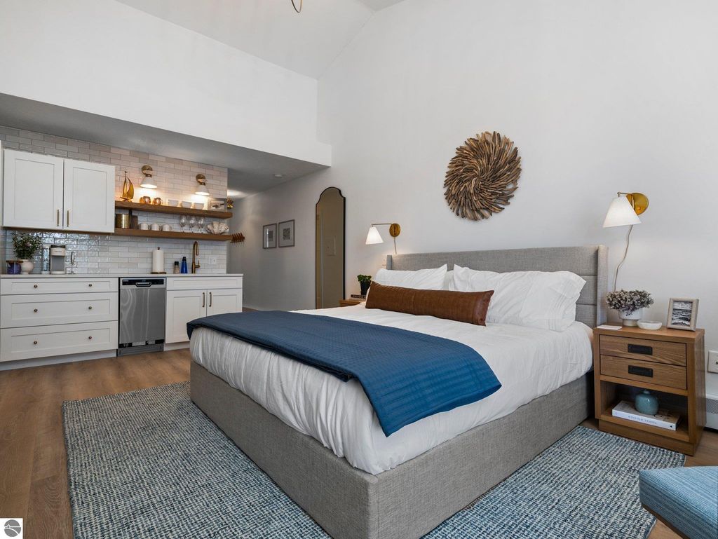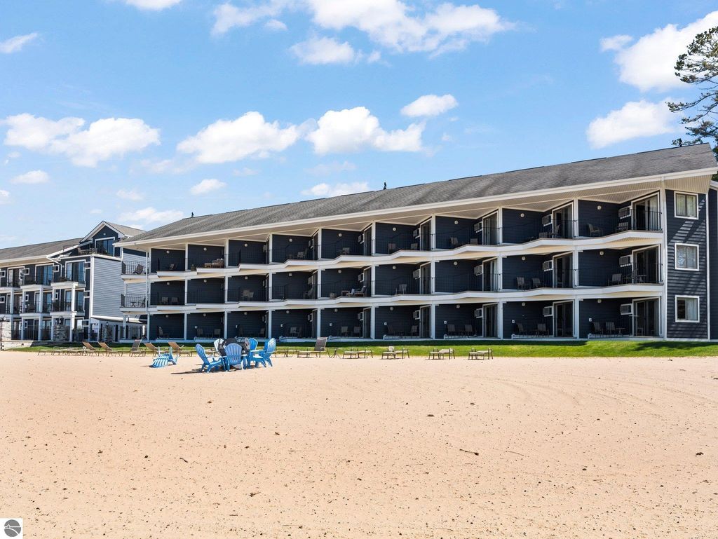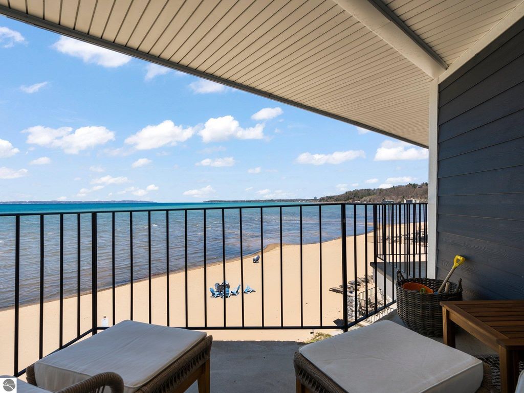 Nestled along the sought-after "Miracle Mile" of East Bay, this fully furnished beachfront condo offers the perfect balance of relaxation and investment potential. Step outside to enjoy a pristine sandy beach, breathtaking bay views, and immediate access to the very best of Traverse City. Inside, the condo has been thoughtfully updated within the last two years. A brand-new kitchenette with quartz countertops and modern finishes makes quick meals a breeze, while the refreshed bathroom adds a touch of spa-like comfort. Tasteful furnishings throughout create a turnkey opportunity"”whether you're seeking a private retreat or ready-to-go rental income. Practical features such as elevator access make the unit easily accessible, while the unbeatable location ensures you're just minutes from restaurants, shopping, and recreation. Whether you're looking for a vacation escape, a short-term rental investment, or both, this condo delivers the rare combination of convenience, style, and a premier beachfront setting