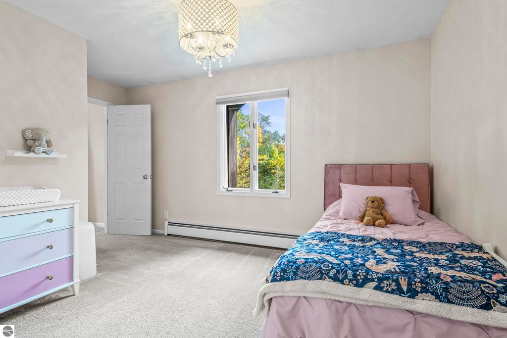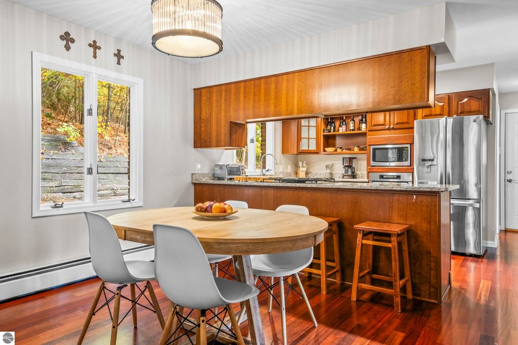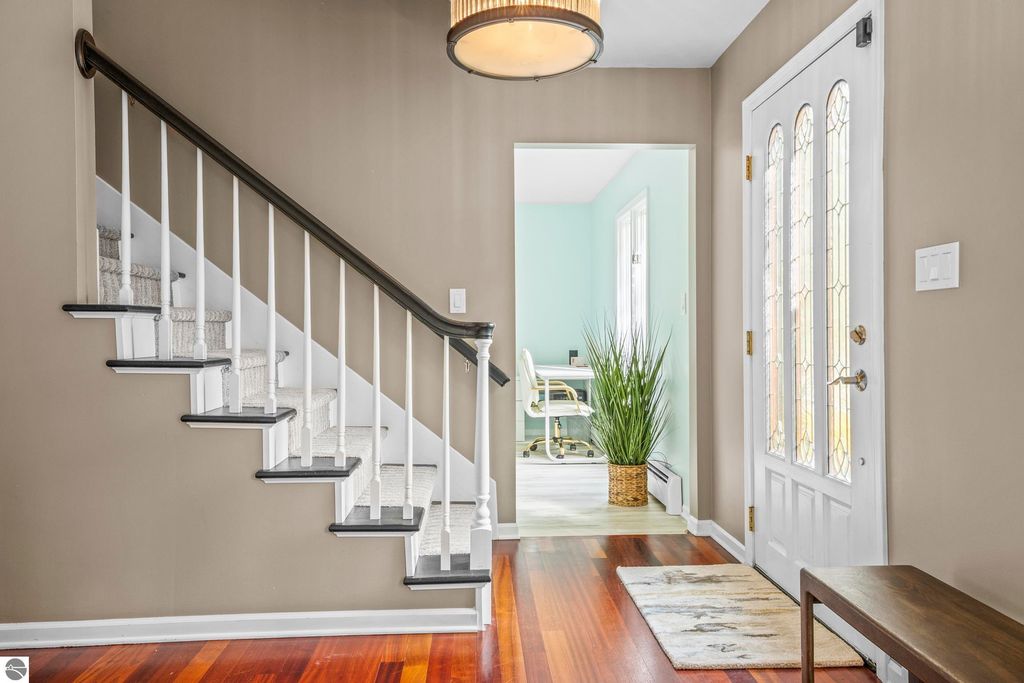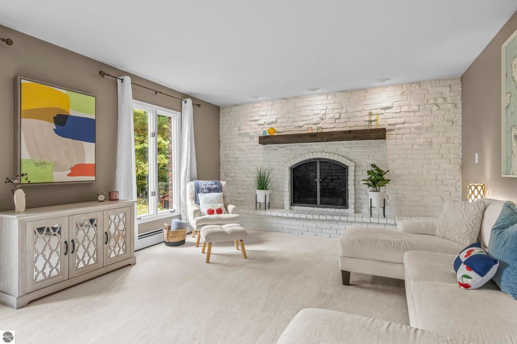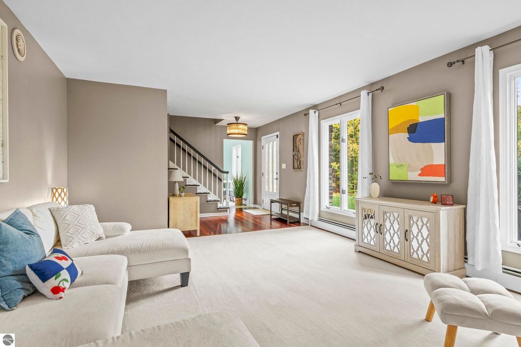 This exceptional home offers the best of Northern Michigan living"”where peaceful wooded views, modern comfort, and a relaxed coastal lifestyle come together beautifully.Tucked away on a generous 0.42-acre lot backing to serene woods and NMC property, this home is just a short stroll from a stunning sandy beach park along East Grand Traverse Bay. Mornings here might begin with a quiet walk to the water, coffee in hand, and end with gatherings on the patio under the stars. Inside, the two-story residence offers 4 bedrooms and 3.5 baths with 2,400 sq. ft. of inviting living space, plus nearly 1,000 additional sq. ft. in the finished lower level with new wall to wall carpeting recently installed. The main floor has a welcoming warmth, featuring a classic wood-burning fireplace in the living room and a gas fireplace in the family room"”perfect for cozy nights in or casual entertaining with friends. The kitchen is the heart of the home, thoughtfully designed with stainless-steel appliances, granite countertops, and both formal and informal dining areas that make every meal feel special. Upstairs, the spacious primary suite is a peaceful retreat with a private bath and tiled walk-in shower. Three additional bedrooms and a full hall bath offer plenty of space for family, guests, or a home office. Step outside to enjoy the front and back brick paver patios"”ideal for summer barbecues, evening cocktails, or quiet moments surrounded by nature. The lush yard is kept vibrant with an easy-to-maintain irrigation system. Upgrades bring modern convenience and peace of mind, including a new city sewer connector pipe and the installation of fiber optic cable throughout the neighborhood"”perfect for those who work from home or simply value fast, reliable connectivity. Located at the base of Old Mission Peninsula in a quiet, low-traffic neighborhood. This is more than a home"”it's a lifestyle. One where lake breezes, neighborhood walks, and warm gatherings become part of everyday life.