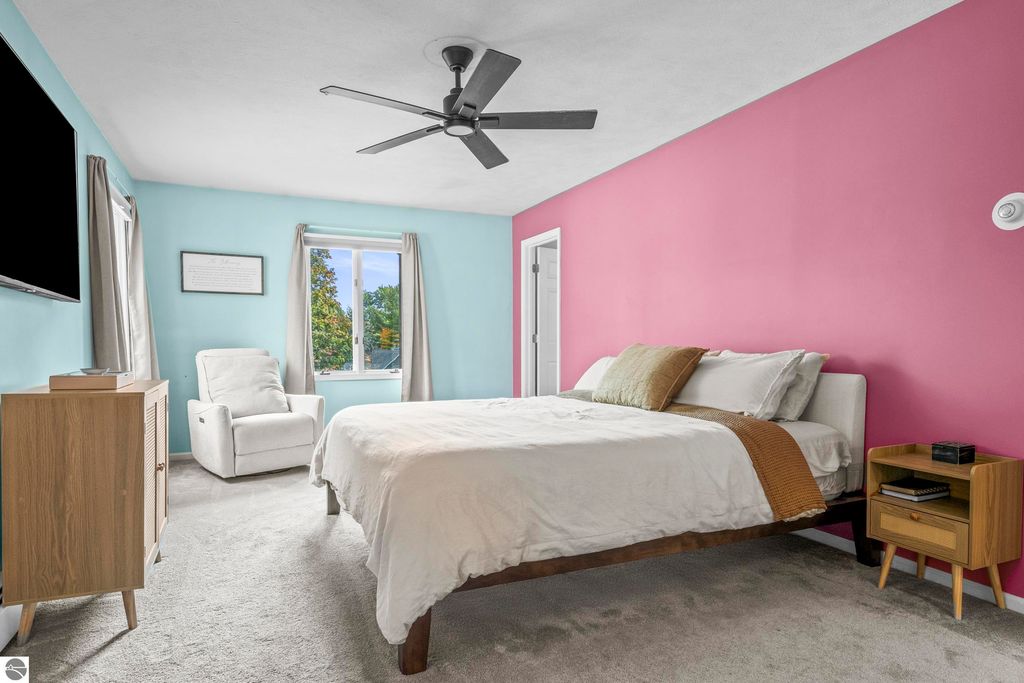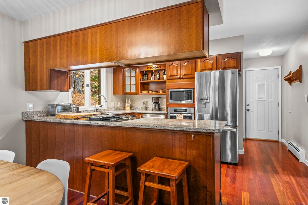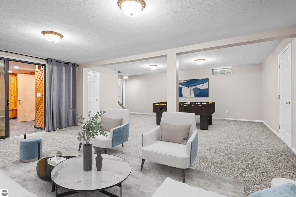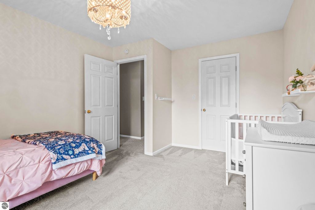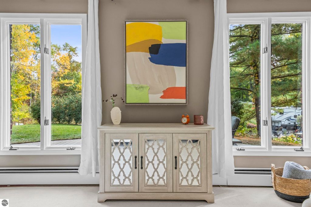 This exceptional home offers the best of Northern Michigan living"”where peaceful wooded views, modern comfort, and a relaxed coastal lifestyle come together beautifully.Tucked away on a generous 0.42-acre lot backing to serene woods and NMC property, this home is just a short stroll from a stunning sandy beach park along East Grand Traverse Bay. Mornings here might begin with a quiet walk to the water, coffee in hand, and end with gatherings on the patio under the stars. Inside, the two-story residence offers 4 bedrooms and 3.5 baths with 2,400 sq. ft. of inviting living space, plus nearly 1,000 additional sq. ft. in the finished lower level with new wall to wall carpeting recently installed. The main floor has a welcoming warmth, featuring a classic wood-burning fireplace in the living room and a gas fireplace in the family room"”perfect for cozy nights in or casual entertaining with friends. The kitchen is the heart of the home, thoughtfully designed with stainless-steel appliances, granite countertops, and both formal and informal dining areas that make every meal feel special. Upstairs, the spacious primary suite is a peaceful retreat with a private bath and tiled walk-in shower. Three additional bedrooms and a full hall bath offer plenty of space for family, guests, or a home office. Step outside to enjoy the front and back brick paver patios"”ideal for summer barbecues, evening cocktails, or quiet moments surrounded by nature. The lush yard is kept vibrant with an easy-to-maintain irrigation system. Upgrades bring modern convenience and peace of mind, including a new city sewer connector pipe and the installation of fiber optic cable throughout the neighborhood"”perfect for those who work from home or simply value fast, reliable connectivity. Located at the base of Old Mission Peninsula in a quiet, low-traffic neighborhood. This is more than a home"”it's a lifestyle. One where lake breezes, neighborhood walks, and warm gatherings become part of everyday life.