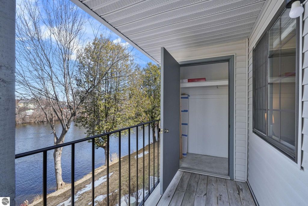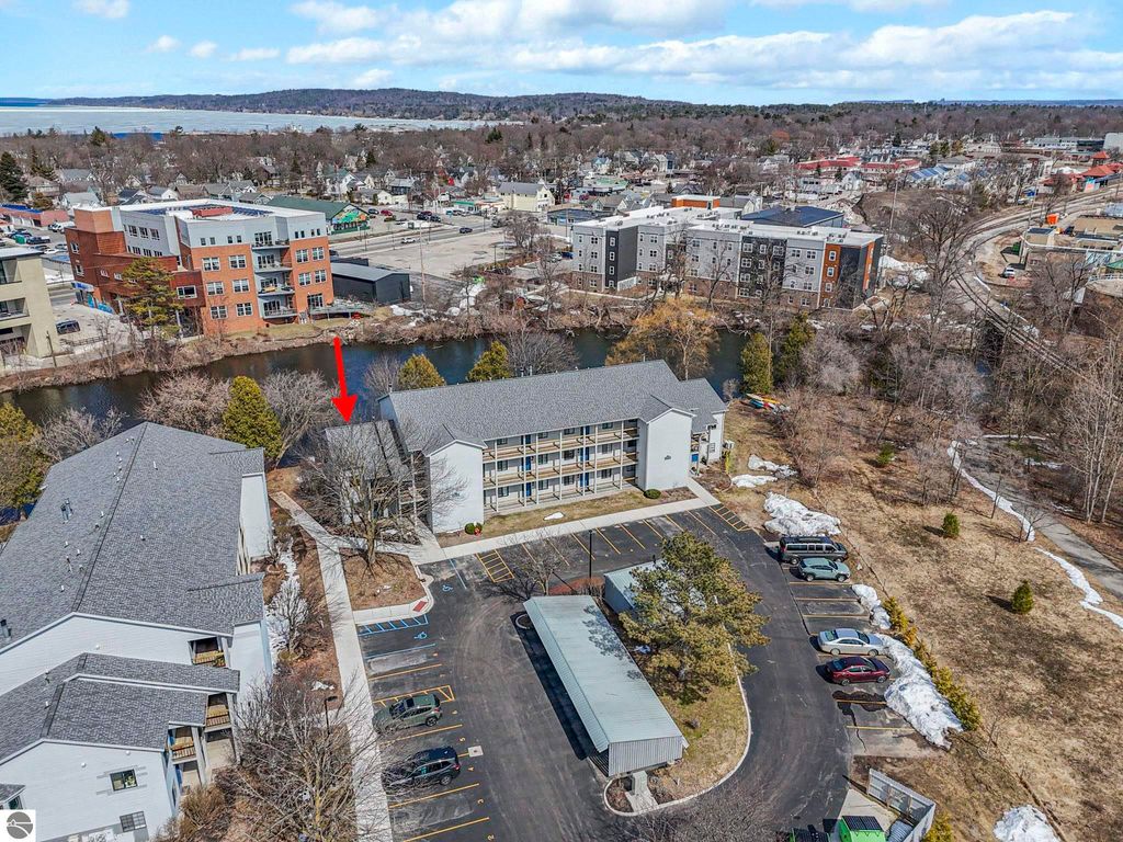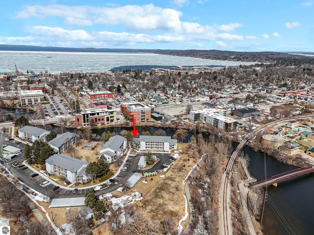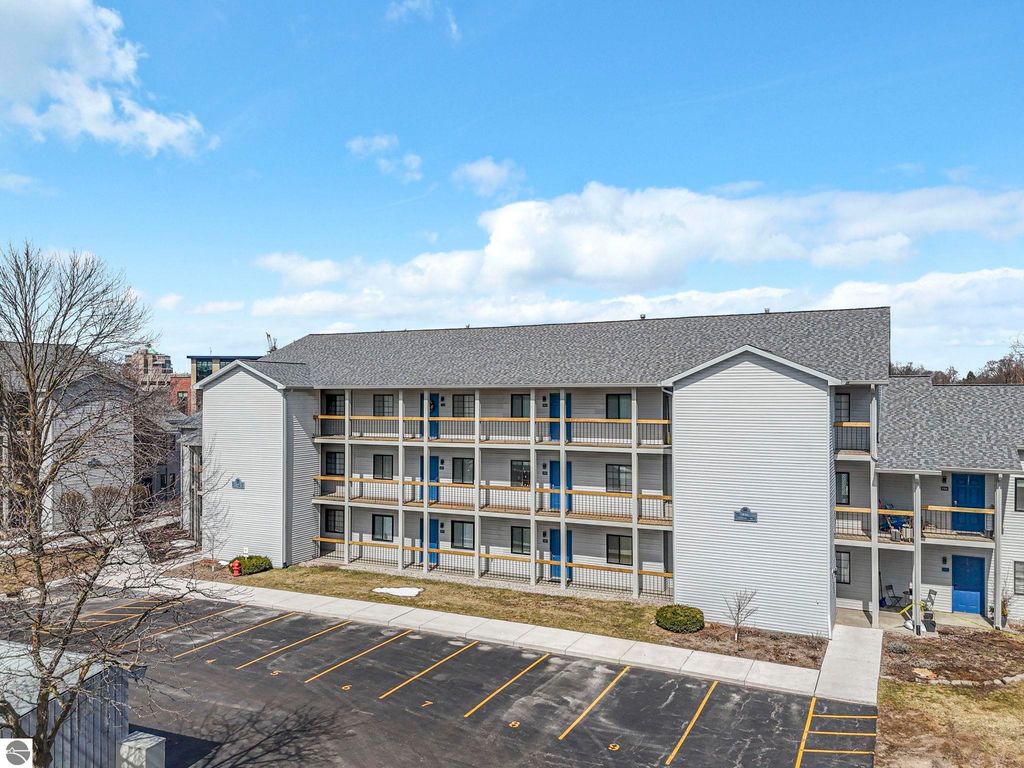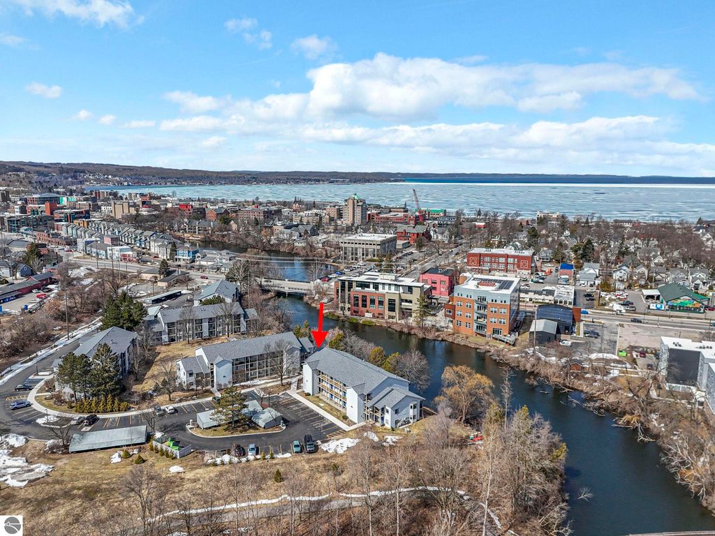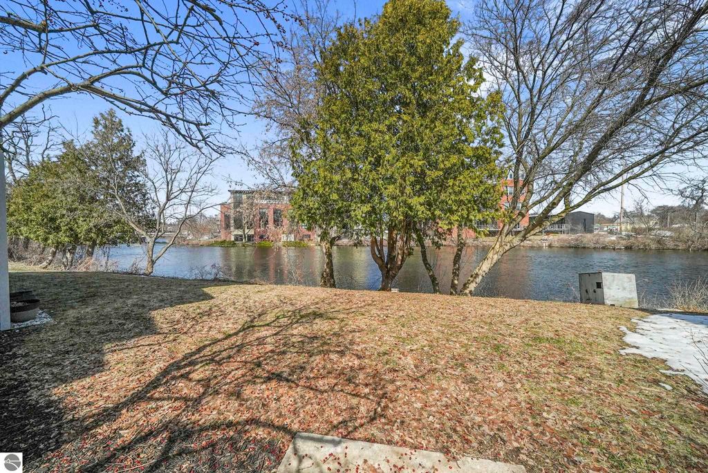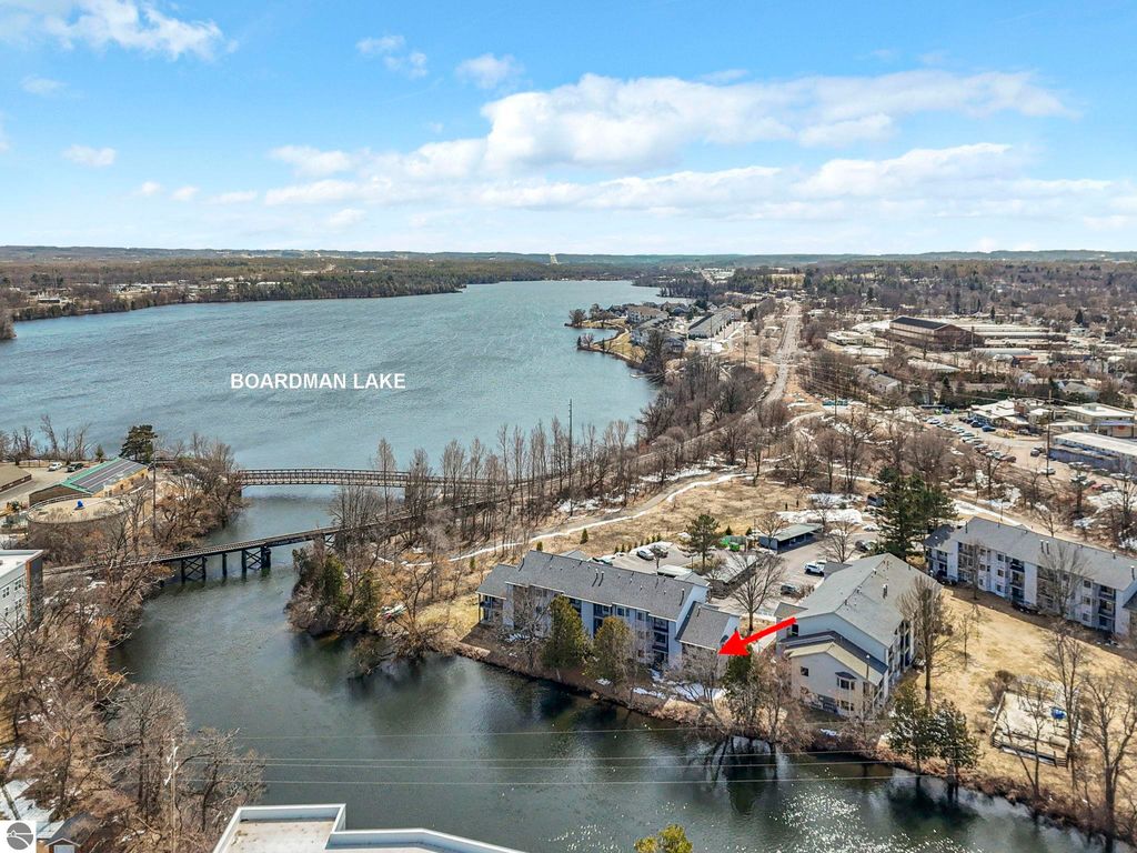Fully renovated 1 bedroom, 1 bath, condominium in Traverse City's NoBo district. Perfectly situated with over 600 feet of shared frontage and water access. Place your kayak at the water's edge and choose your adventure. Enjoy tranquil water views from a spacious living room, master with walk-in closet, and private balcony. Kitchen includes sleek, quartz countertops with ample counter seating. Front room offers a flexible space for dining, home office, or additional sleeping area, if needed. Nestled next to the TART trail and the Boardman Lake Loop, outdoor enthusiasts will appreciate the immediate access to biking, walking, and running along the meandering paths. Take a quick walk up a winding trail to a full outdoor fitness court and market. This unit is turn-key and includes a designated parking spot.
