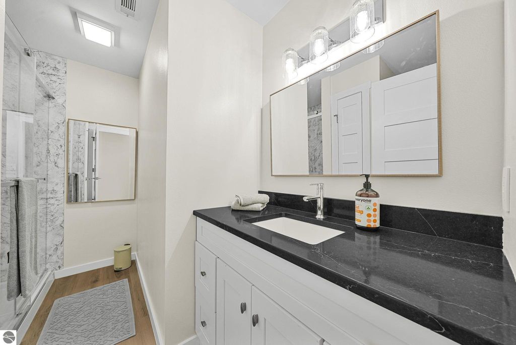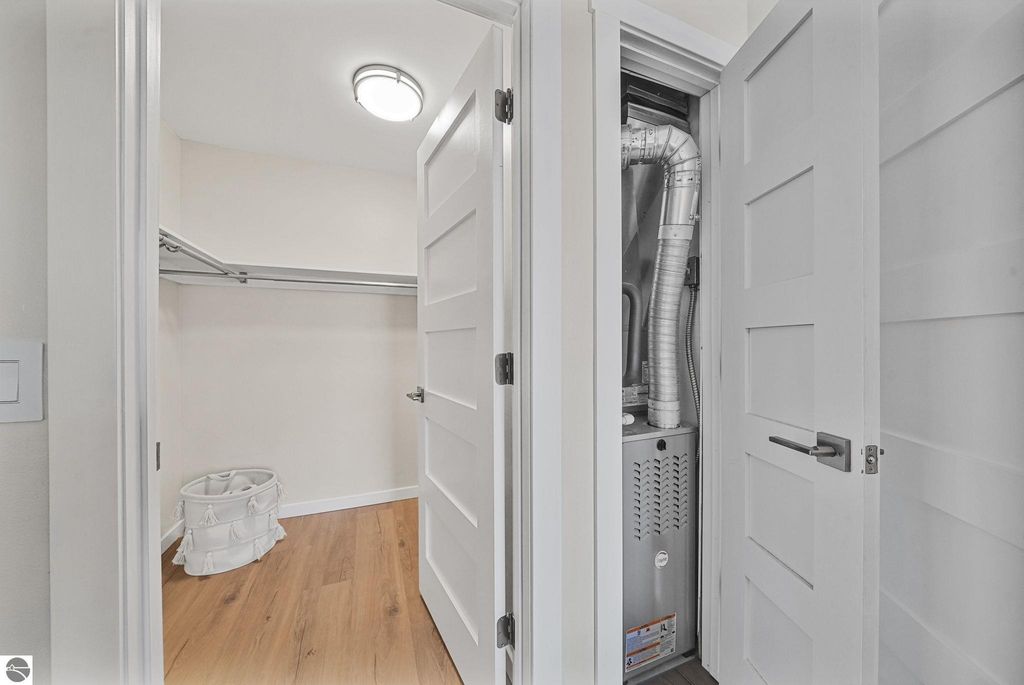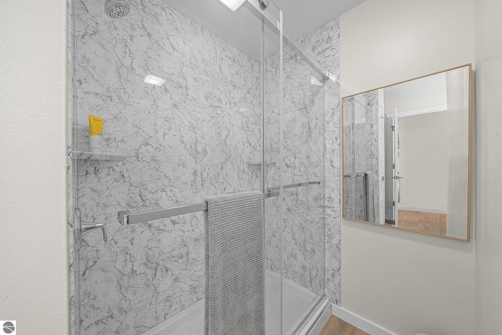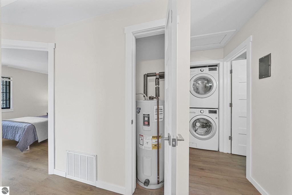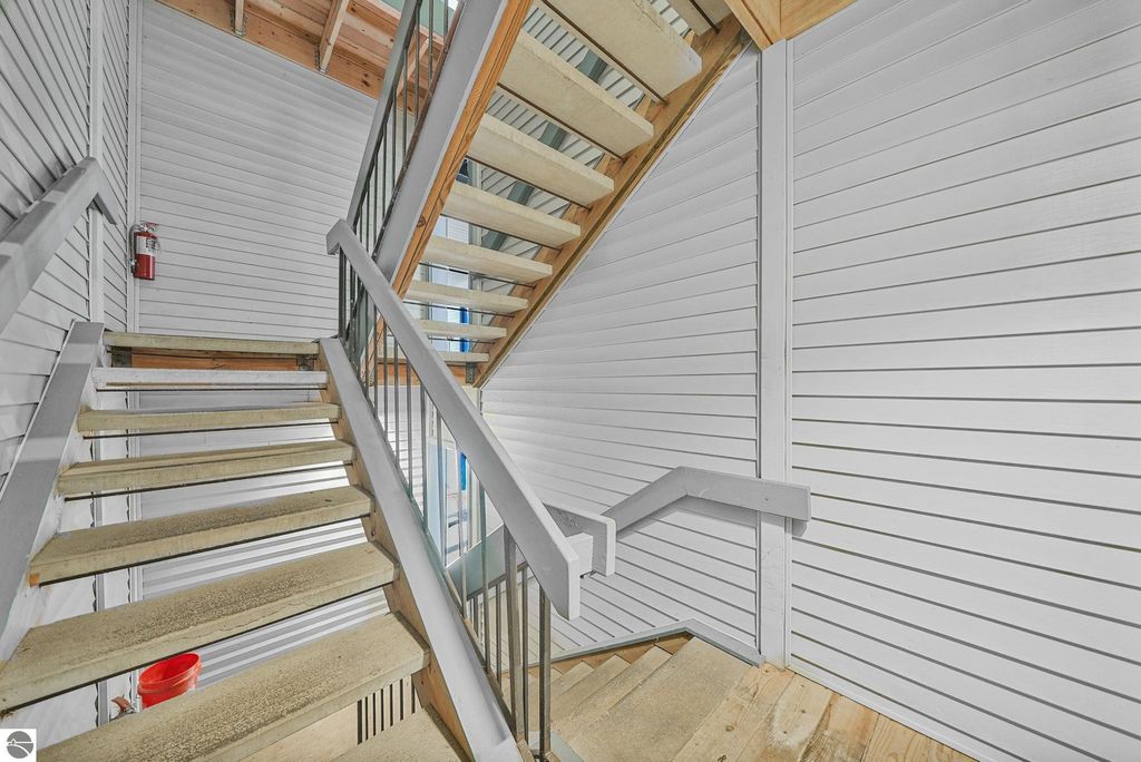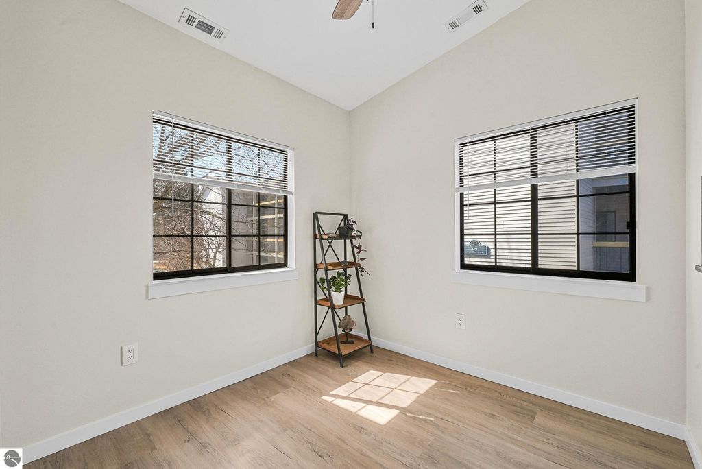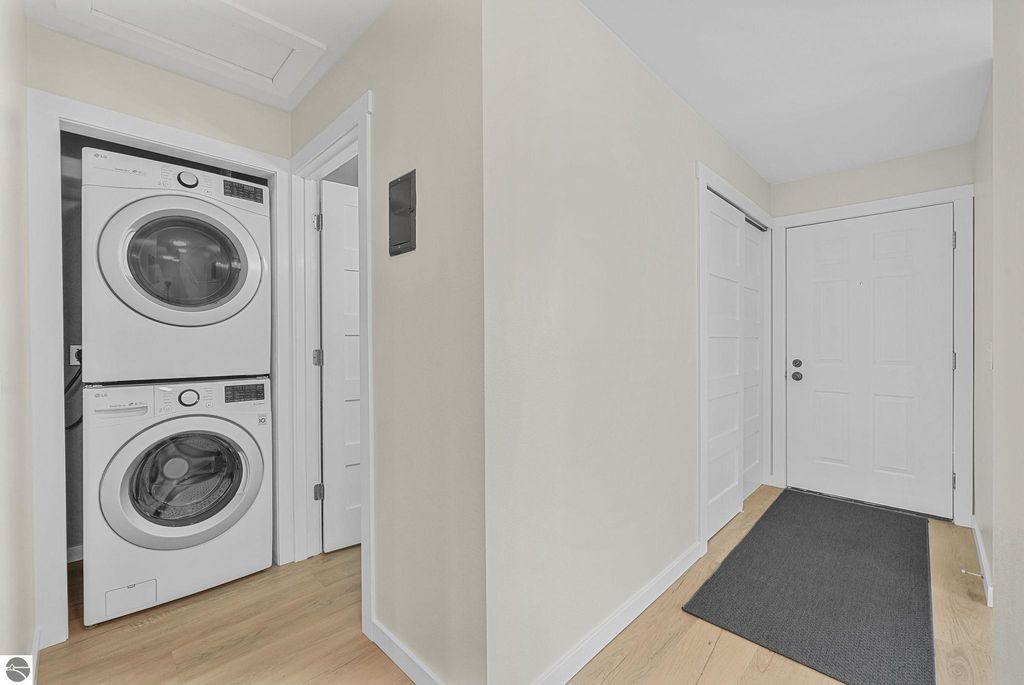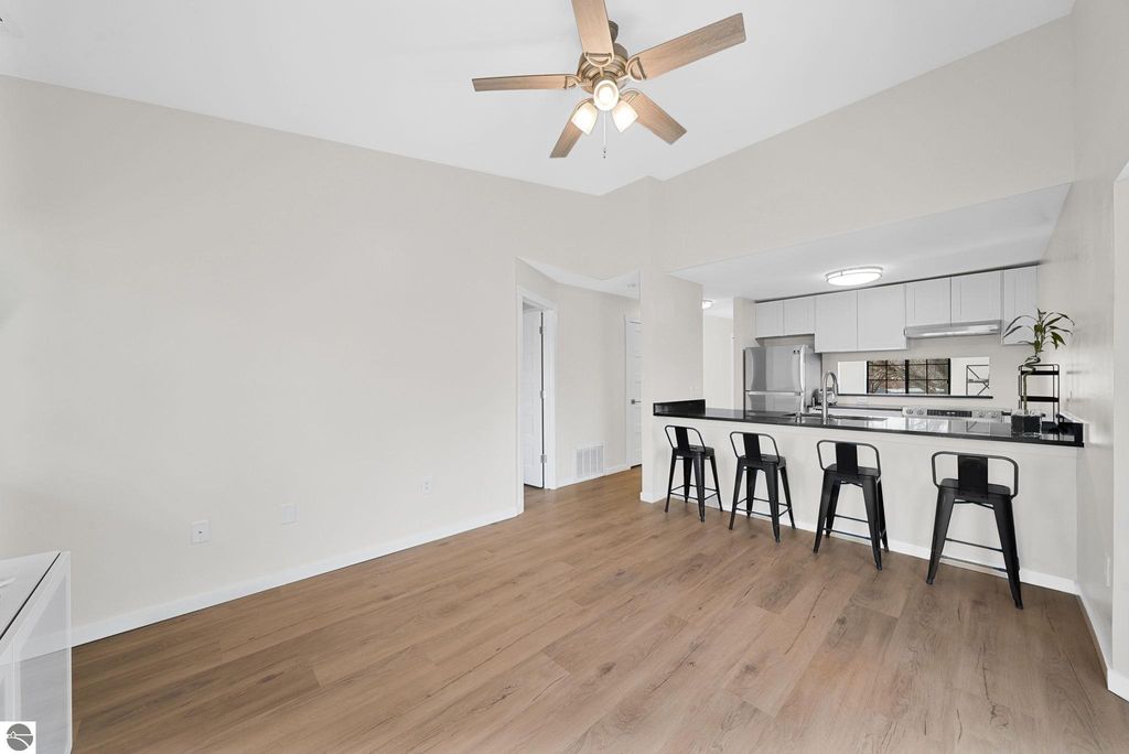 Fully renovated 1 bedroom, 1 bath, condominium in Traverse City's NoBo district. Perfectly situated with over 600 feet of shared frontage and water access. Place your kayak at the water's edge and choose your adventure. Enjoy tranquil water views from a spacious living room, master with walk-in closet, and private balcony. Kitchen includes sleek, quartz countertops with ample counter seating. Front room offers a flexible space for dining, home office, or additional sleeping area, if needed. Nestled next to the TART trail and the Boardman Lake Loop, outdoor enthusiasts will appreciate the immediate access to biking, walking, and running along the meandering paths. Take a quick walk up a winding trail to a full outdoor fitness court and market. This unit is turn-key and includes a designated parking spot.