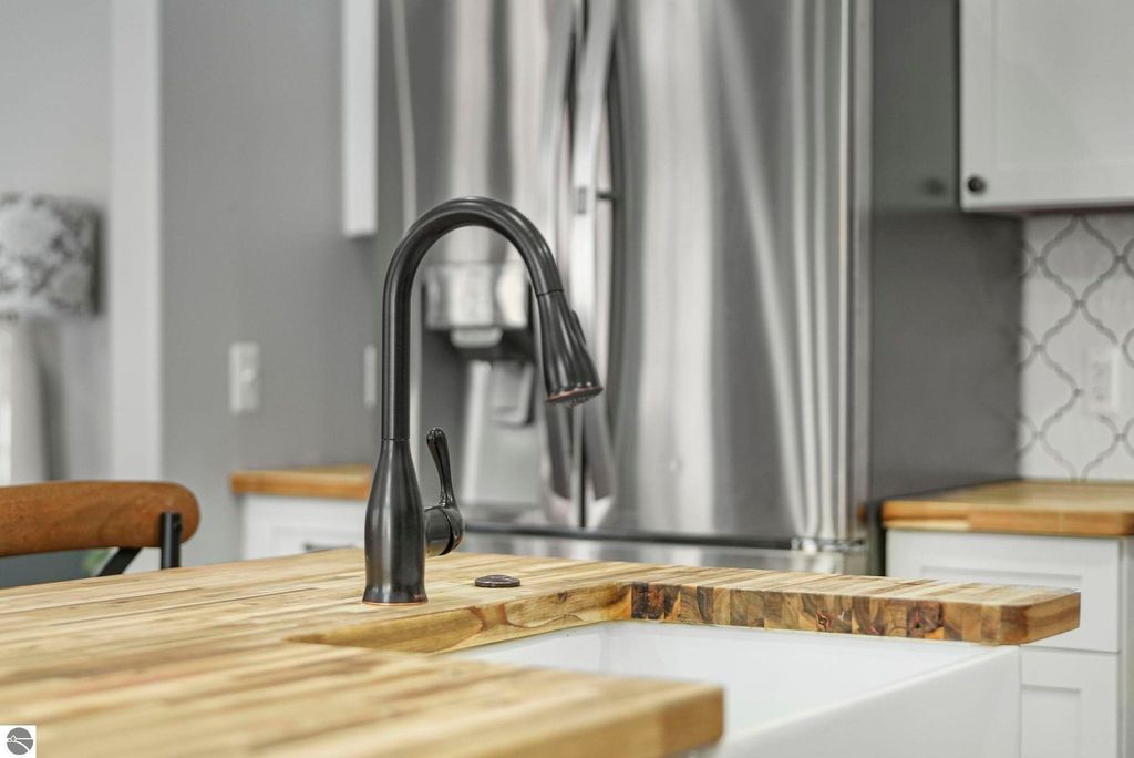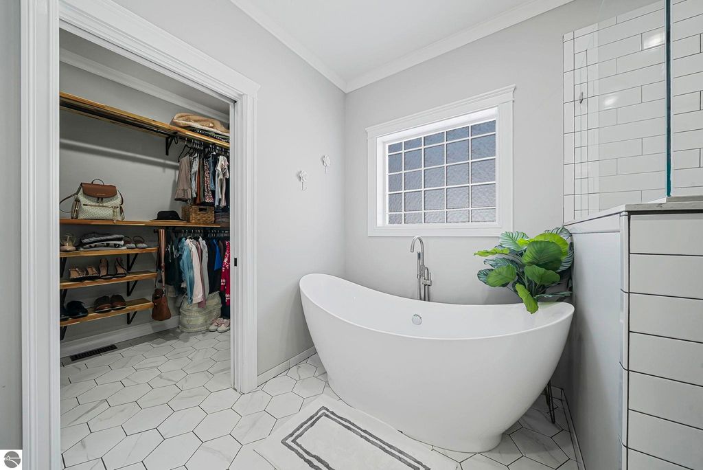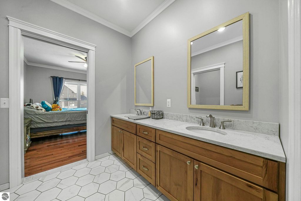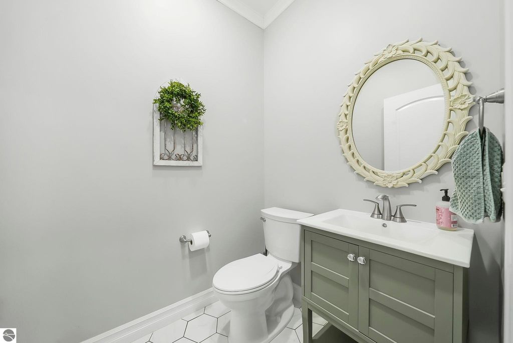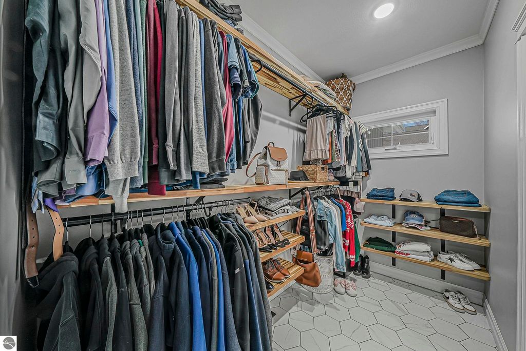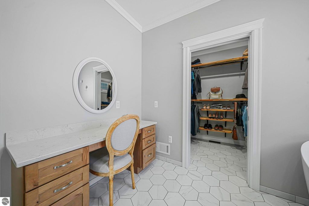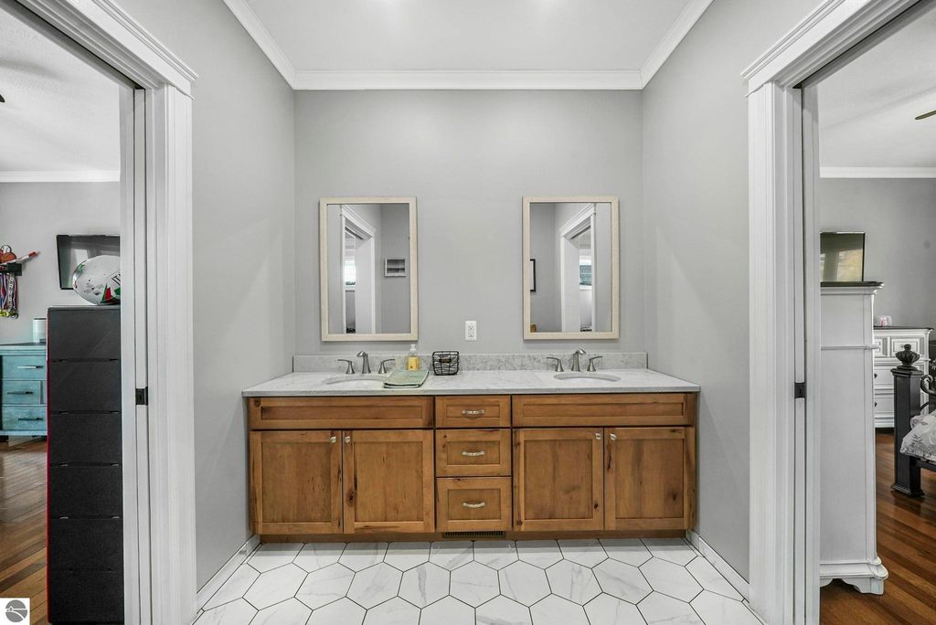 This stunning custom-built home showcases exceptional attention to detail throughout. Nestled in desirable Leelanau Highlands and if you are looking for space, this home delivers. Offering plenty of room to live, relax and entertain. Bright, open living areas feature cathedral ceilings and rich hardwood and tile flooring throughout the main level. The gracious living room with fireplace flows seamlessly to a large covered rear porch perfect for outdoor entertaining. The island kitchen is thoughtfully designed with butcher block countertops, stainless double wall ovens, gas cook top and a walk-in pantry. Enjoy the ease of main floor living, including a spacious primary suite with a well-appointed en-suite featuring a soaking tub, tiled walk-in shower, and walk-in closet. Two additional bedrooms are thoughtfully situated with a Jack and Jill bath. The finished lower level expands your living space with a large family room, wet bar, fourth bedroom, and full bath. A mudroom and half bath are conveniently located off the finished three-car garage, which includes a drive-thru stall. Experience the beauty and serenity of Leelanau County living, just a short drive from Traverse City.