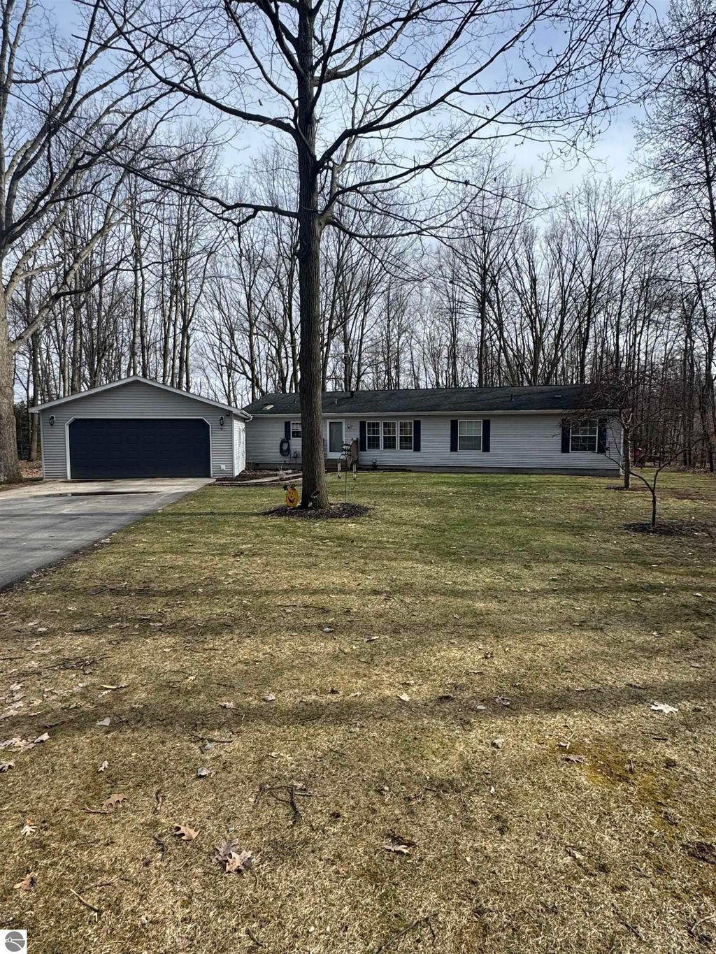 Charming and tranquil ranch-style home in Lake Isabella featuring thoughtful updates throughout. This 3-bedroom, 2-bath property with vaulted ceilings includes a detached two-car garage and a full basement. Enjoy added privacy with association-owned land behind the home that will remain wooded and undeveloped. The home offers abundant storage and great potential for additional finishing. Come inside and feel the warmth and comfort for yourself. Recent updates include a newer well pump, AC condenser, asphalt driveway, water heater, appliances, and more.