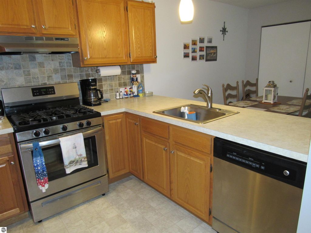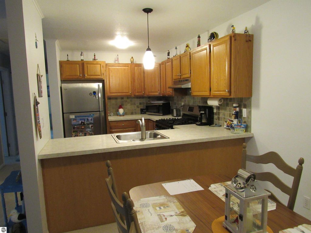 Lincoln Square Condo upper unit #7. Two bedroom, one full bath, dining area, Kitchen with all appliances included, Living room with slider to balcony. Walk-in closet in main bedroom with washer and dryer. New HW Heater in 2018. TV included in sale. Well maintained unit. One car garage. Property taxes will increase when purchased.