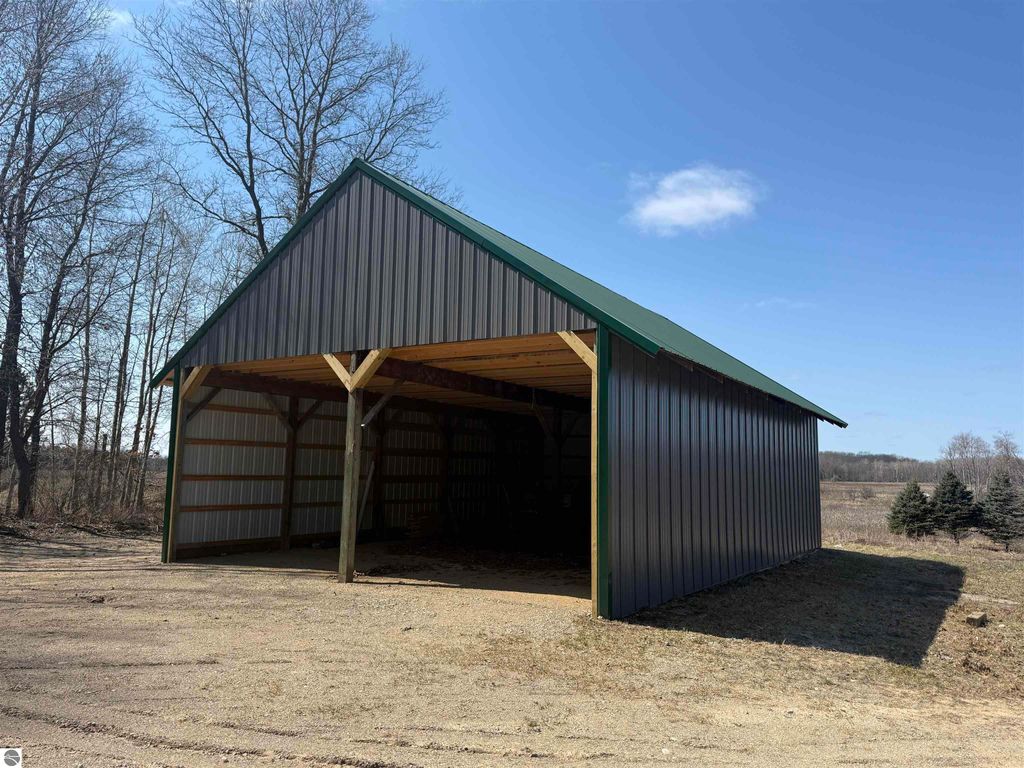 Peaceful, simple country living on 9.26 beautiful acres! This 2-bedroom, 1-bath barndominium offers the perfect blend of simplicity, functionality, and privacy with no close neighbors in sight. Tucked back off the road, the property features a comfortable open-concept living space with warm finishes, a practical kitchen, and sliding doors leading to an elevated deck overlooking your own private countryside. Many major updates have been completed including a newer 5 inch well and new sheet metal/roofs on the pole barn and wood shed. The land offers a little bit of everything "” open space, mature trees, and a scenic pond that adds to the quiet, secluded setting. A large additional pole barn provides excellent storage for equipment, vehicles, or hobbies, while the separate wood shed supports the Burnrite wood boiler for efficient, affordable heating. A circular drive connects the home and outbuildings, making the layout both convenient and functional. Whether you're looking for a homestead, hunting basecamp, hobby farm potential, or just a peaceful place to unplug, this property delivers true country living with room to breathe. Simple, efficient, and surrounded by nature "” this is the kind of privacy that's getting harder to find.