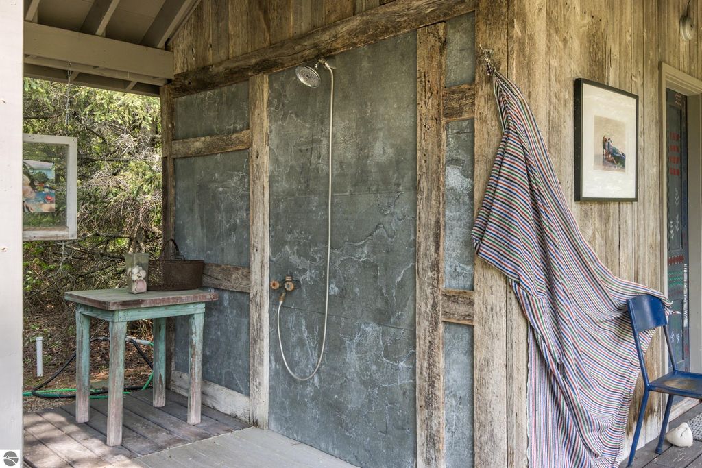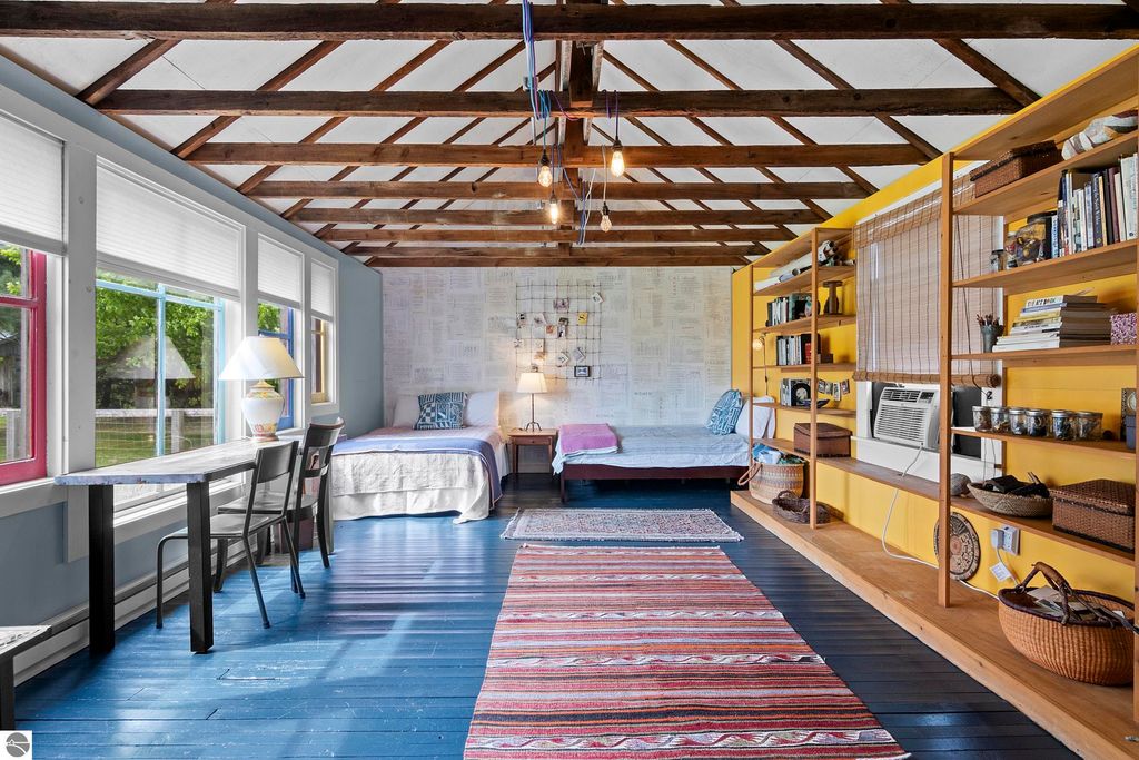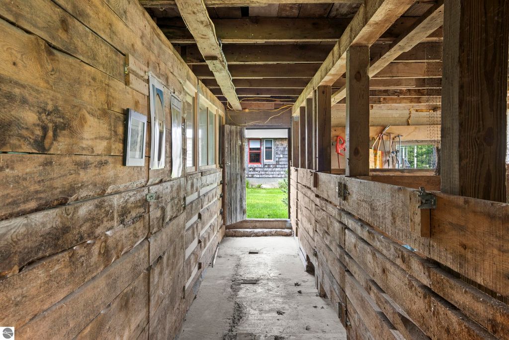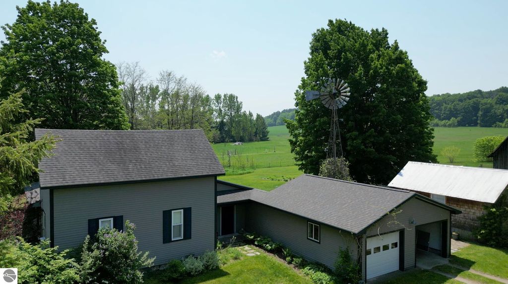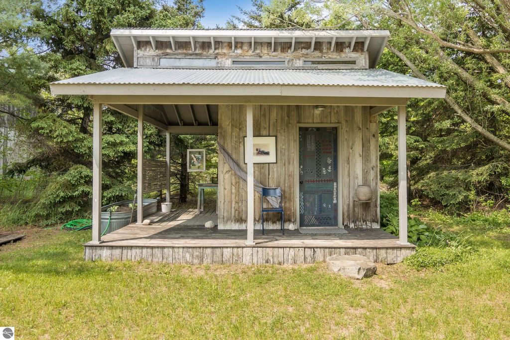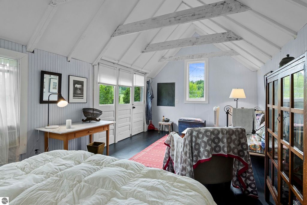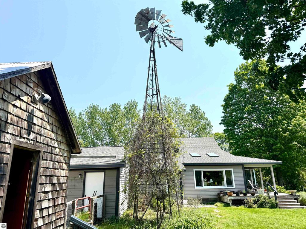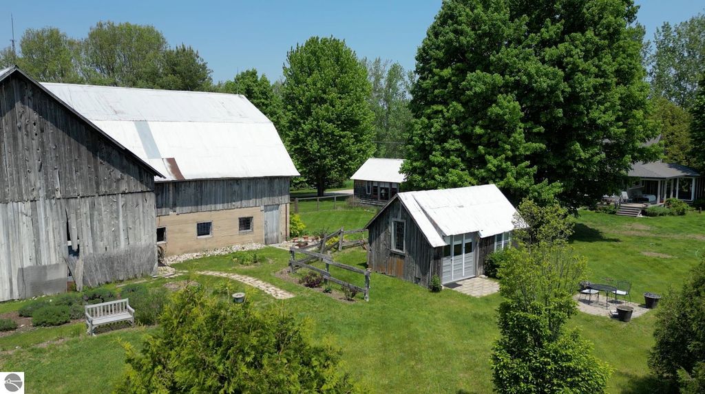 Set amid rolling pastures and orchard breezes, this is a rare opportunity to own something truly special. Established in the 1920s and thoughtfully reimagined, this one-of-a-kind property blends timeless charm with creative possibility"”offering not just a home, but a lifestyle and an income-generating retreat. The main farmhouse features maple wood floors, skylights, and a bright, open layout. A main-level bath with a clawfoot soaking tub and oversized walk-in shower adds a touch of everyday luxury, while the spacious loft serves beautifully as a primary suite, studio, or inspiring workspace. A screened-in porch, fenced yard, and expansive deck create inviting spaces to relax, gather, and take in the surrounding countryside. Beyond the farmhouse, the property unfolds into a curated collection of repurposed outbuildings"”each rich with character and crafted from salvaged materials. Two studio type spaces full of charm, one a former chicken coop and the other a converted structure complete with heat and A/C, were recently used as AIRBNB spaces. Guests enjoyed a shared bathhouse with indoor and outdoor showers (and even an outdoor soaking tub), along with a welcoming lounge and dining space. Further back, a grainery-style building adds seasonal rental potential, while a covered open-air yoga and meditation space invites peaceful moments overlooking the open pasture. Anchoring the property is the original barn and windmill, where you'll find horse stalls, storage, workshop space, and a working space complete with running water, once a pottery studio. Meander the grounds to discover gardens, trails, a firepit, and a former glamping platform"”each adding to the property's sense of wonder and possibility. Located just 15 minutes from Leland, Suttons Bay, Cedar, and Lake Leelanau, with easy access to beaches, wineries, golf, and dining"”this is a rare and artful slice of Leelanau County, ready for its next steward to bring their own vision.