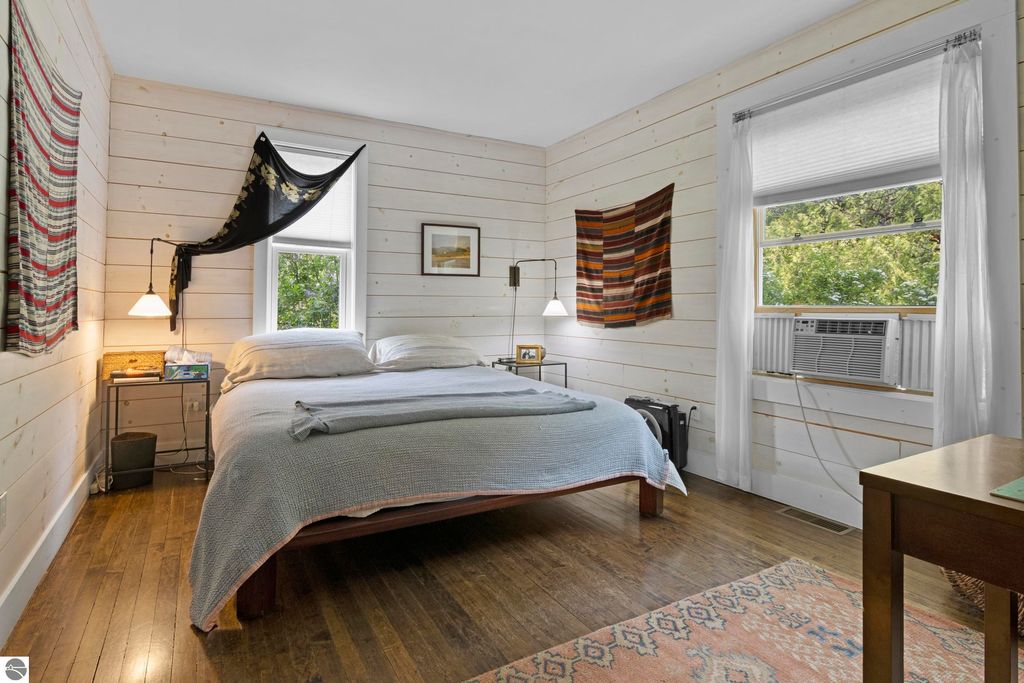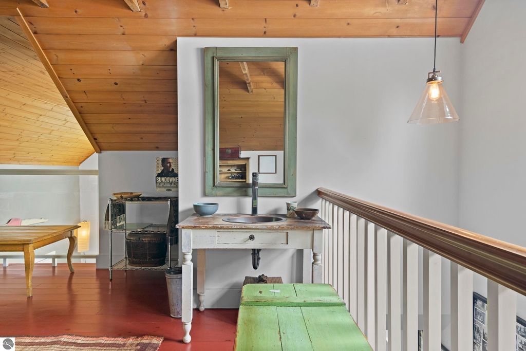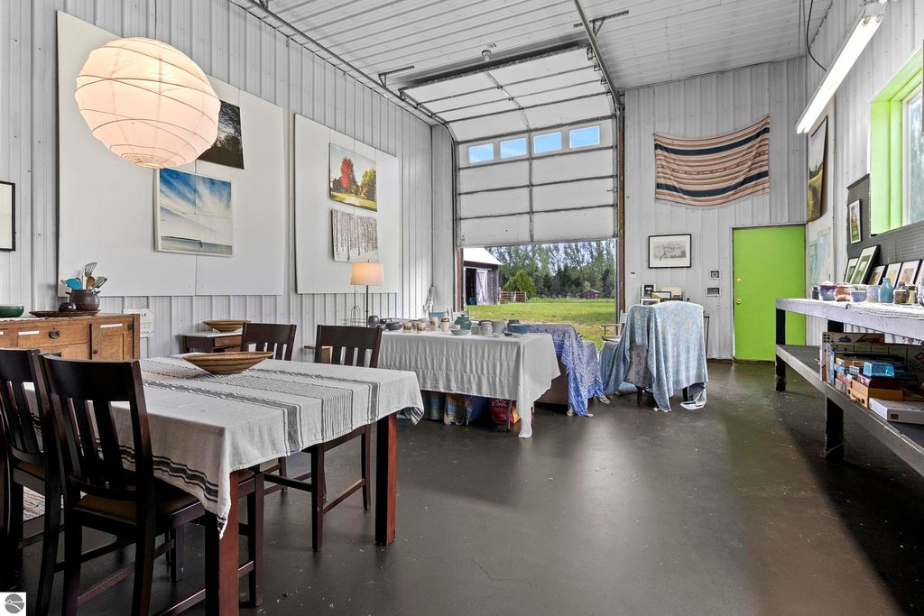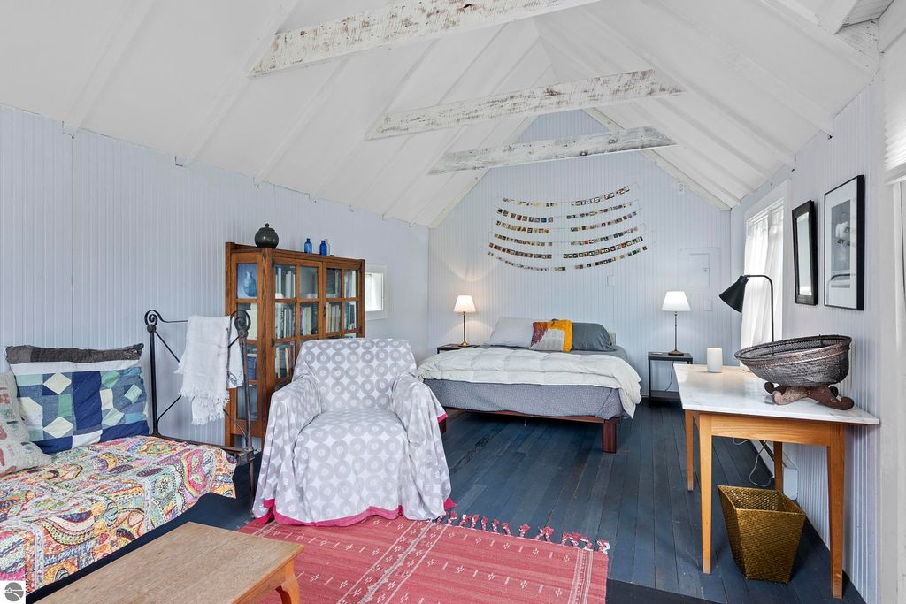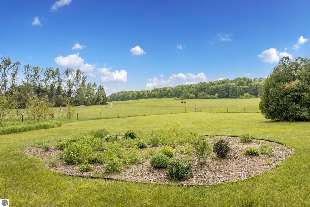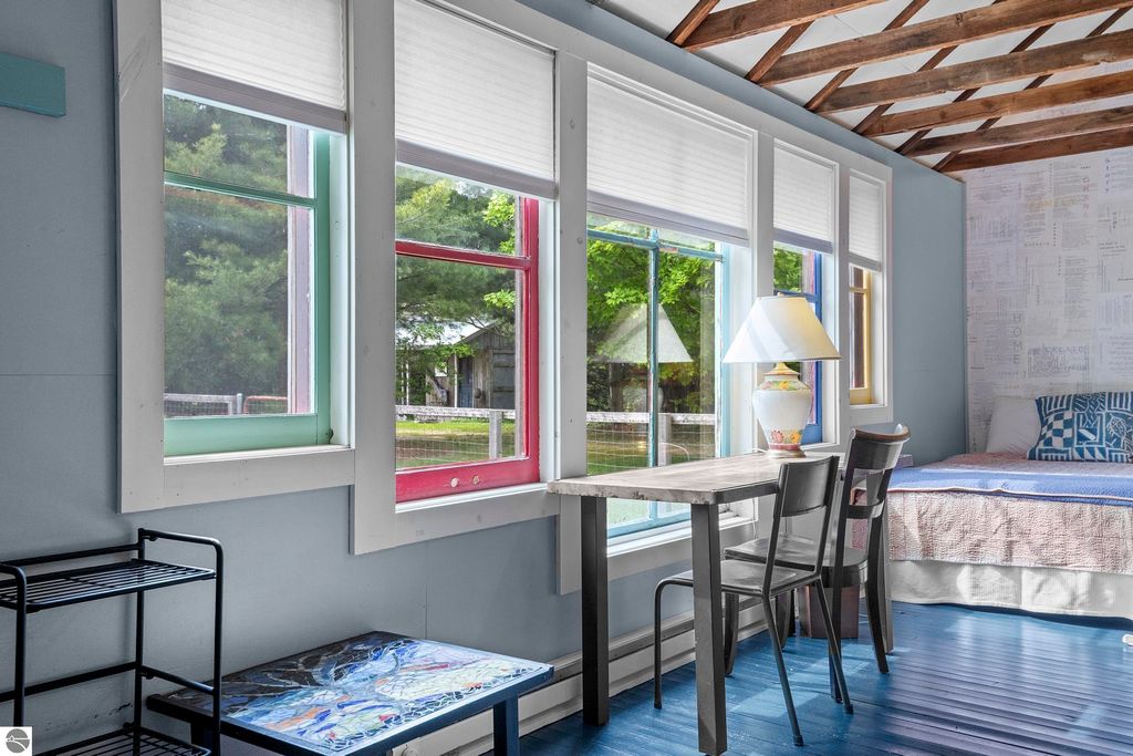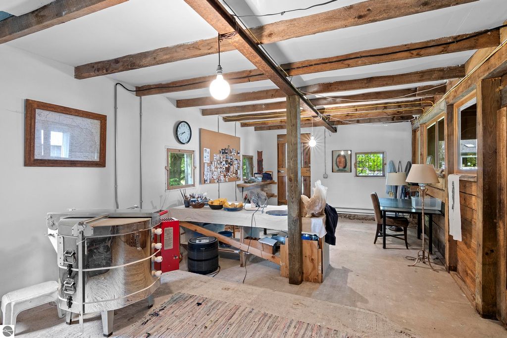 Set amid rolling pastures and orchard breezes, this is a rare opportunity to own something truly special. Established in the 1920s and thoughtfully reimagined, this one-of-a-kind property blends timeless charm with creative possibility"”offering not just a home, but a lifestyle and an income-generating retreat. The main farmhouse features maple wood floors, skylights, and a bright, open layout. A main-level bath with a clawfoot soaking tub and oversized walk-in shower adds a touch of everyday luxury, while the spacious loft serves beautifully as a primary suite, studio, or inspiring workspace. A screened-in porch, fenced yard, and expansive deck create inviting spaces to relax, gather, and take in the surrounding countryside. Beyond the farmhouse, the property unfolds into a curated collection of repurposed outbuildings"”each rich with character and crafted from salvaged materials. Two studio type spaces full of charm, one a former chicken coop and the other a converted structure complete with heat and A/C, were recently used as AIRBNB spaces. Guests enjoyed a shared bathhouse with indoor and outdoor showers (and even an outdoor soaking tub), along with a welcoming lounge and dining space. Further back, a grainery-style building adds seasonal rental potential, while a covered open-air yoga and meditation space invites peaceful moments overlooking the open pasture. Anchoring the property is the original barn and windmill, where you'll find horse stalls, storage, workshop space, and a working space complete with running water, once a pottery studio. Meander the grounds to discover gardens, trails, a firepit, and a former glamping platform"”each adding to the property's sense of wonder and possibility. Located just 15 minutes from Leland, Suttons Bay, Cedar, and Lake Leelanau, with easy access to beaches, wineries, golf, and dining"”this is a rare and artful slice of Leelanau County, ready for its next steward to bring their own vision.