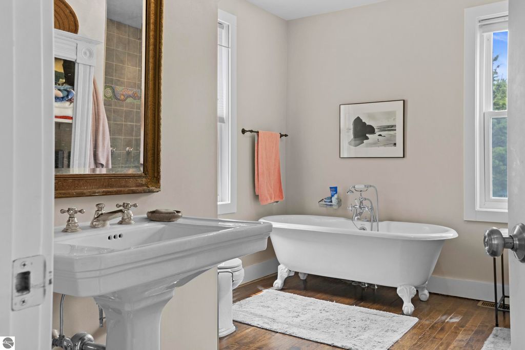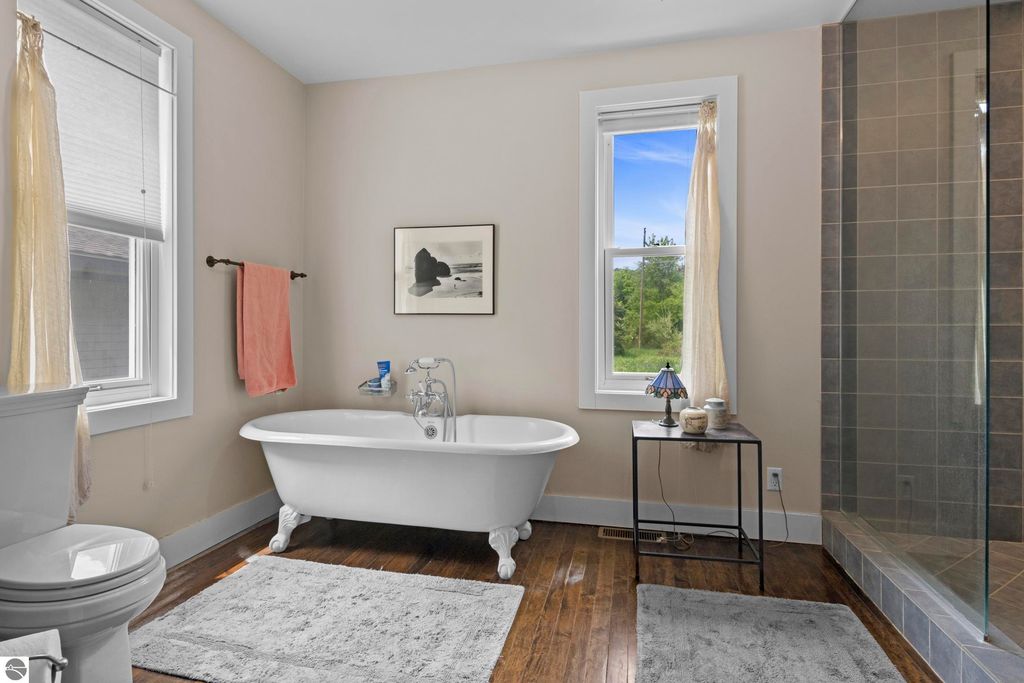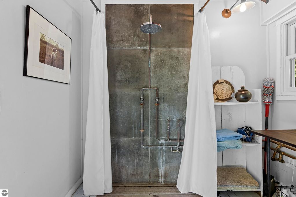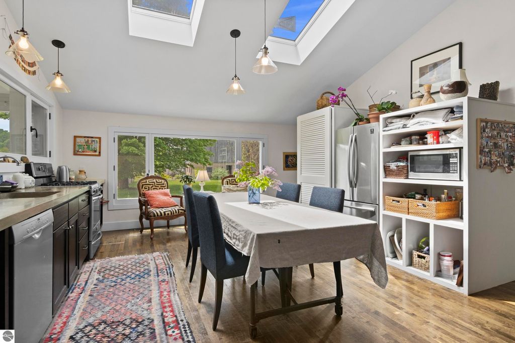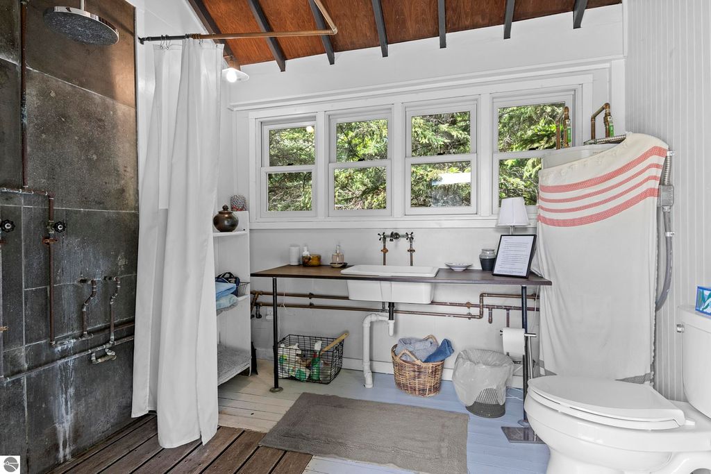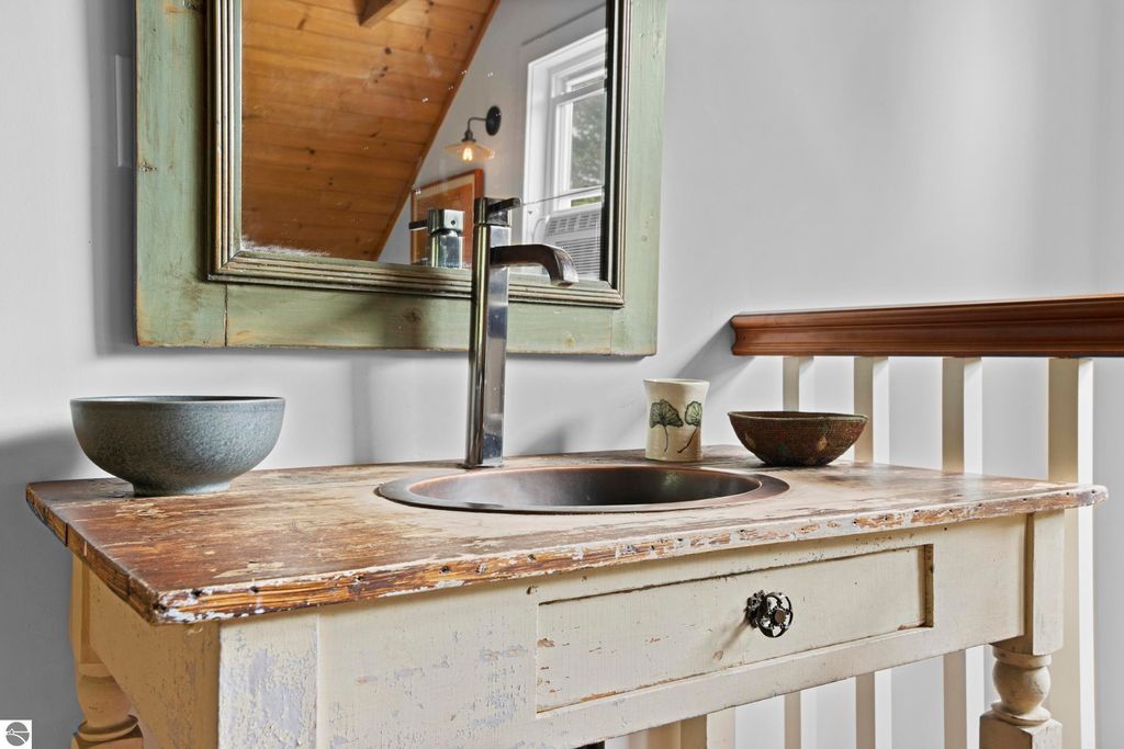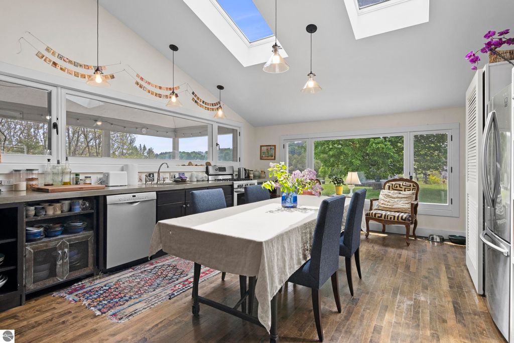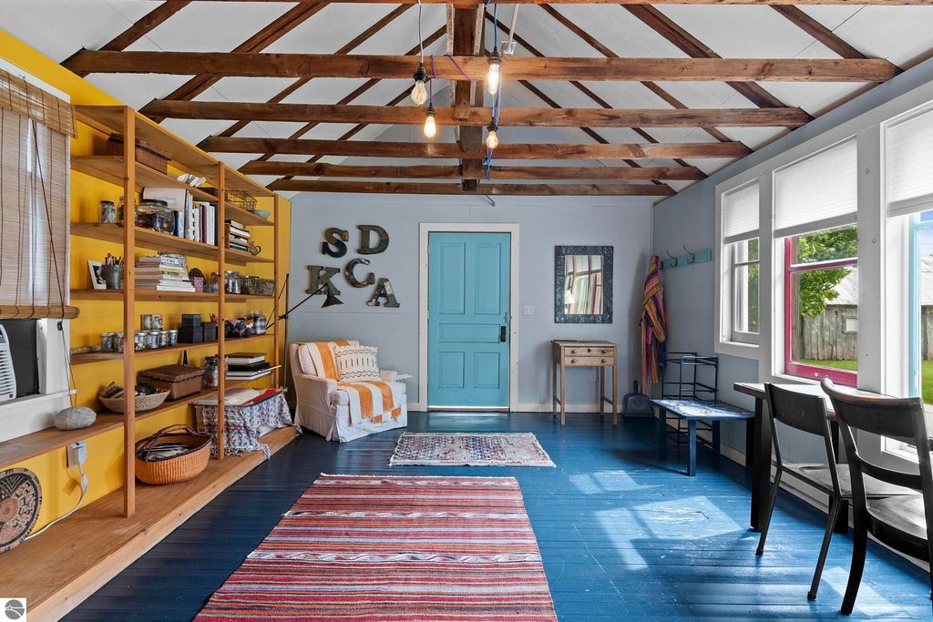 Set amid rolling pastures and orchard breezes, this is a rare opportunity to own something truly special. Established in the 1920s and thoughtfully reimagined, this one-of-a-kind property blends timeless charm with creative possibility"”offering not just a home, but a lifestyle and an income-generating retreat. The main farmhouse features maple wood floors, skylights, and a bright, open layout. A main-level bath with a clawfoot soaking tub and oversized walk-in shower adds a touch of everyday luxury, while the spacious loft serves beautifully as a primary suite, studio, or inspiring workspace. A screened-in porch, fenced yard, and expansive deck create inviting spaces to relax, gather, and take in the surrounding countryside. Beyond the farmhouse, the property unfolds into a curated collection of repurposed outbuildings"”each rich with character and crafted from salvaged materials. Two studio type spaces full of charm, one a former chicken coop and the other a converted structure complete with heat and A/C, were recently used as AIRBNB spaces. Guests enjoyed a shared bathhouse with indoor and outdoor showers (and even an outdoor soaking tub), along with a welcoming lounge and dining space. Further back, a grainery-style building adds seasonal rental potential, while a covered open-air yoga and meditation space invites peaceful moments overlooking the open pasture. Anchoring the property is the original barn and windmill, where you'll find horse stalls, storage, workshop space, and a working space complete with running water, once a pottery studio. Meander the grounds to discover gardens, trails, a firepit, and a former glamping platform"”each adding to the property's sense of wonder and possibility. Located just 15 minutes from Leland, Suttons Bay, Cedar, and Lake Leelanau, with easy access to beaches, wineries, golf, and dining"”this is a rare and artful slice of Leelanau County, ready for its next steward to bring their own vision.