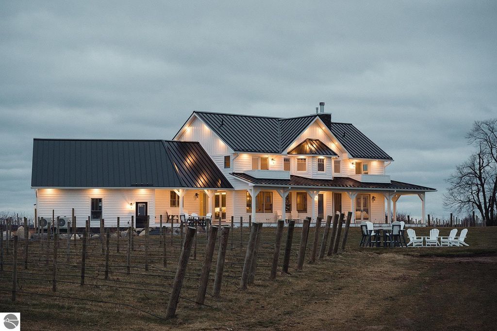 Set on 5 picturesque acres in Williamsburg, Michigan, this exceptional 7-bedroom, 5-bath estate offers sweeping, unobstructed views of Grand Traverse Bay and an unbeatable location just one mile from the renowned Traverse City Horse Show. Originally a vineyard, the property features gently rolling terrain and open acreage, now decommissioned and ready for your vision. With ample space for a barn, paddocks, and equestrian facilities, this is an ideal opportunity for horse enthusiasts seeking proximity to world-class competition while enjoying the privacy and beauty of Northern Michigan countryside. The spacious residence blends charm and functionality, offering generous living areas, multiple bedrooms for guests or staff, and expansive outdoor spaces perfectly positioned to take in the breathtaking bay views. A long, private drive and serene setting create a true retreat atmosphere, yet you're just minutes from dining, shopping, and recreation in nearby Traverse City, Michigan. Offered fully furnished and turn-key, this property also presents a compelling investment opportunity with verifiable income, making it ideal as a luxury short-term rental, seasonal retreat, or equestrian base during show season. Whether you're seeking a private estate, income-producing property, or equestrian lifestyle, this rare offering delivers unmatched potential in one of Northern Michigan's most desirable locations.