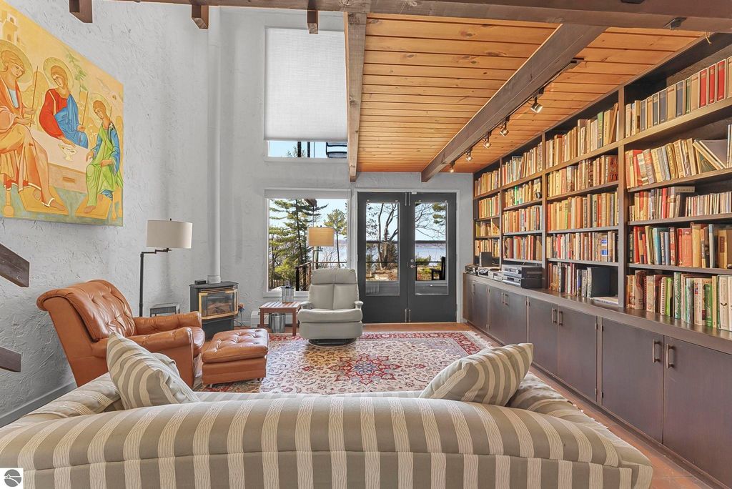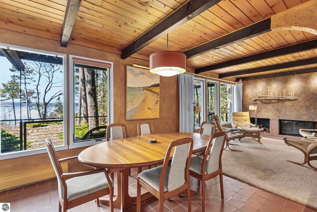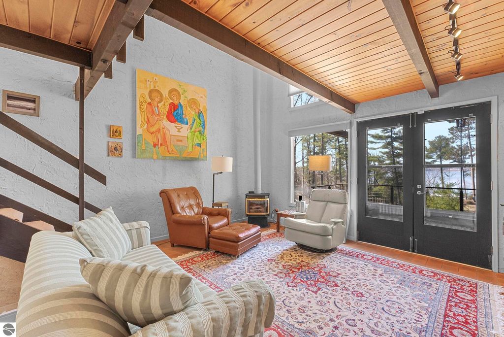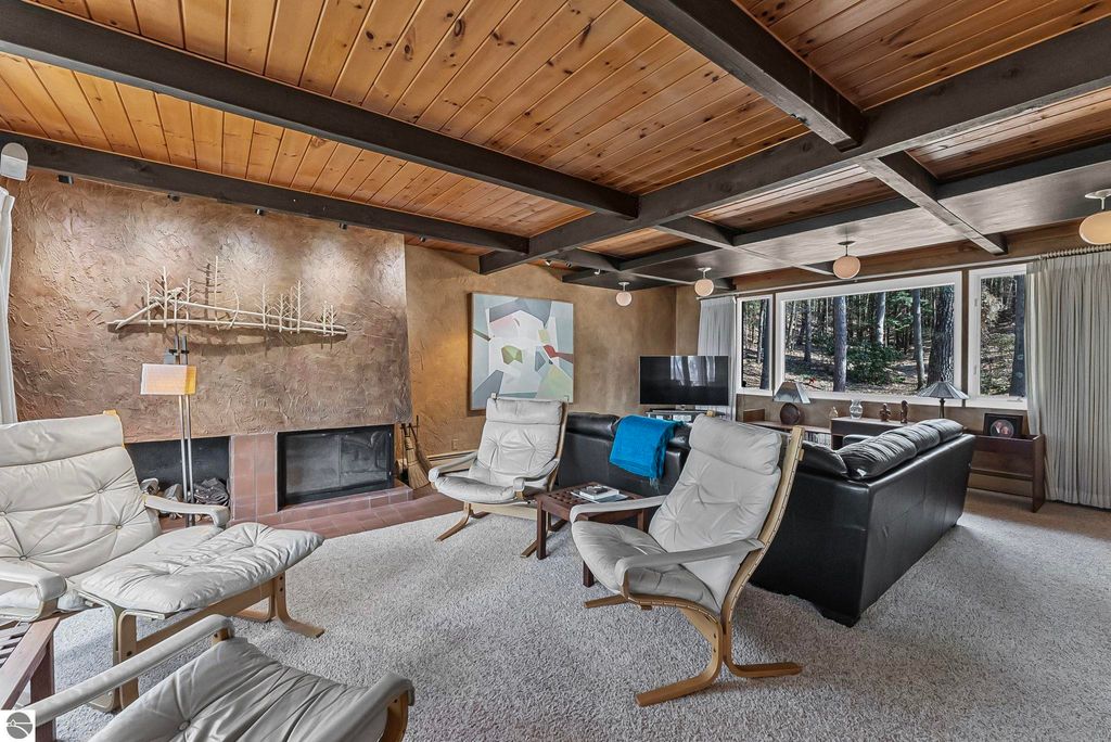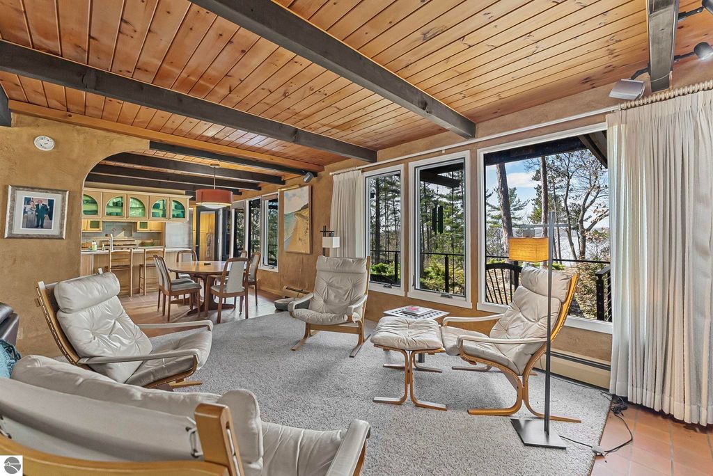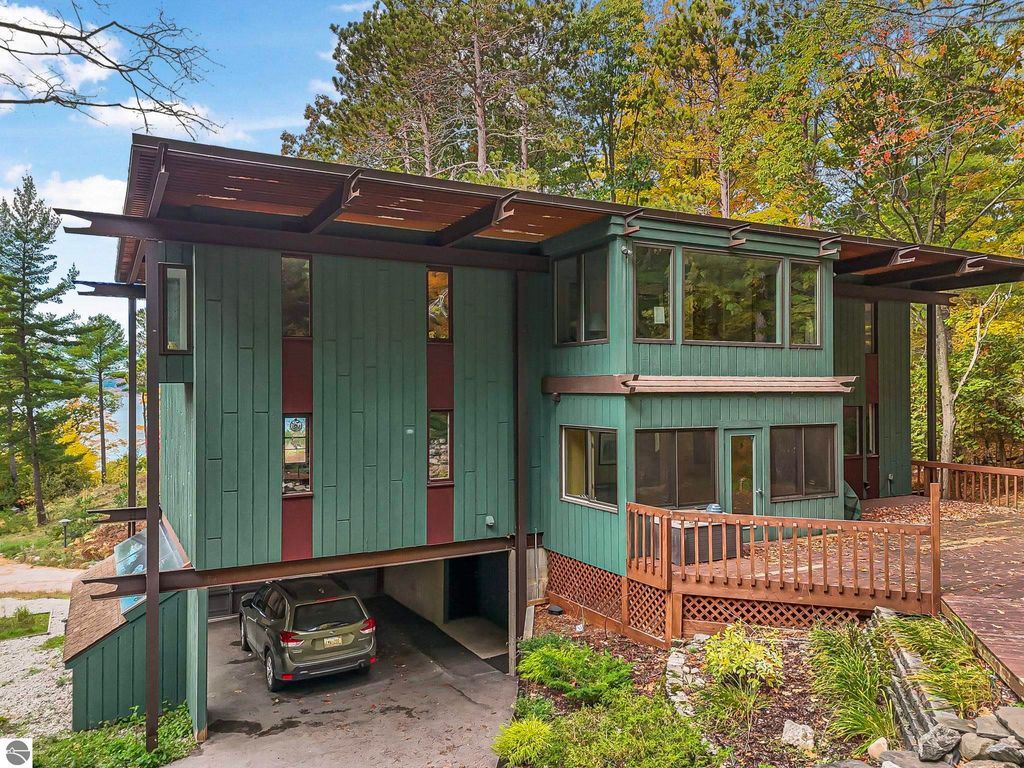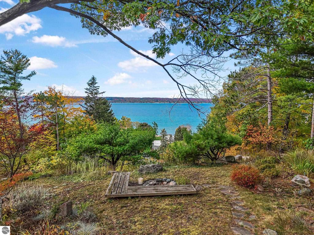 Set near the coveted base of Old Mission Peninsula, this exceptional property offers a rare combination of scale, privacy, and proximity"”features seldom found in a single offering. The beautiful and unique architecture of this home is like no other on Old Mission. With just over six acres, the estate presents an extraordinary opportunity in one of Traverse City's most sought-after locations, where acreage of this magnitude is virtually unheard of. The 3,500-square-foot residence is thoughtfully positioned to capture sweeping sunset views over West Bay, with a front-row seat to summer airshows, holiday fireworks, and the ever-changing rhythm of boat traffic along the shoreline. The home offers several separate family areas for entertaining, celebrating family or simply downtime in the cozy and warm interior. Expansive windows and well-proportioned living spaces bring the outdoors in, creating a seamless connection to the surrounding landscape. With three bedrooms and three baths, the home is both substantial and comfortable, offering flexibility for year-round living or a refined seasonal retreat. Just minutes from downtown Traverse City, yet removed enough to feel private and serene, this is a truly rare holding on Old Mission Peninsula"”where location, land, and view converge in a way that is increasingly difficult to find. A lower level workshop with tons of storage and a really nice sized garden shed are another bonus with this property. The Views are incredible and the wooded and rolling acreage offers so many opportunities you wont find with other homes.